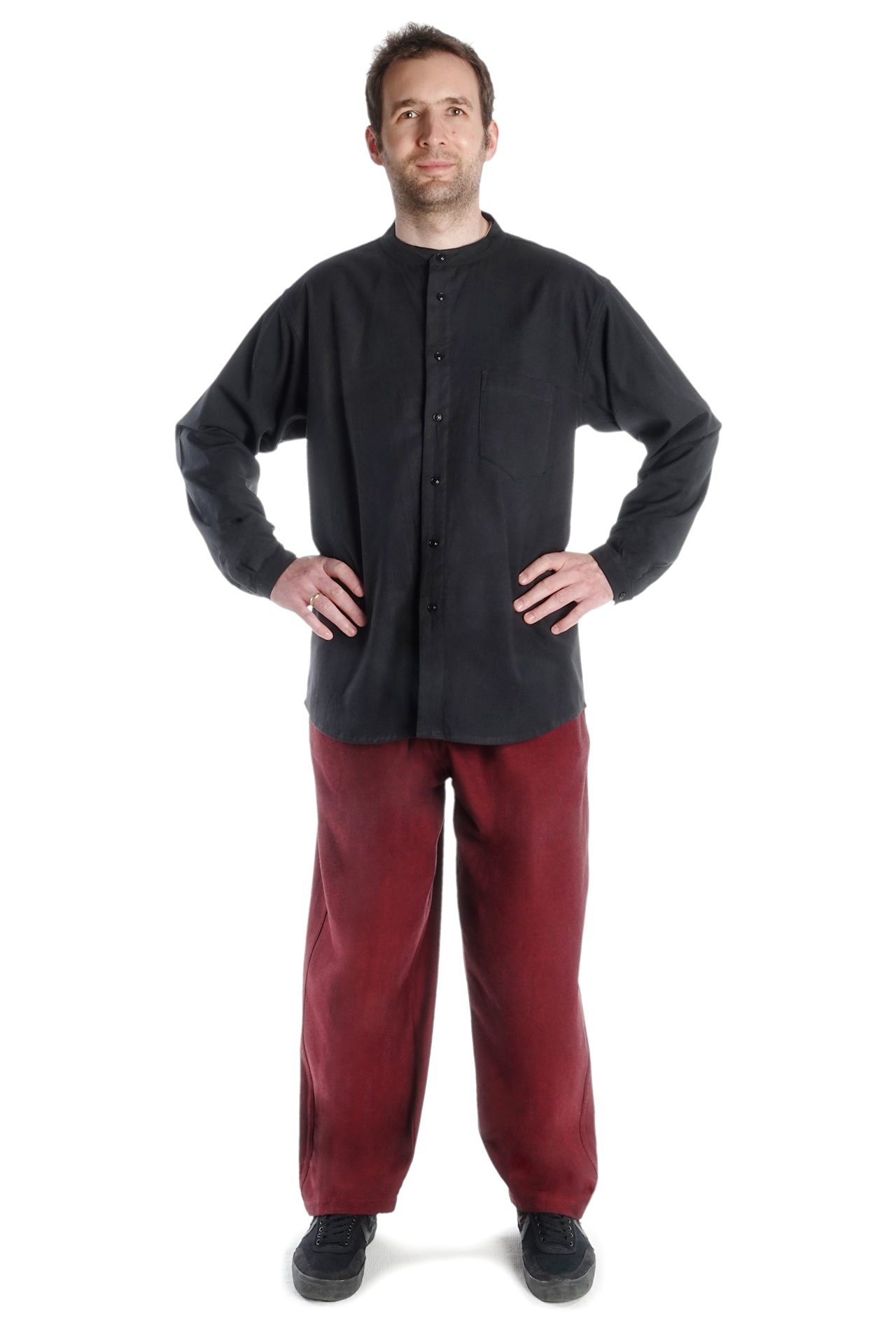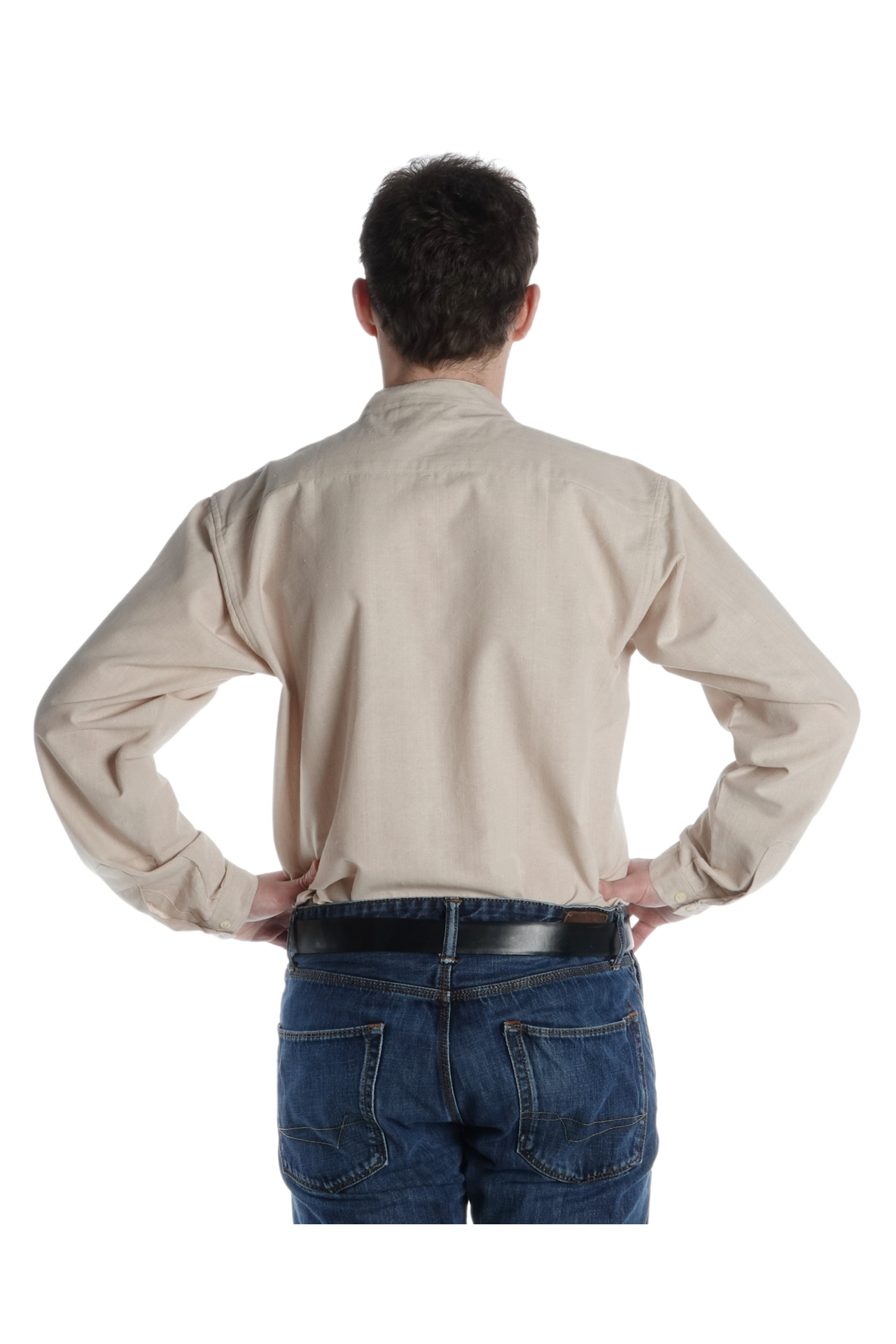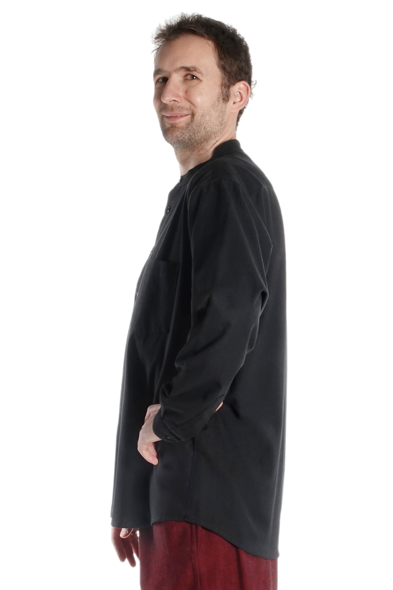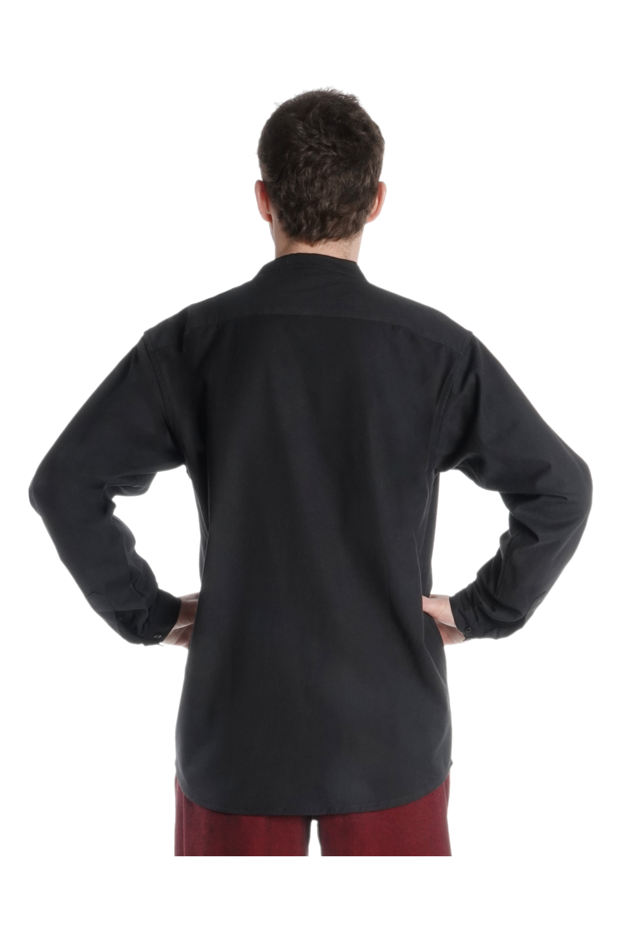 Das Hemd "Bran" verfügt über einen Stehkragen und eine durchgehende Knopfleiste. Ferner bietet das Hemd eine praktische Brusttasche auf der linken Vorderseite. Die Ärmel des Hemdes sind lang und gerade geschnitten und enden mit einer Manschette, die zwei Knöpfe enthält.