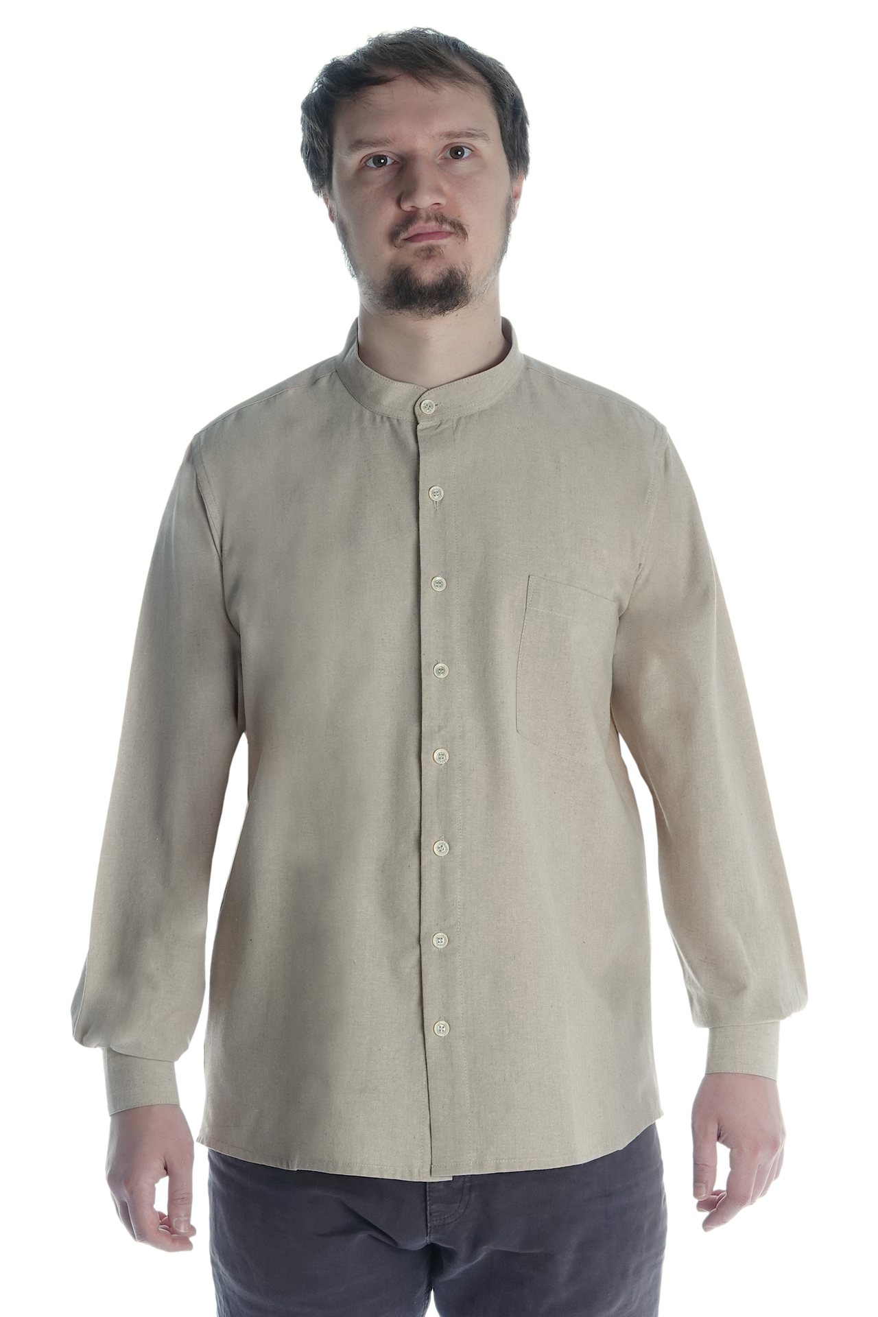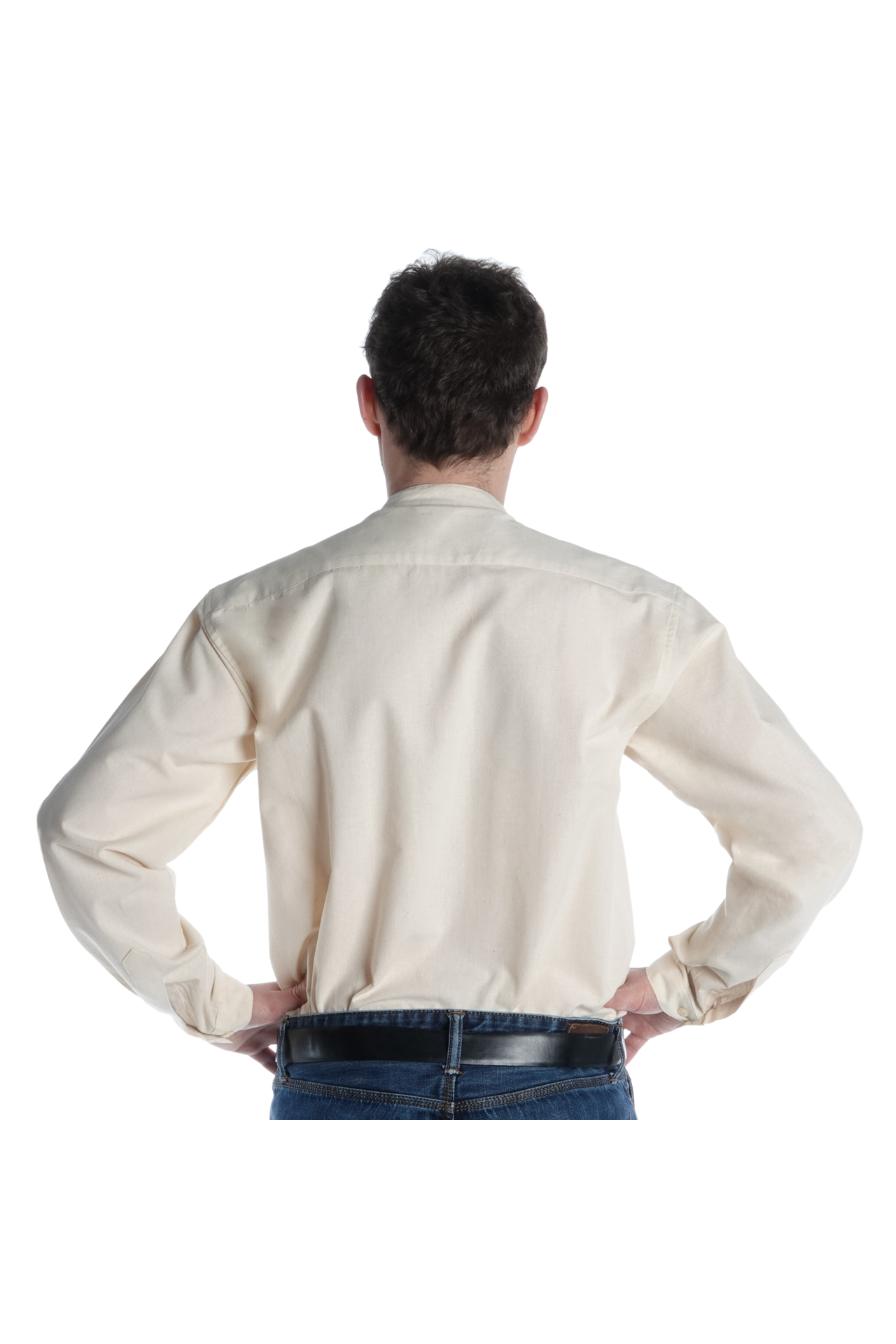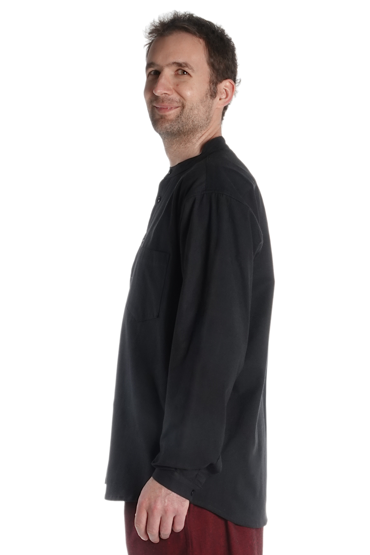 Das Hemd "Bran" verfügt über einen Stehkragen und eine durchgehende Knopfleiste. Ferner bietet das Hemd eine praktische Brusttasche auf der linken Vorderseite. Die Ärmel des Hemdes sind lang und gerade geschnitten und enden mit einer Manschette, die zwei Knöpfe enthält.