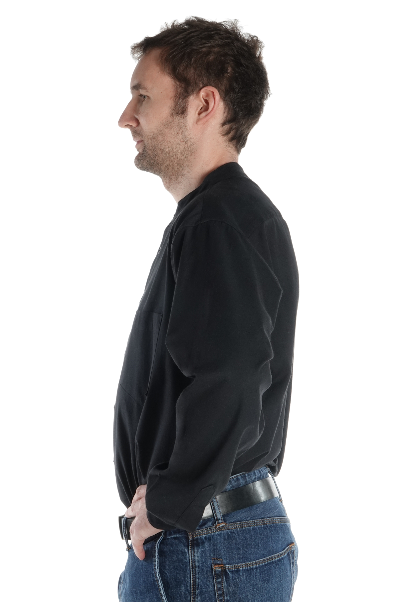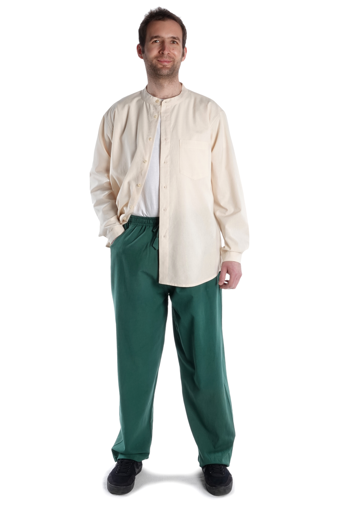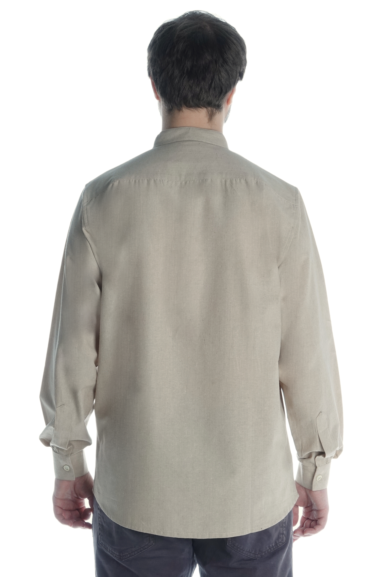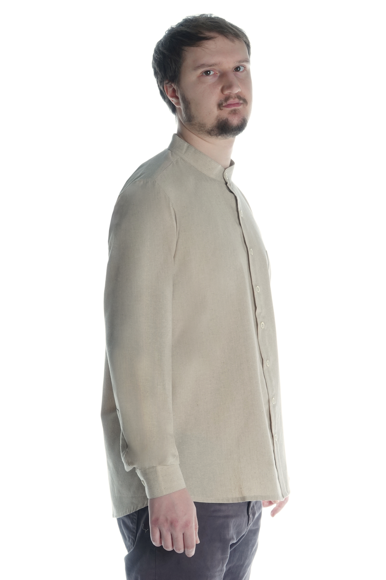 Das Hemd "Bran" verfügt über einen Stehkragen und eine durchgehende Knopfleiste. Ferner bietet das Hemd eine praktische Brusttasche auf der linken Vorderseite. Die Ärmel des Hemdes sind lang und gerade geschnitten und enden mit einer Manschette, die zwei Knöpfe enthält.