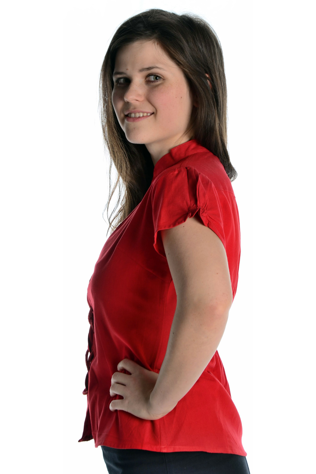 Unsere Mittelalterbluse „Gerlint“ ist tailliert geschnitten. Ferner verfügt sie über kurze Ärmel, eine Brustschnürung und Bliesen. Der Stehkragen geht in einen V-Ausschnitt über, der wiederum durch die frontale Schnürung bedingt ist. Entlang der Schnürung kann die Bluse vollständig geöffnet werden. Somit wird das An- und Ausziehen stark erleichtert. Um aber trotz der Brustschnürung Blickschutz zu bieten, ist unter dieser eine versteckte Stoffblende auf der gesamten Länge unterlegt. Des Weiteren finden sich auch auf der Rückseite und an den kurzen Ärmeln Bliesen, die nicht nur dekorativ sind, sondern auch eine optimale Passform garantieren.