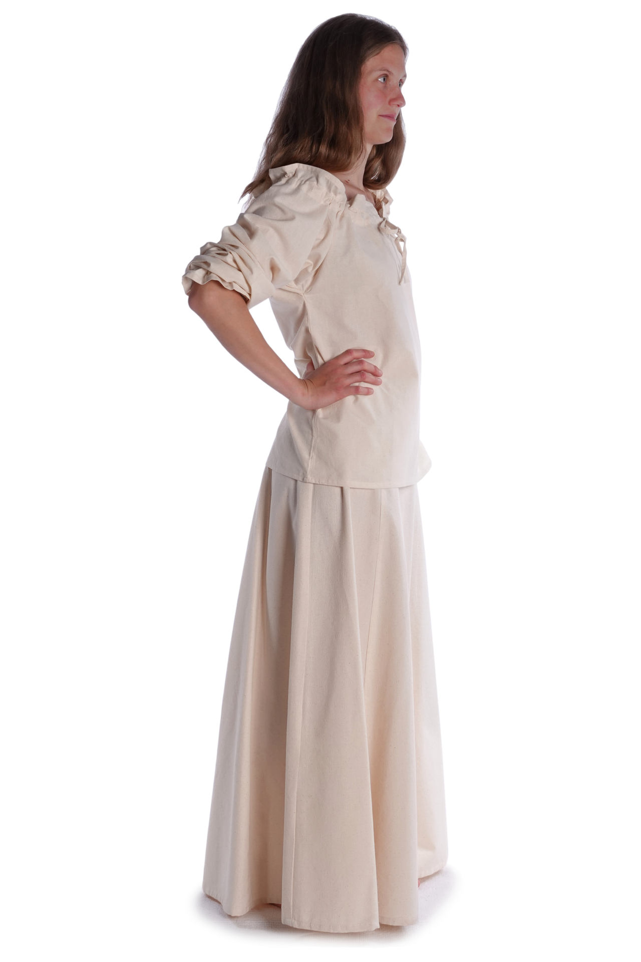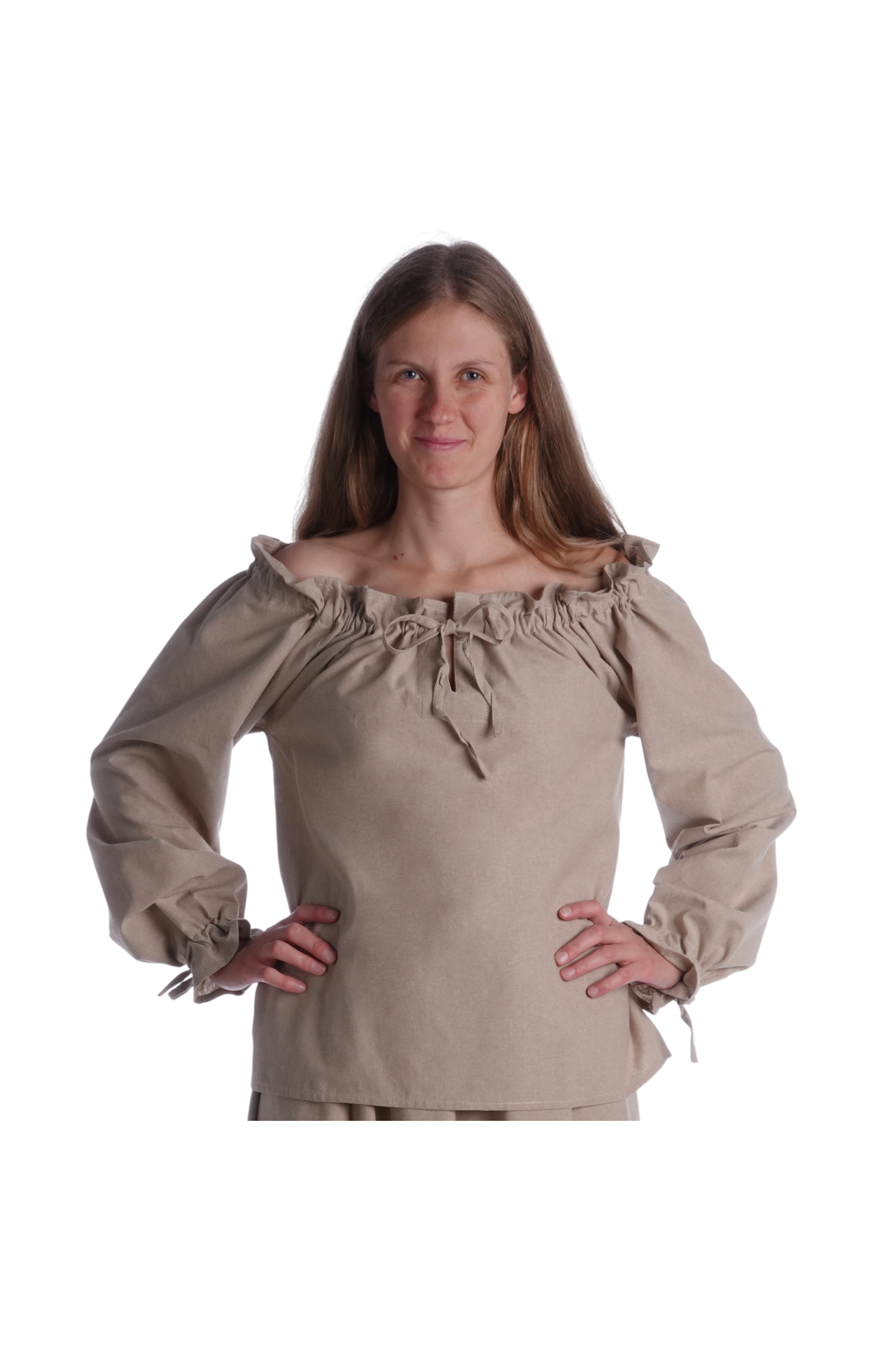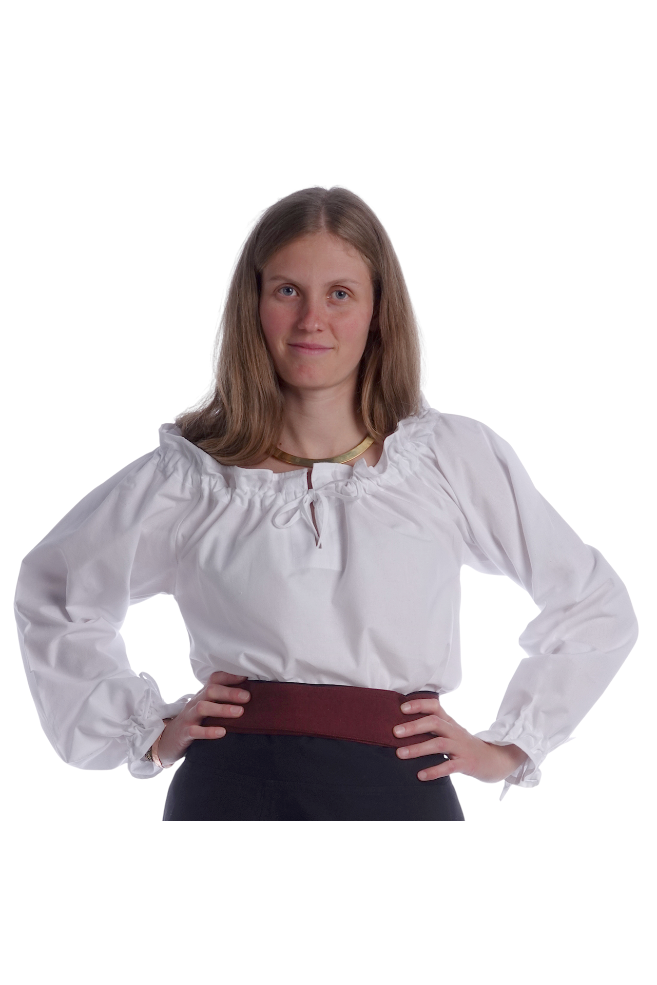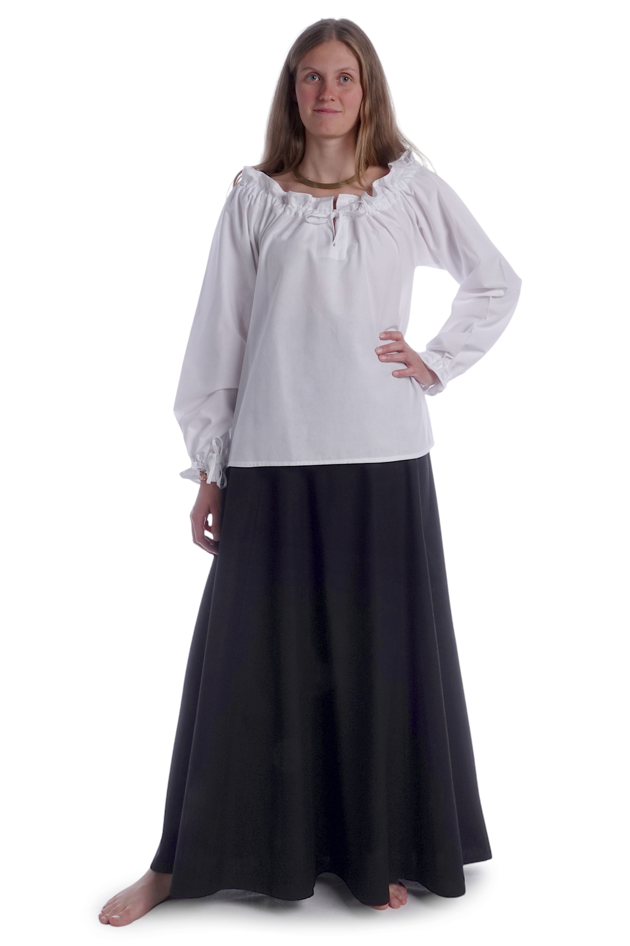 Mit der historisierenden Bluse „Gotelinde“ sind Sie auf mittelalterlichen Events aller Art bestens gekleidet, da sie vielseitig kombinierbar ist. Beispielsweise mit einen unsere Röcke oder Hosen bildet sie eine Gewandung, mit der Sie auf Mittelaltermärkten, bei LARP, Rollenspiel, Reenactment oder auch zu Karneval angemessen und bequem zugleich unterwegs sind.