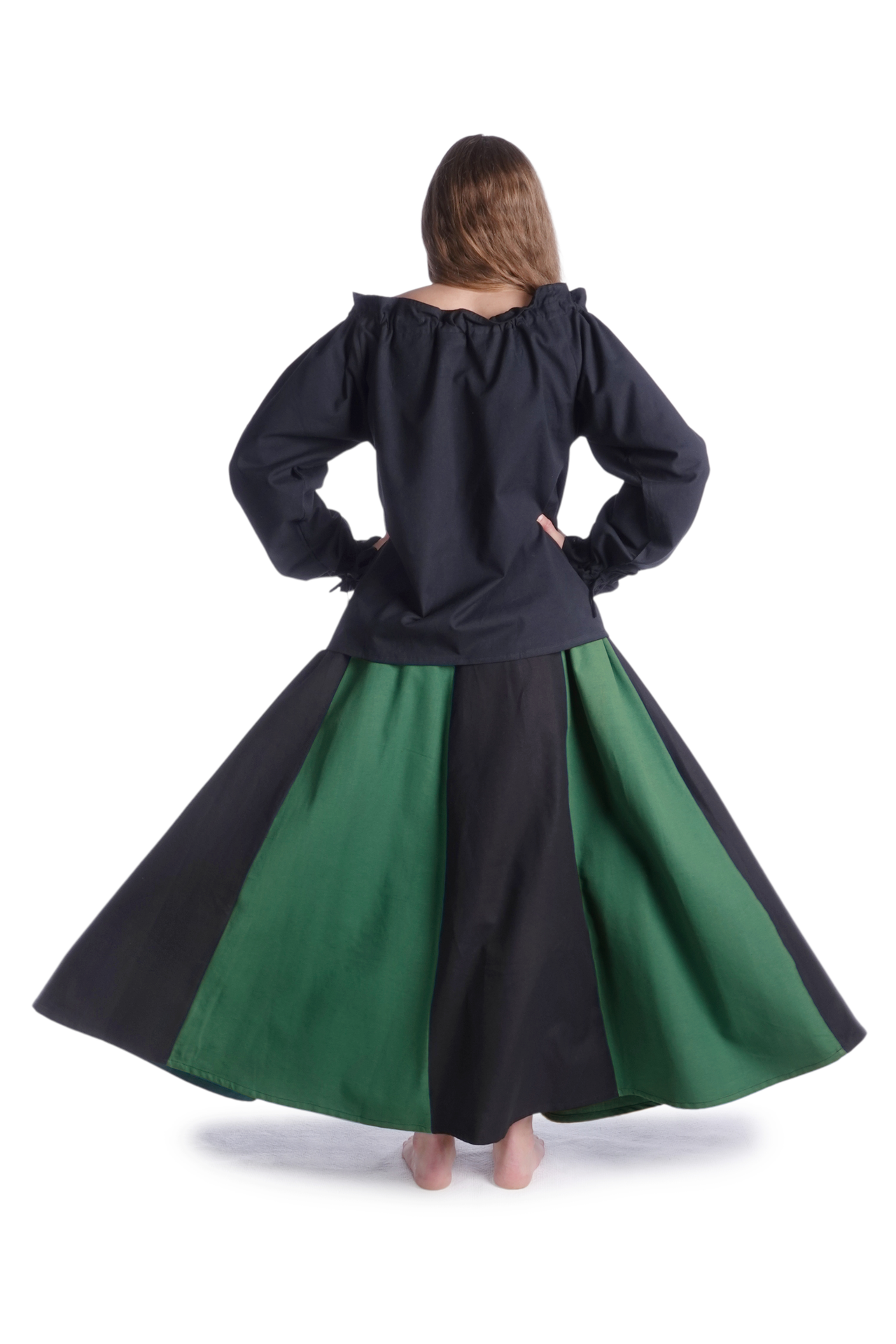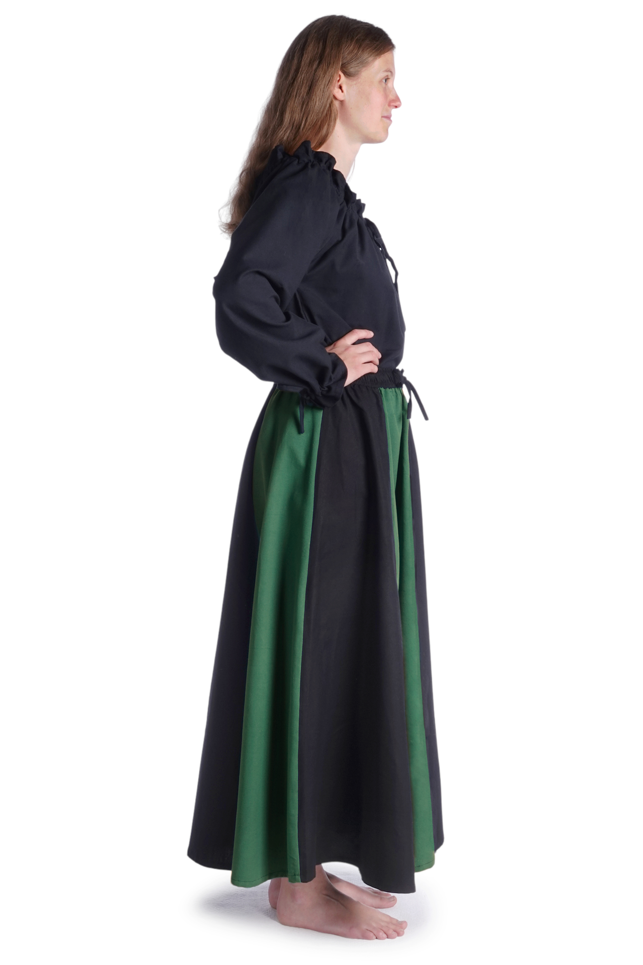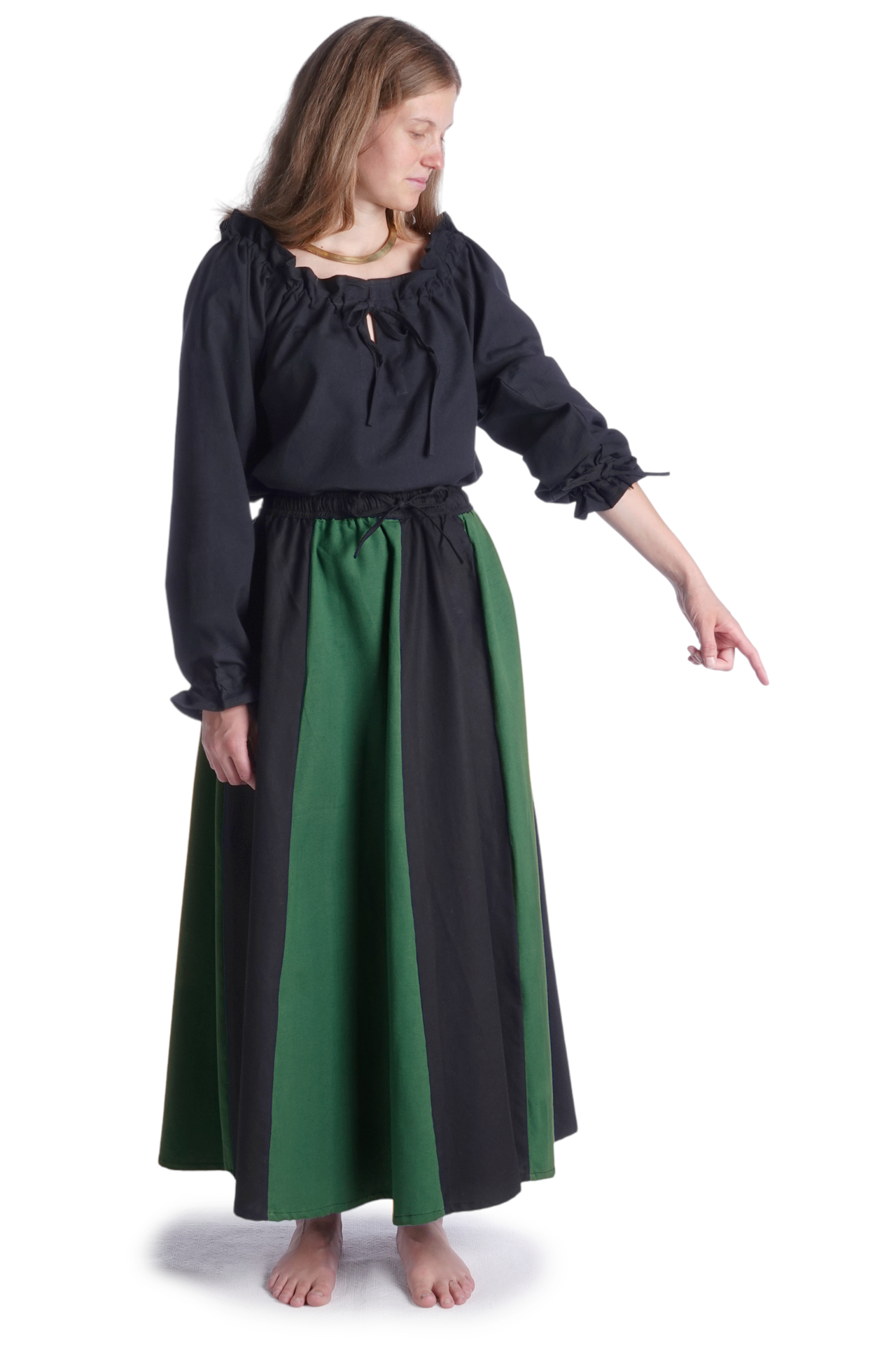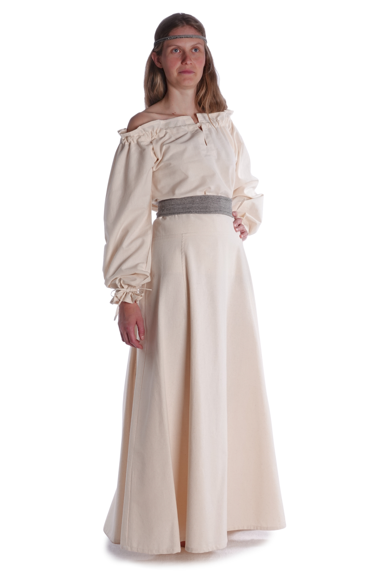 Mit der historisierenden Bluse „Gotelinde“ sind Sie auf mittelalterlichen Events aller Art bestens gekleidet, da sie vielseitig kombinierbar ist. Beispielsweise mit einen unsere Röcke oder Hosen bildet sie eine Gewandung, mit der Sie auf Mittelaltermärkten, bei LARP, Rollenspiel, Reenactment oder auch zu Karneval angemessen und bequem zugleich unterwegs sind.