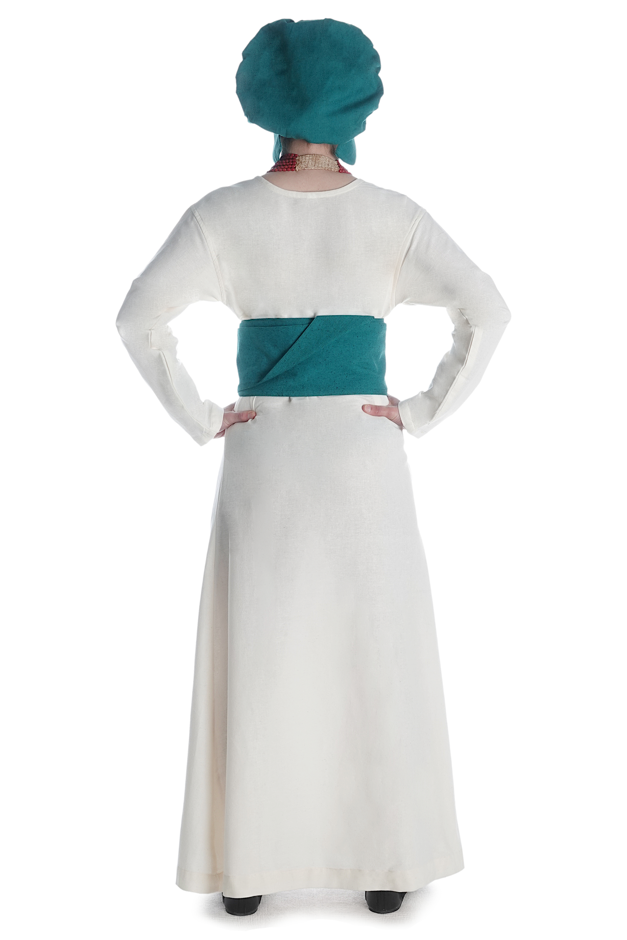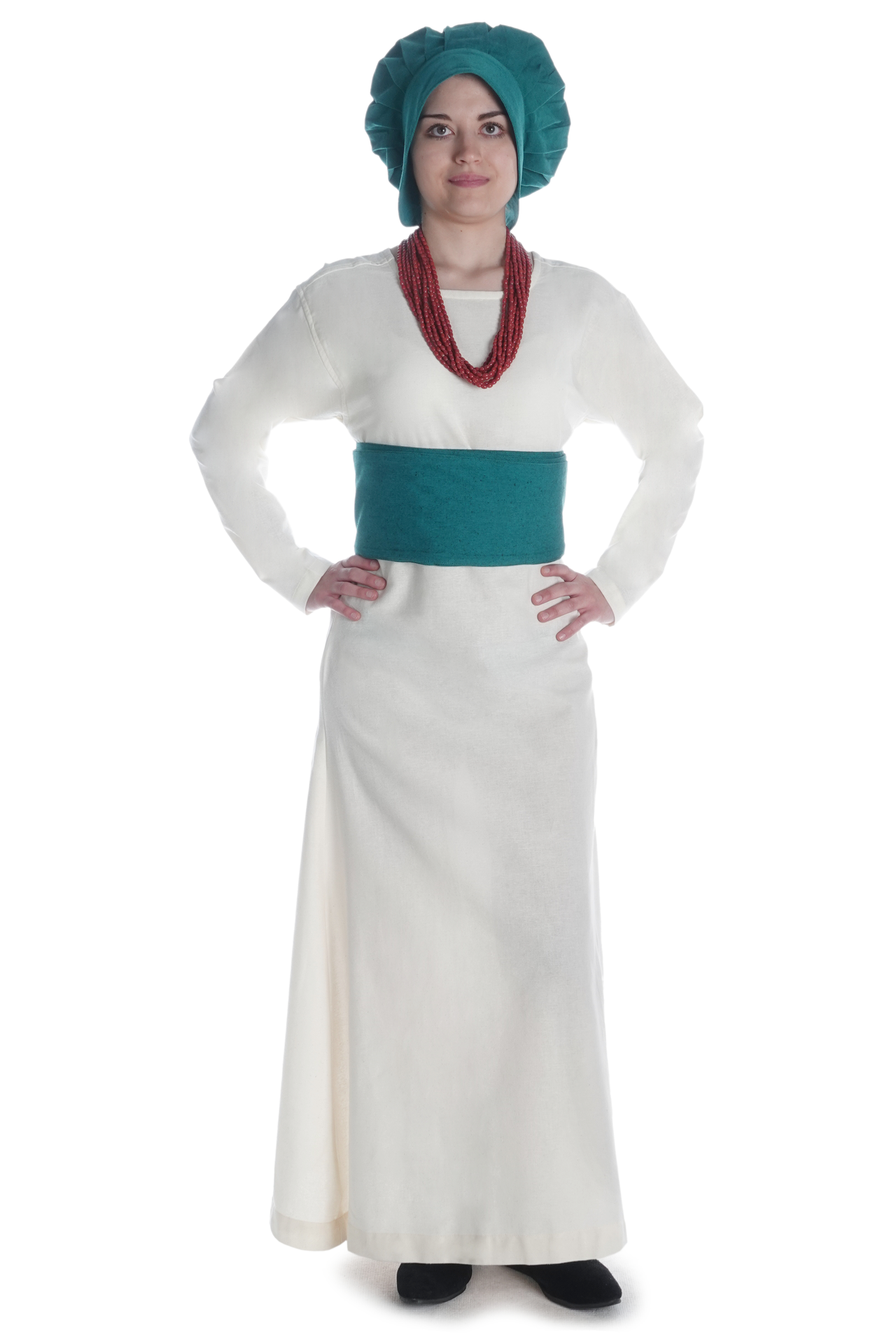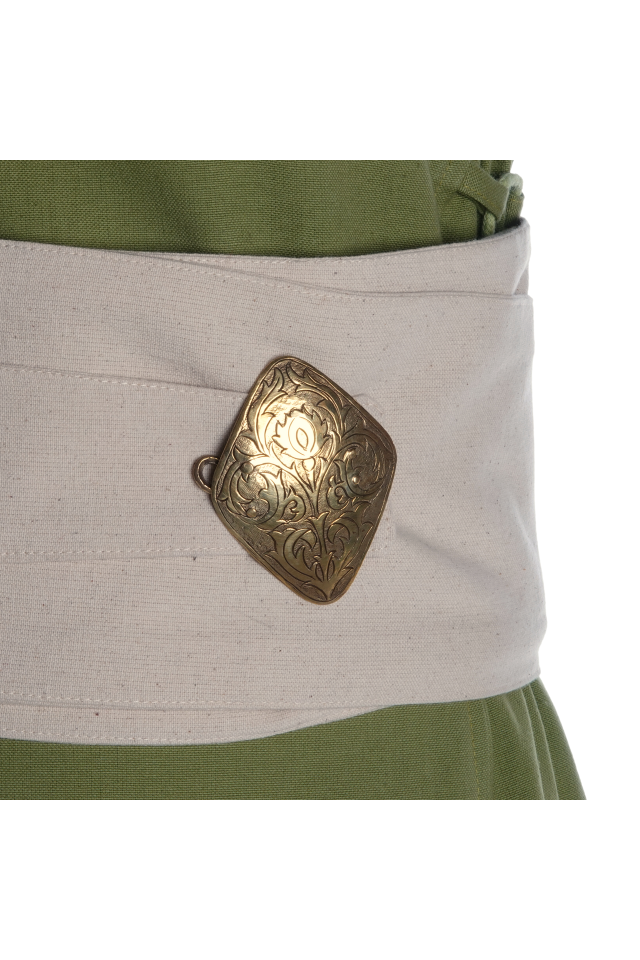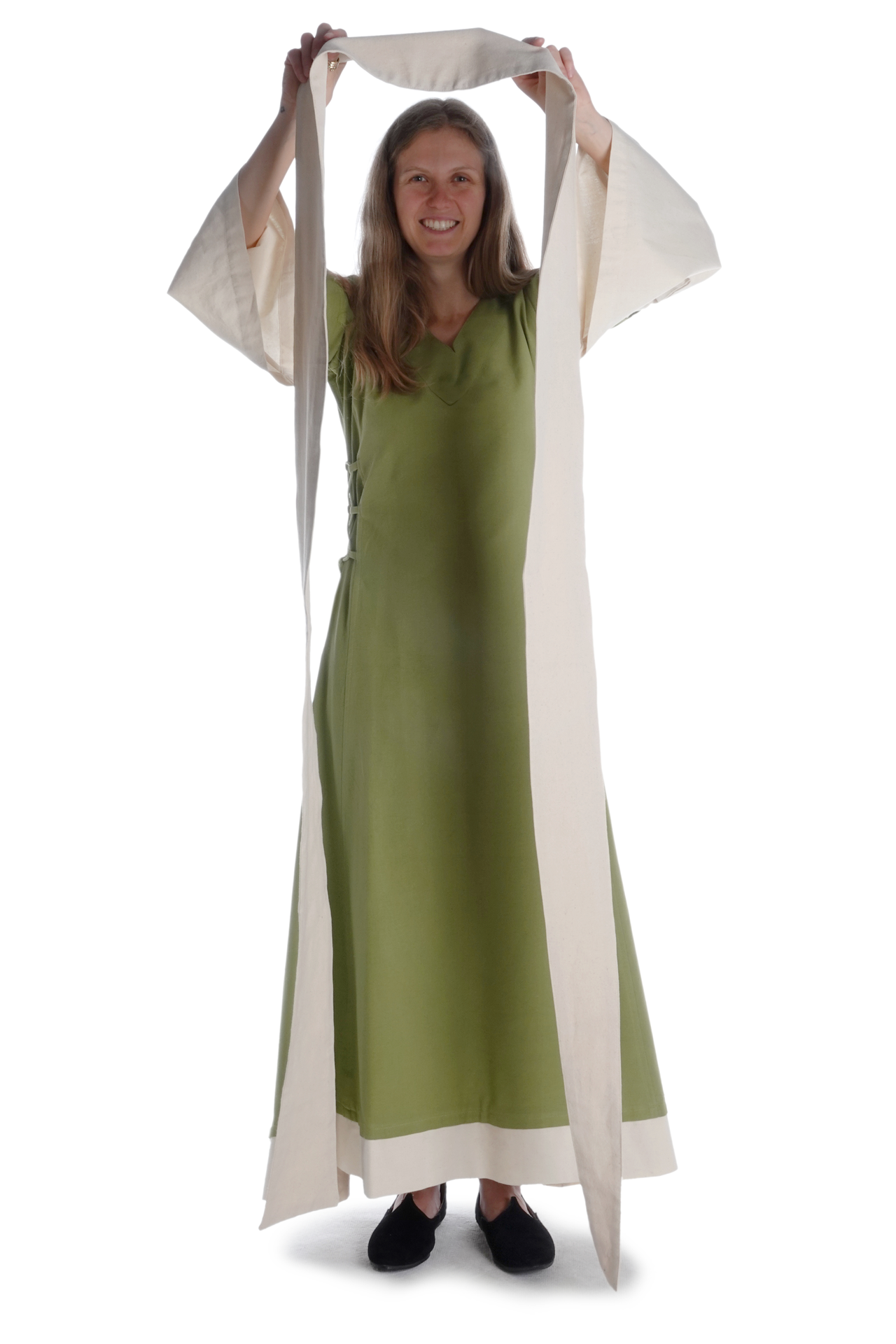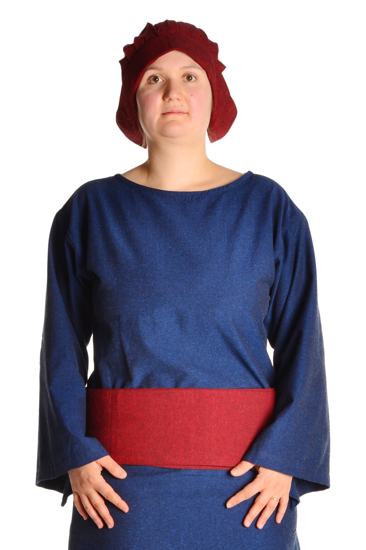 Dieser schöne Stoffgürtel ist bestens dafür geeignet, um mittelalterliche Damengewandungen aller Art zu veredeln. Mit unserem Gürtel "Karsnafite" sind Sie zu sämtlichen Mittelalter-Veranstaltungen, aber auch bei LARP-Events, Rollenspiel, Reenactment sowie an Karneval perfekt gekleidet. Aufgrund der farbenfrohen Ausführungen ist dieser Gürtel zu vielen Ensembles hervorragend kombinierbar. Auf der Abbildung sehen Sie unserm "Kleid Sigune" mit der dieser Gürtel kombiniert wurde. Um die Gewandung abzurunden trägt unser Model die "Haube Amurelle".