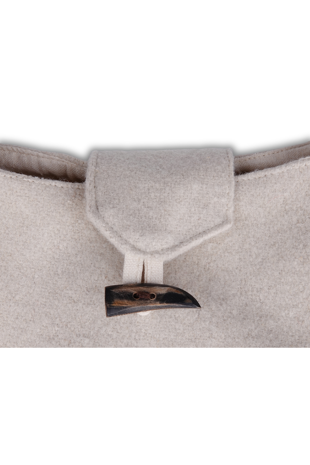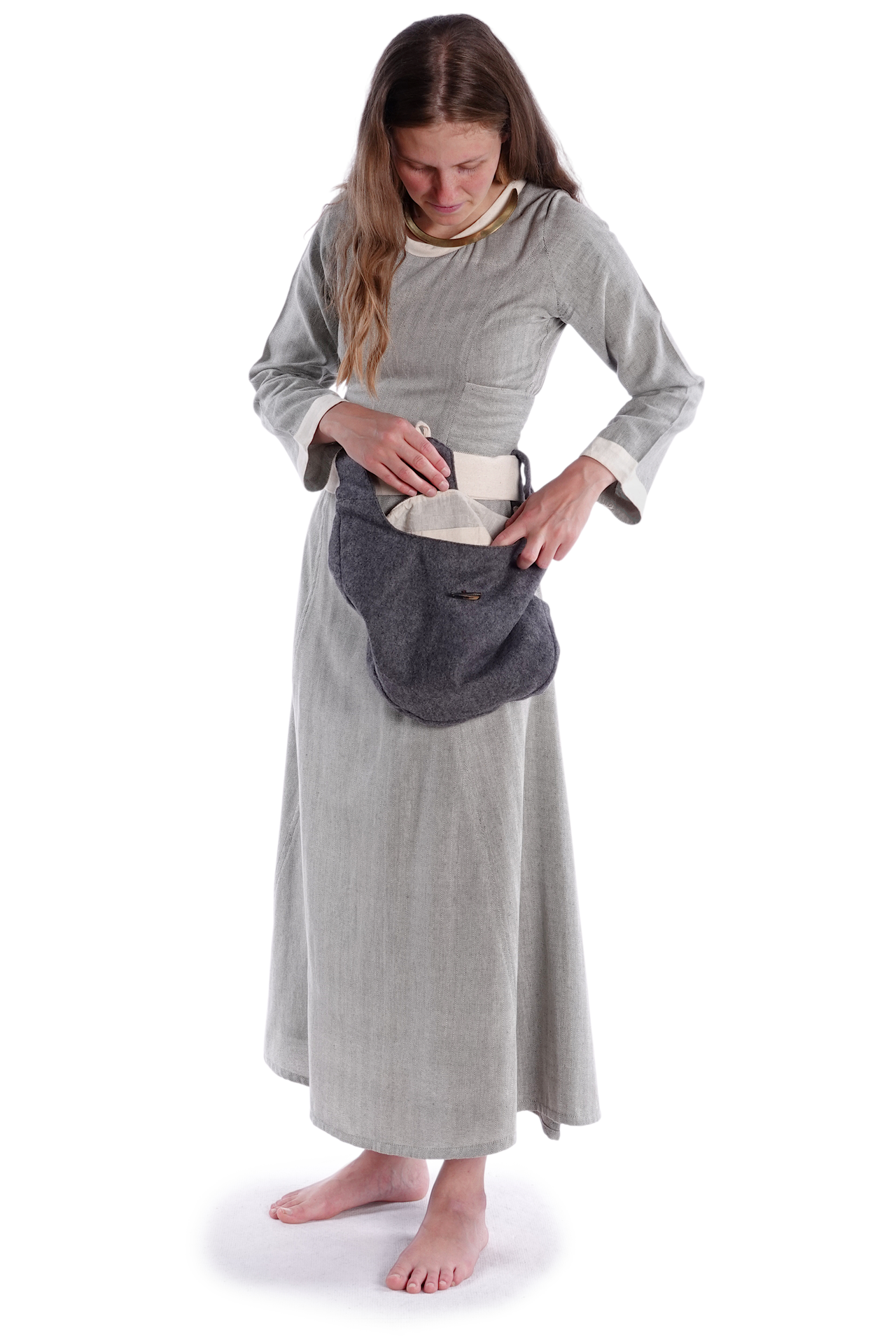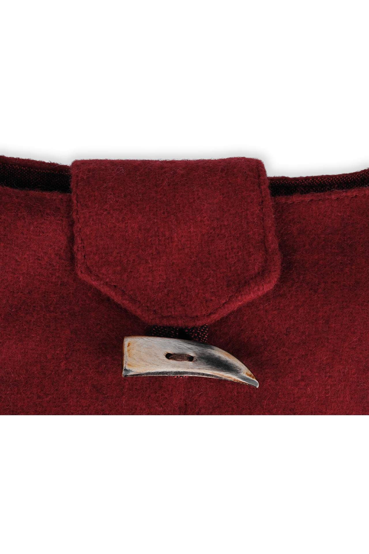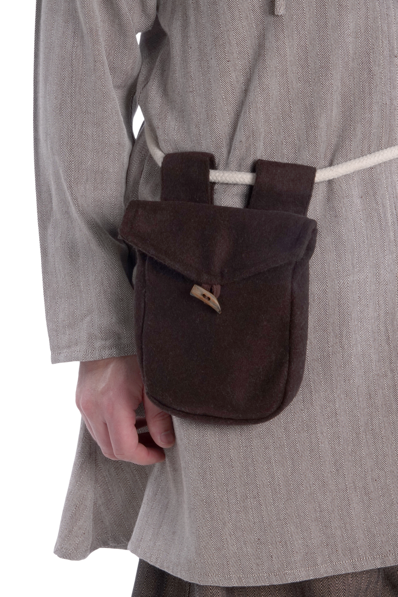 Diese mittelalterliche Gürteltasche für Damen und Herren wurde aus festem Schafwollfilz angefertigt. Dieser bietet nicht nur einen tadellosen Schutz gegen Kälte und Witterung, sondern die Verarbeitung von natürlichen Stoffmaterialien ist zudem auch kennzeichnend für frühere Epochen. Außerdem garantiert die robuste Stoffqualität die Langlebigkeit des mittelalterlichen Accessoires. Das Innenfutter ist aus 100% Baumwolle.