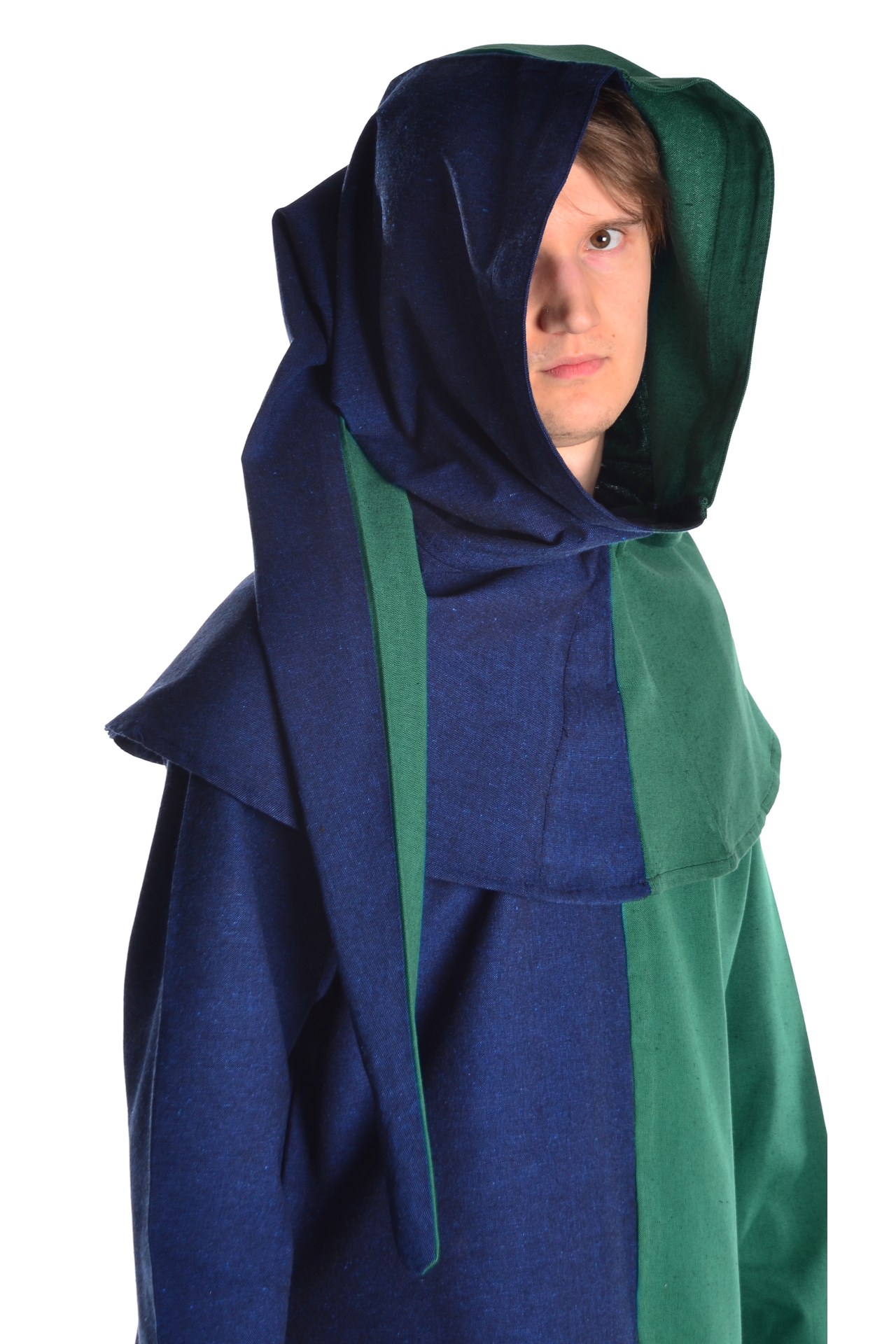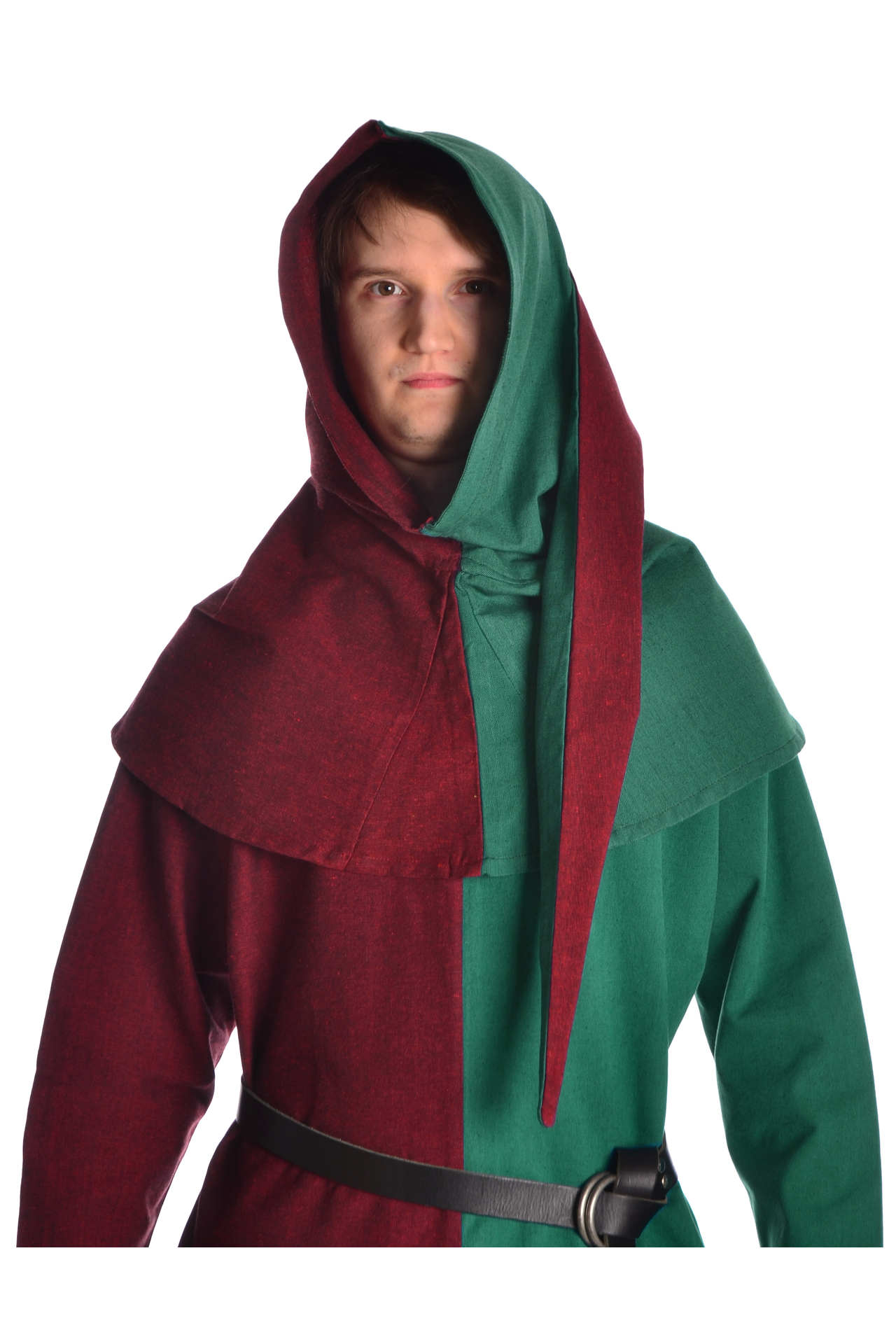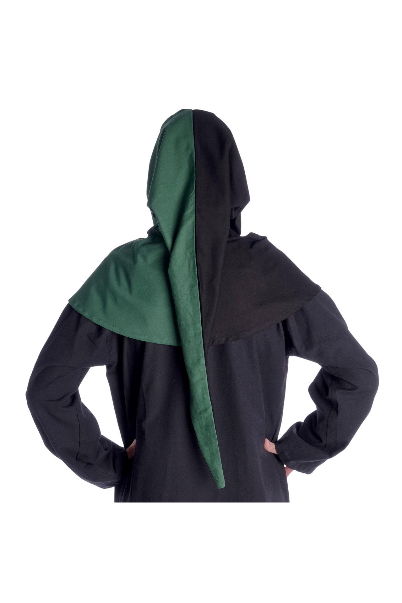 Da Kopfbedeckungen ein wichtiger Bestandteil der historischen Bekleidung beider Geschlechter im Mittelalter waren, komplettieren Sie mit dieser authentischen zweifarbigen Gugel jede mittelalterliche Gewandung. „Etzel“ eignet sich aber nicht nur bestens für Mittelalter-Märkte, Ritterspiele oder ähnliche Events, sondern auch für LARP, Rollenspiel und Reenactment. Selbstverständlich sind Sie aber mit diesem komfortablen Kleidungsstück auch perfekt für Karneval gerüstet, denn mit „Etzel“ lässt sich jede historische Kostümierung veredeln.
