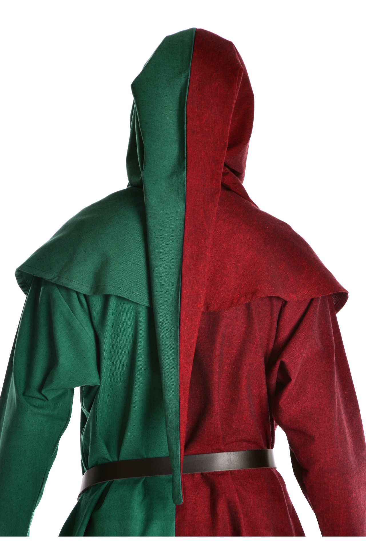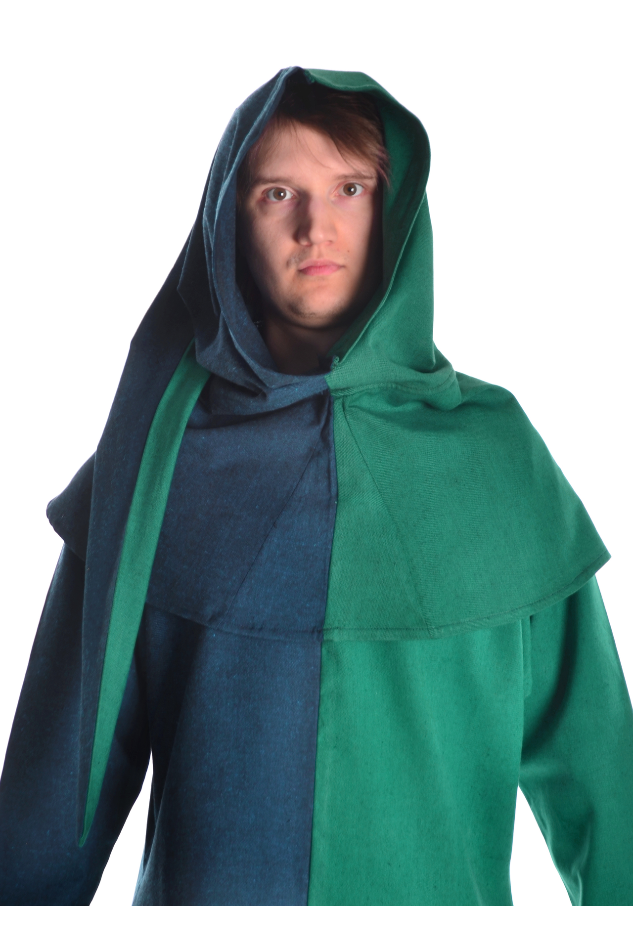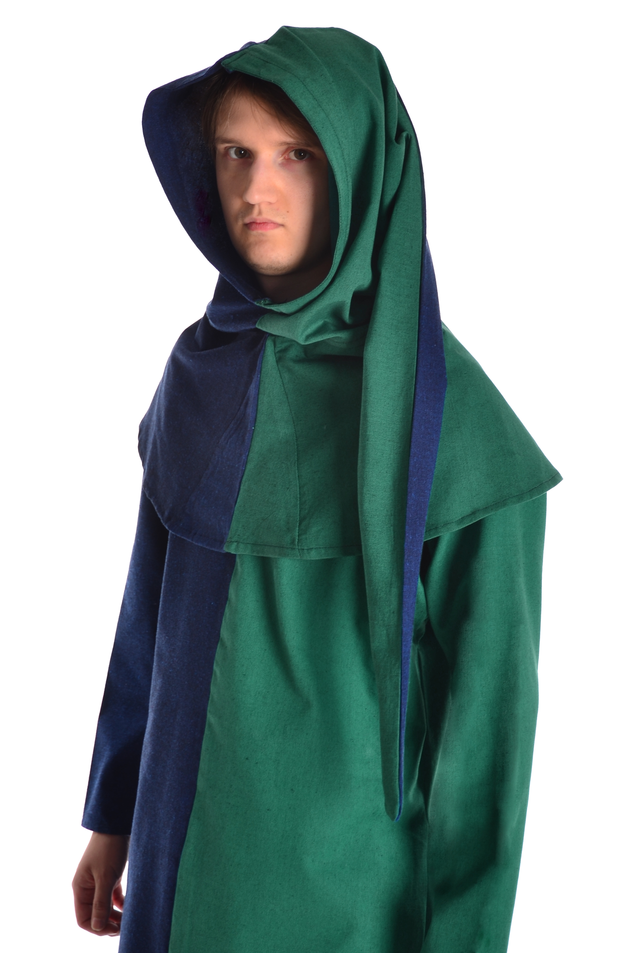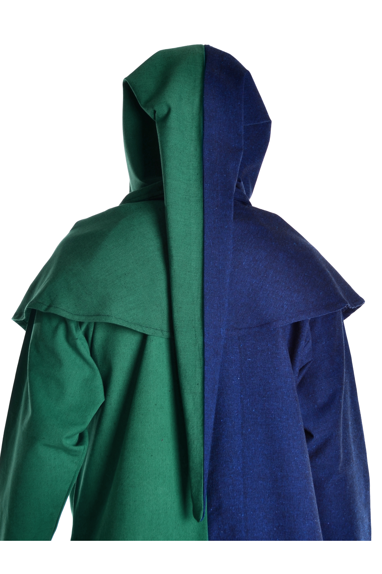 Da Kopfbedeckungen ein wichtiger Bestandteil der historischen Bekleidung beider Geschlechter im Mittelalter waren, komplettieren Sie mit dieser authentischen zweifarbigen Gugel jede mittelalterliche Gewandung. „Etzel“ eignet sich aber nicht nur bestens für Mittelalter-Märkte, Ritterspiele oder ähnliche Events, sondern auch für LARP, Rollenspiel und Reenactment. Selbstverständlich sind Sie aber mit diesem komfortablen Kleidungsstück auch perfekt für Karneval gerüstet, denn mit „Etzel“ lässt sich jede historische Kostümierung veredeln.