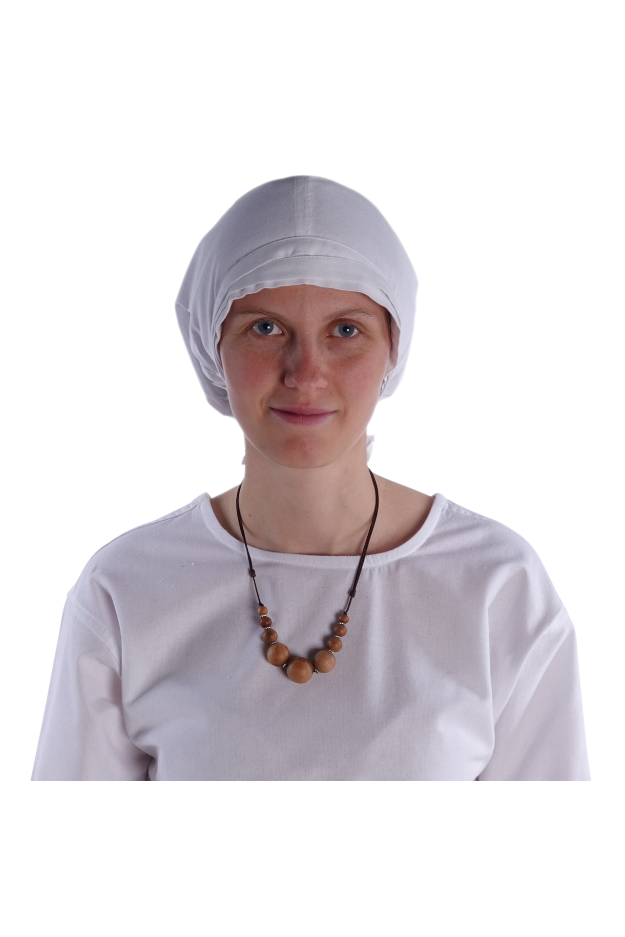 Diese mittelalterliche Damenhaube "Pampinea" besteht aus hochwertiger, feiner Baumwolle. Dieses Textil besticht nicht nur durch seine leichte und feine Stoffqualität, die einen hohen Tragekomfort bietet, sondern auch durch seine Originalgetreue. Die ausschließliche Verwendung von natürlichen Stoffmaterialien war typisch für die Epoche des Mittelalters.