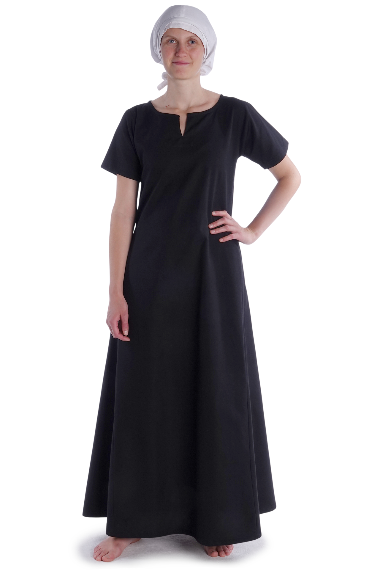 Da Kopfbedeckungen ein wichtiger Bestandteil der historischen Frauentracht des Mittelalters waren, komplettieren Sie mit dieser authentischen Haube jede mittelalterliche Damengewandung. „Pampinea“ eignet sich aber nicht nur bestens für Mittelalter-Märkte, Ritterspiele oder ähnliche Events, sondern auch für LARP, Rollenspiel und Reenactment. Selbstverständlich sind Sie aber mit diesem komfortablen Kleidungsstück auch perfekt für Karneval gerüstet, denn mit „Pampinea“ lässt sich jede historische Kostümierung veredeln. Dank ihres schlichten Designs und der eleganten weißen Optik ist sie sowohl praktisch als auch dekorativ und ein unverzichtbares Accessoire für alle Mittelalter-Enthusiasten.