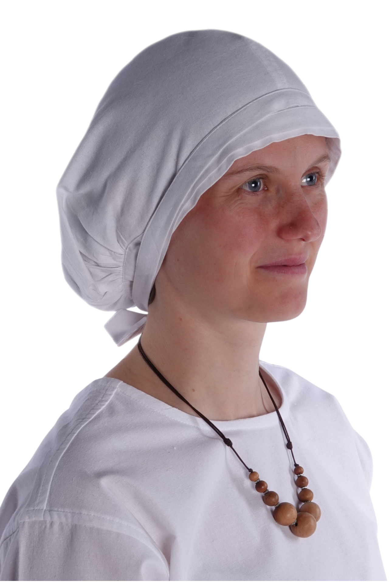 - Verwendung: Haube mit Bändern zum Verhüllen der Haare geeignet