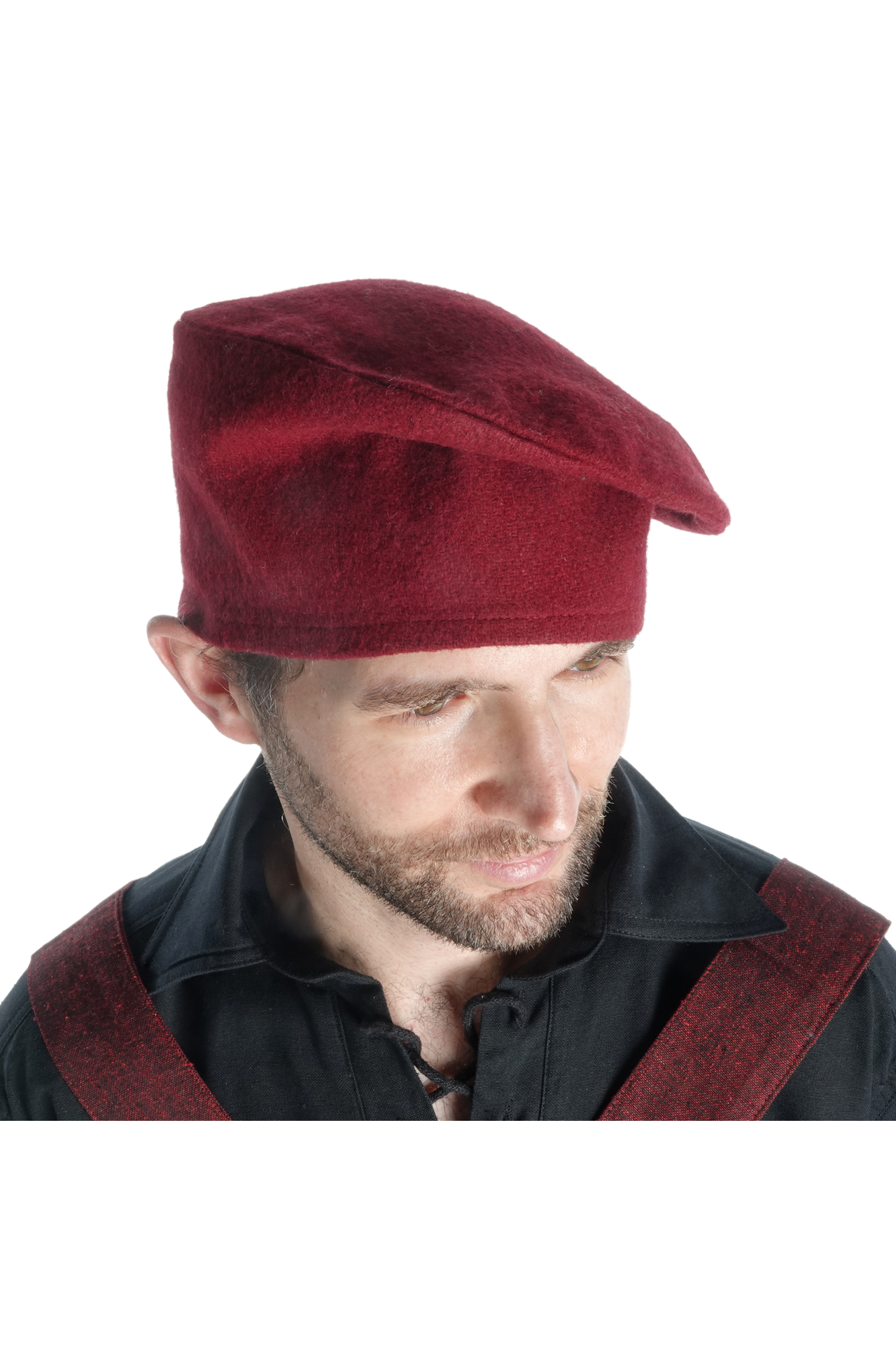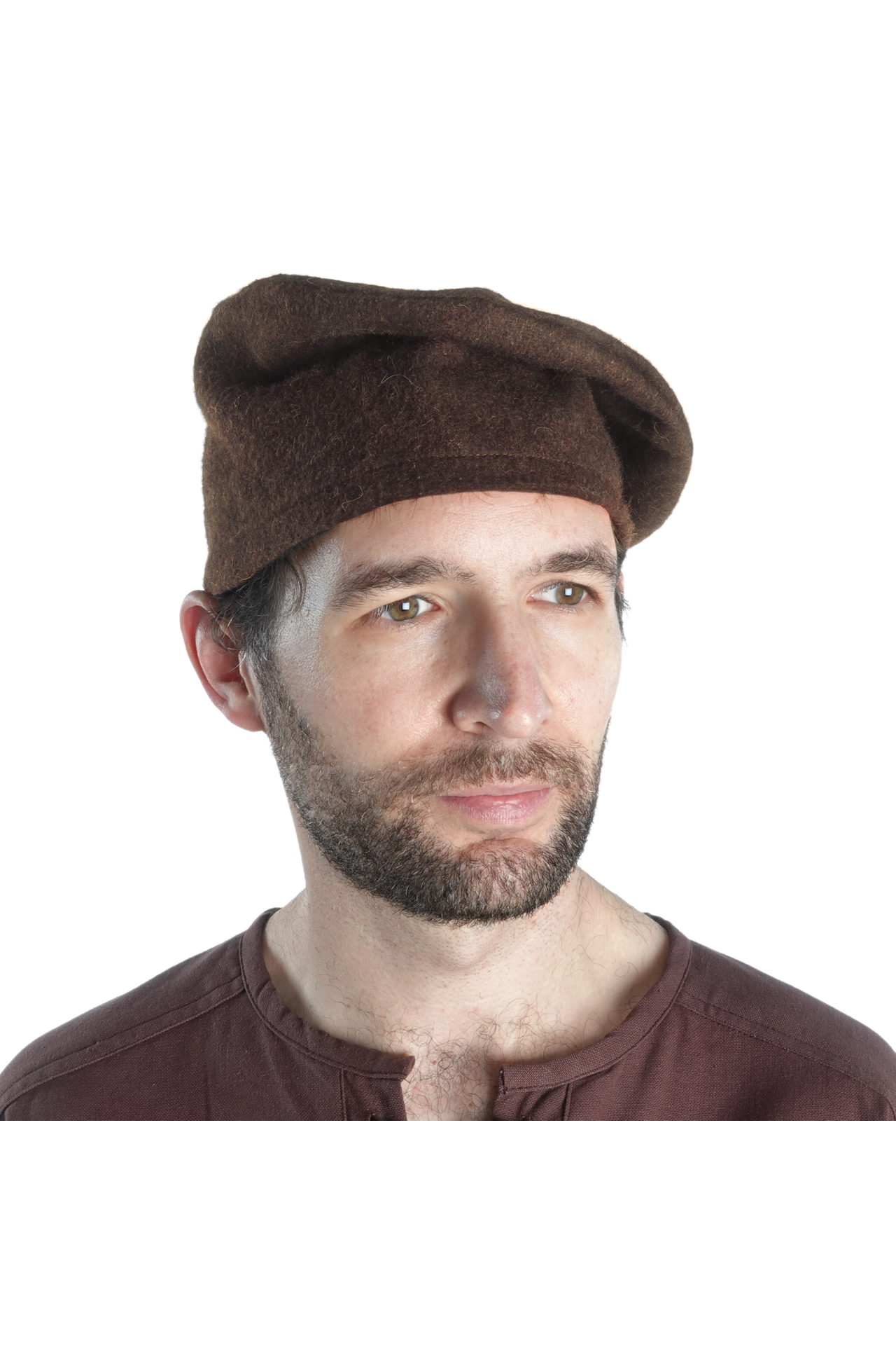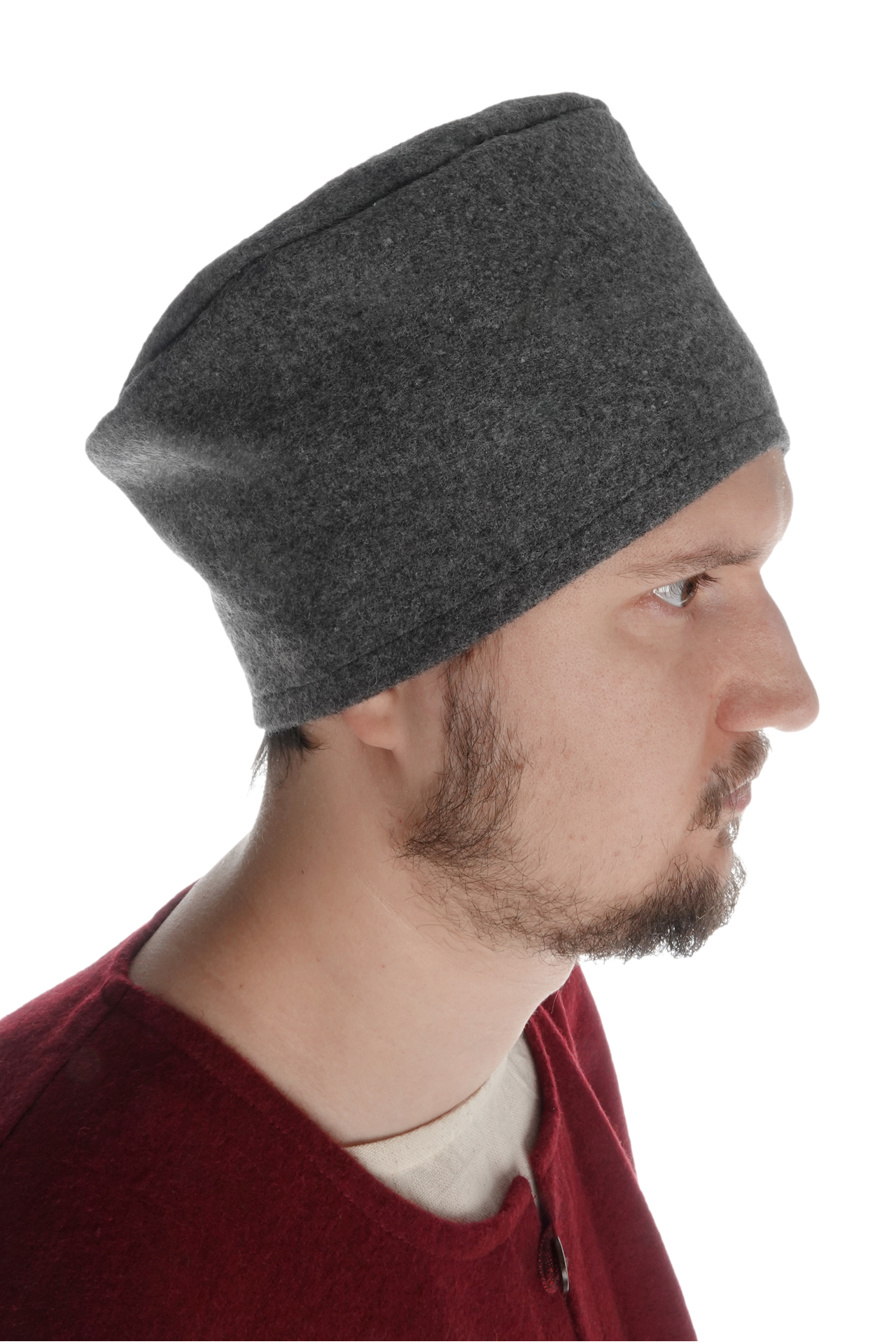 Diese historische Kappe wurde aus festem Schafwollfilz angefertigt. Dieser bietet nicht nur einen tadellosen Schutz gegen Kälte und Witterung, sondern die Verarbeitung von natürlichen Stoffmaterialien ist zudem auch kennzeichnend für frühere Epochen. Außerdem garantiert die robuste Stoffqualität die Langlebigkeit des Kleidungsstücks.