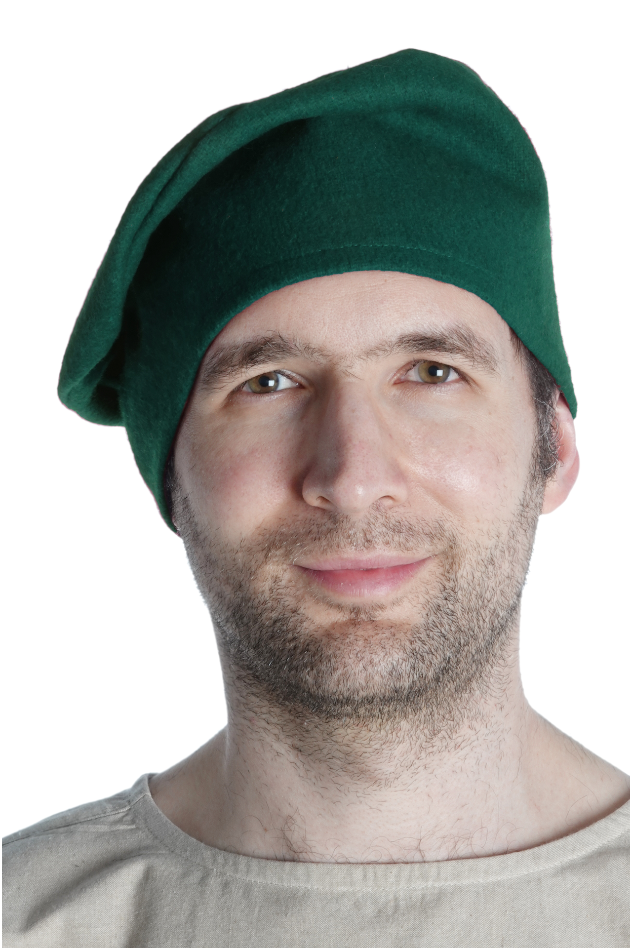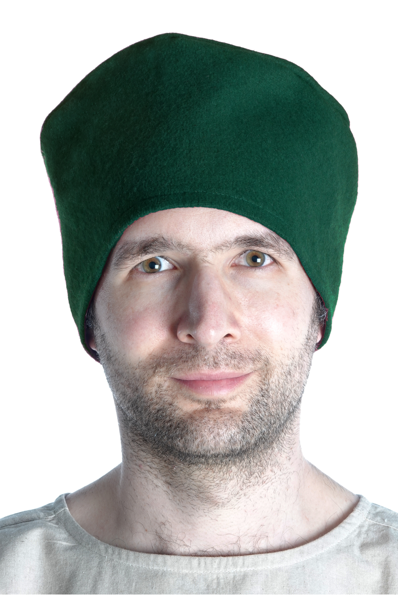 Die Kappe „Schrutan“ ist ein gebräuchliches Baretts und Teil der Mittelalter-Tracht. Bis heute gibt es ähnliche Kopfbedeckungen. Die Kappe bietet variable Tragevariationen durch die flexible Krempe.