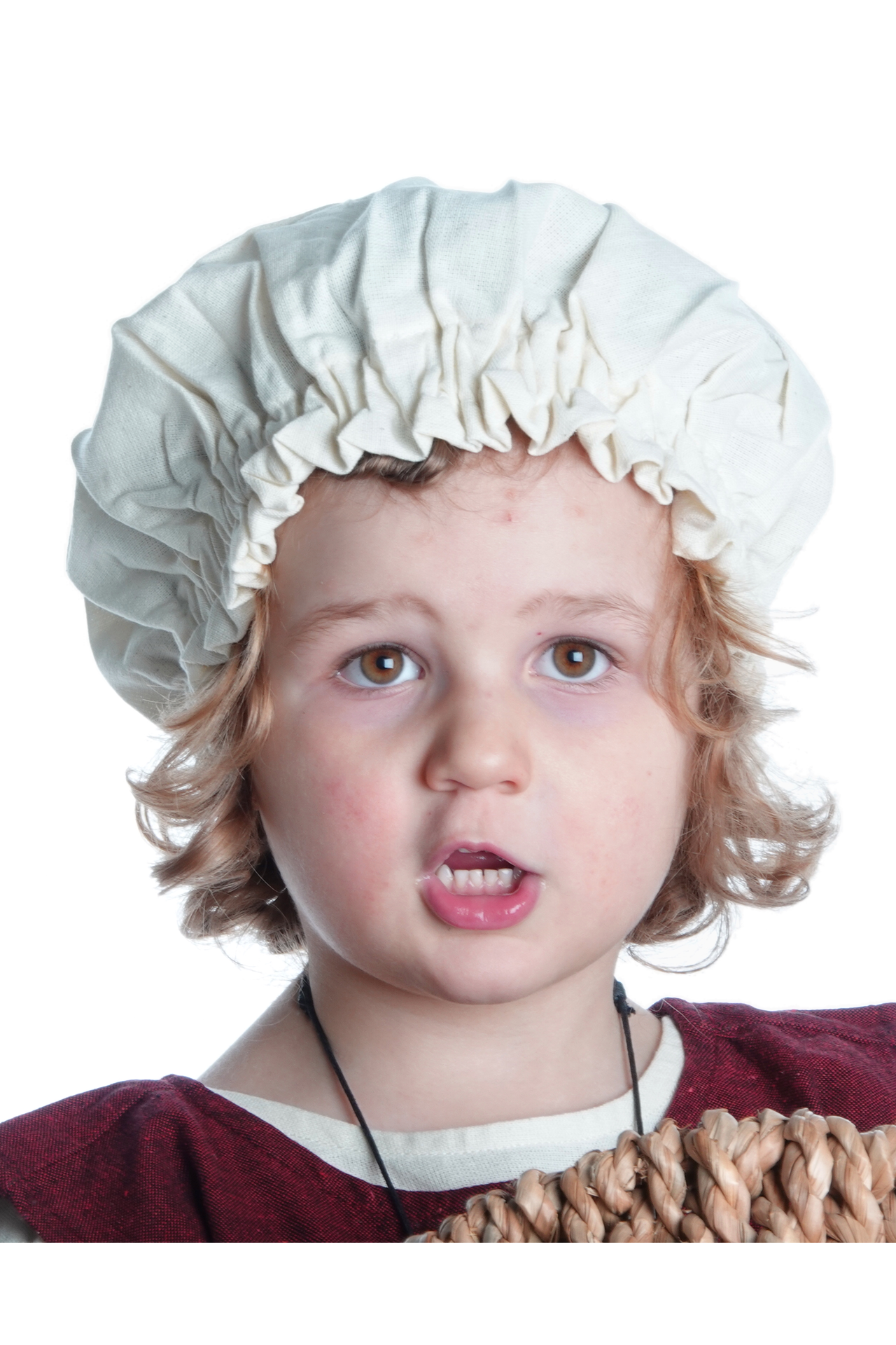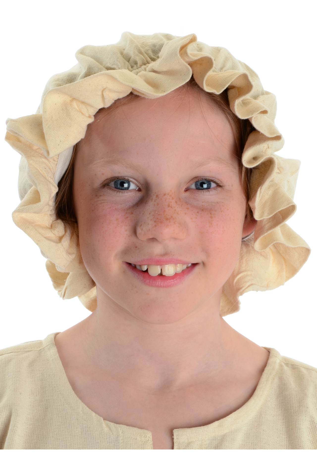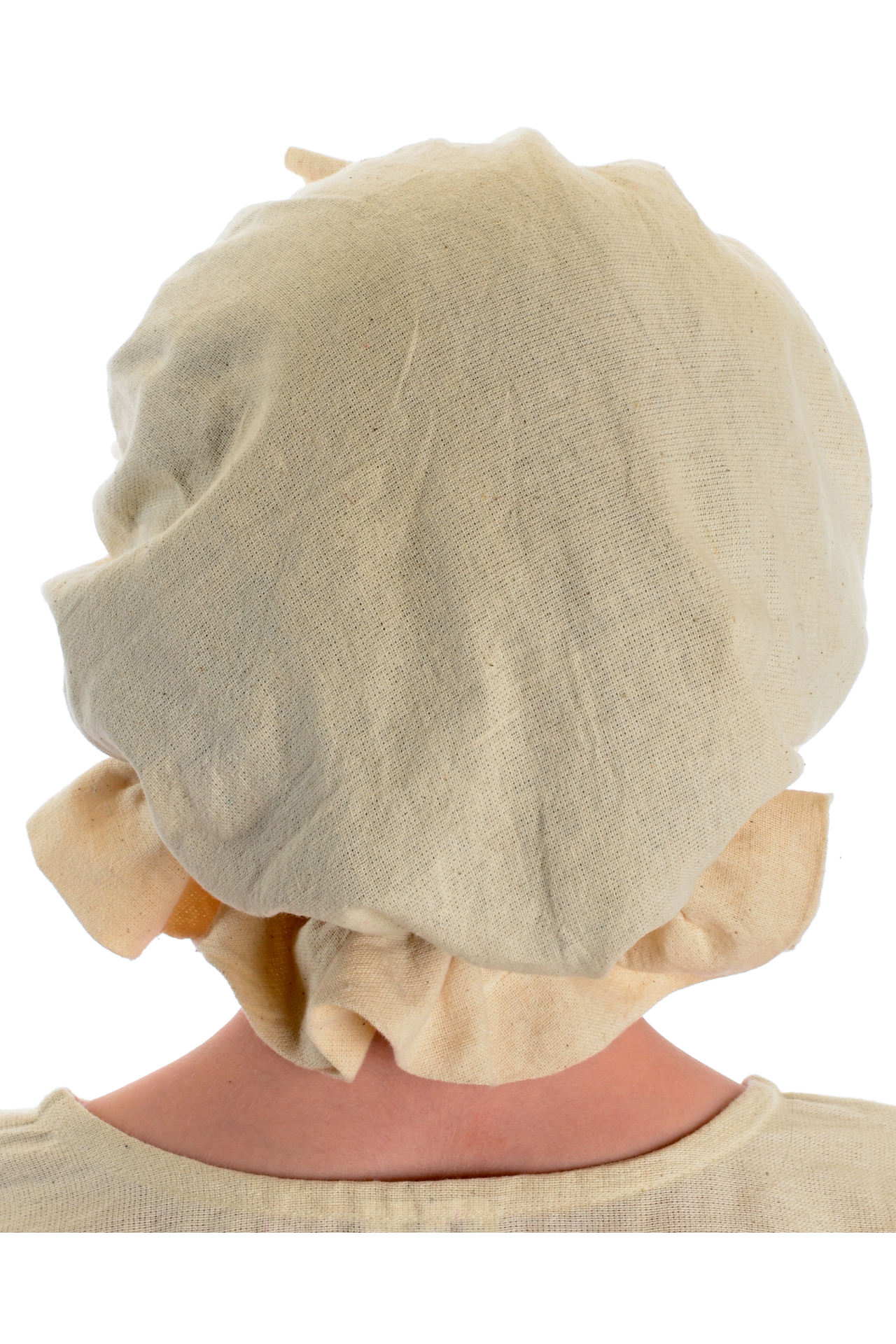 Diese mittelalterliche Mädchenhaube besteht aus naturbelassener Baumwolle. Dieses Gewebe besticht nicht nur mit einem ihrer leichten und feinen Stoffqualität geschuldeten hohen Tragekomfort, sondern auch durch ihre Originalgetreue. Denn die ausschließliche Verwendung von natürlichen Stoffmaterial war typisch für die Epoche des Mittelalters.