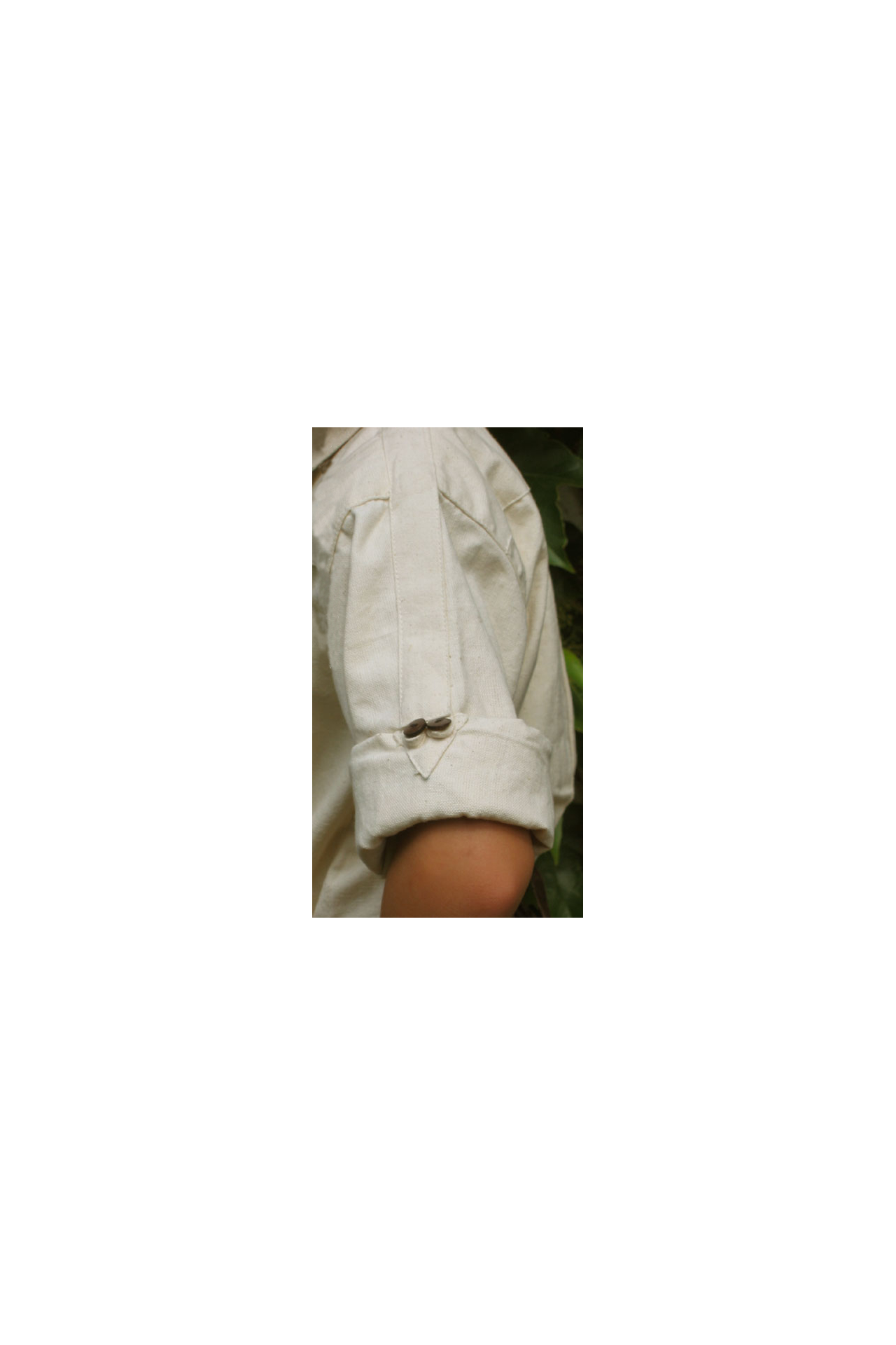 - lange Ärmel mit Knopf aus Kokosnussschale an der Manschette