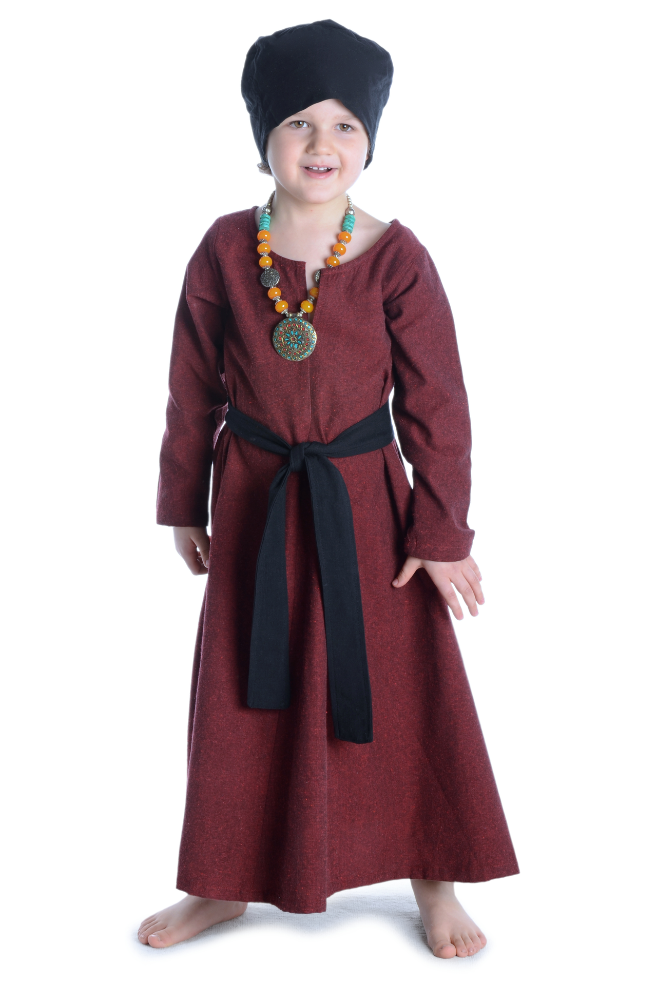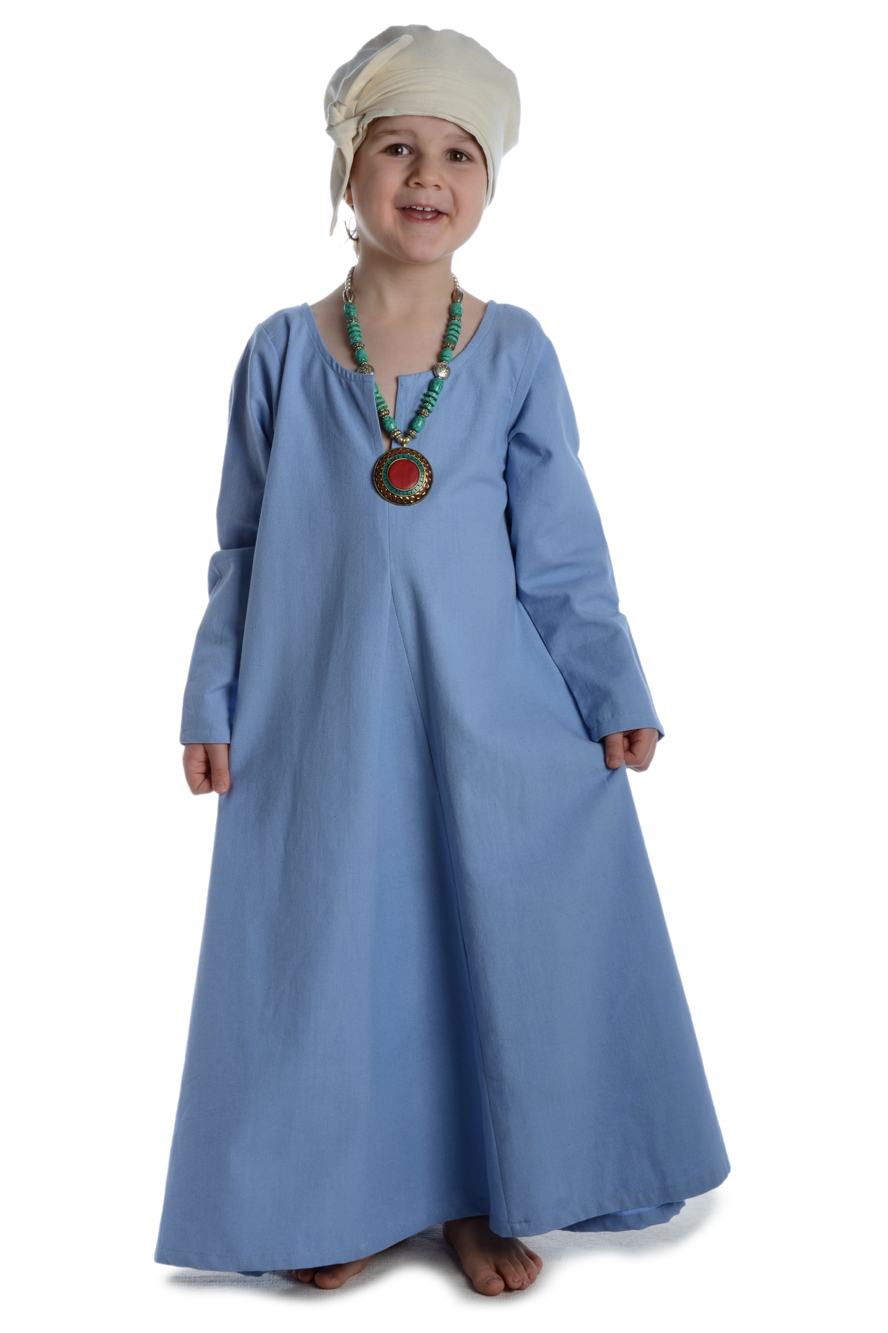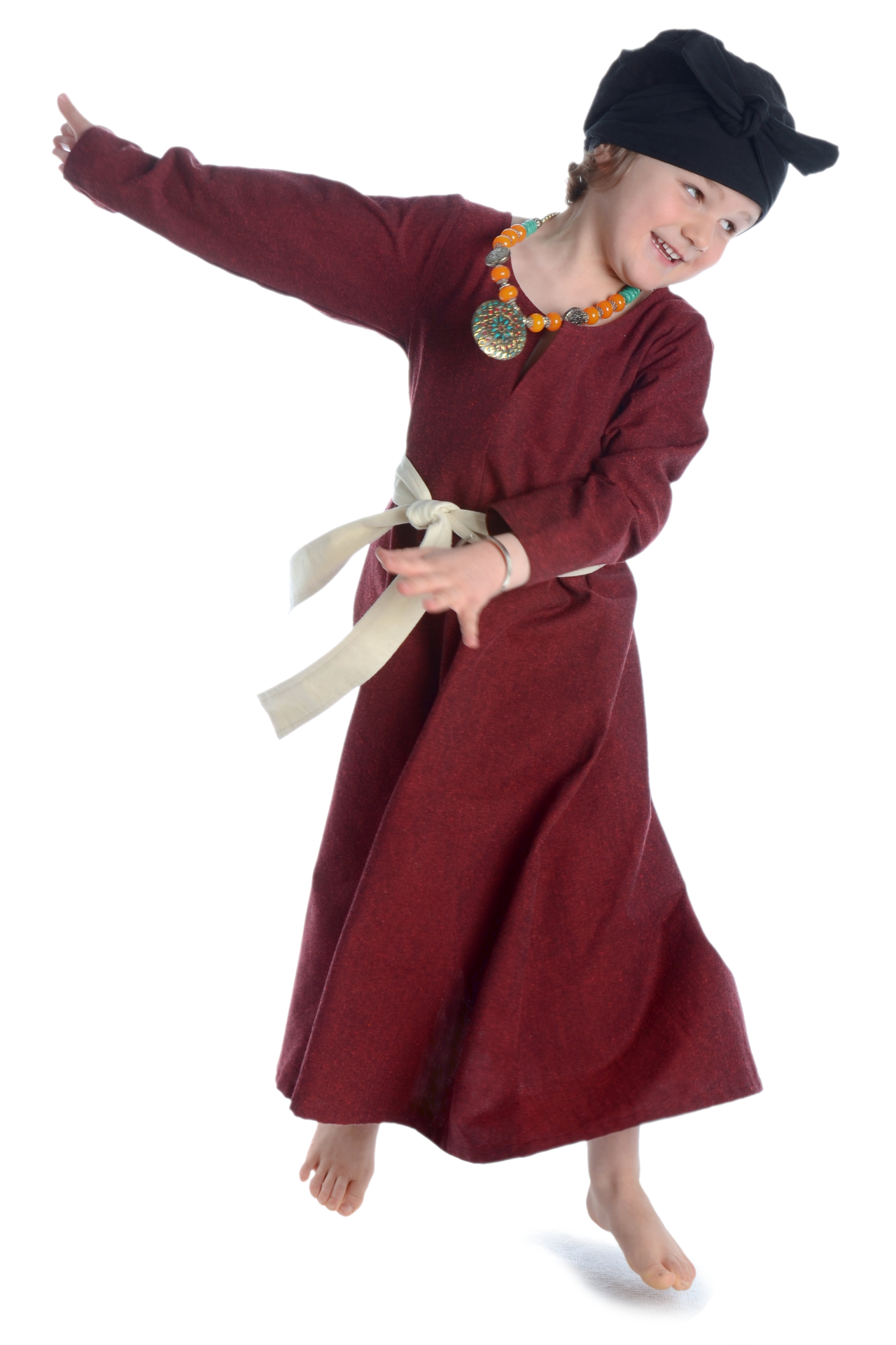Der historische, reduzierte und bequeme Schnitt von Kleid „Geirdriful“ ohne störende Taschen, Knöpfe oder Reißverschlüsse machen diese historische Gewandung zum zur perfekten Begleiter für Mittelaltermärkte und andere Veranstaltungen wie LARP-Events, Rollenspiel, Reenactment oder Karnevalsfeierlichkeiten.