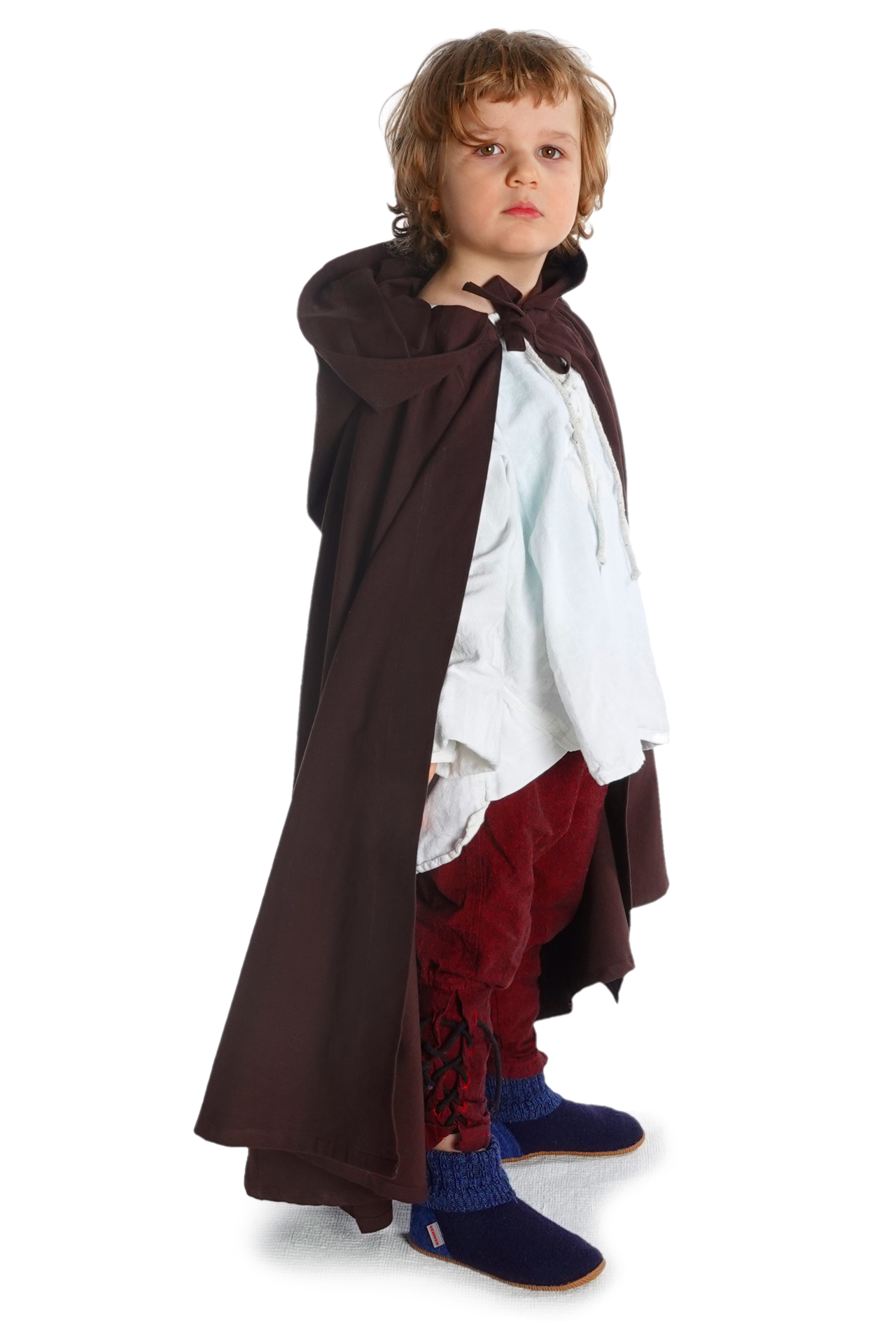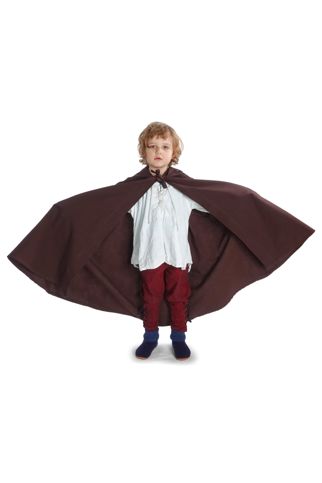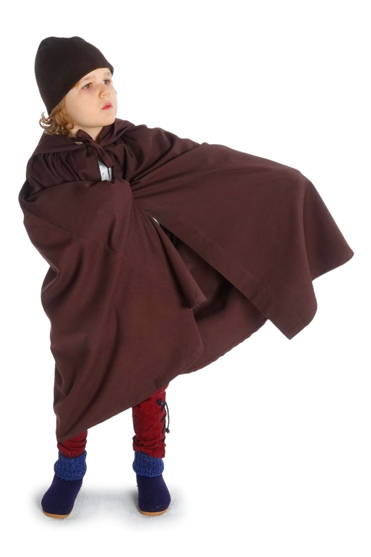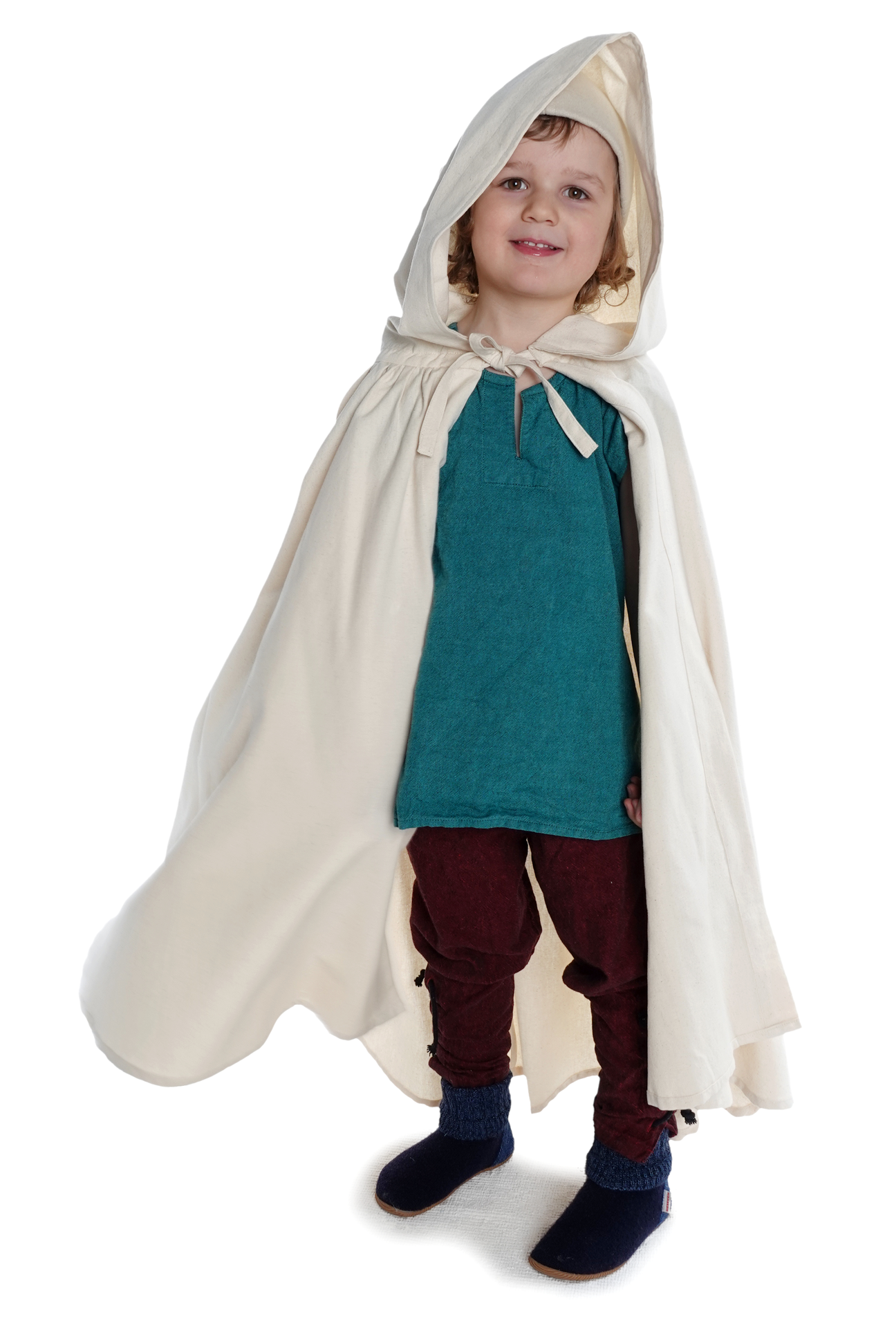 Da zur mittelalterlichen Kinder- und Erwachsenentracht gleichermaßen ein Umhang gehörte, können Sie mit dem Umhang „Gandiluz“ mittelalterliche Gewandungen verschiedenster Art abrunden und vervollständigen. Mit „Gandiluz“ ist Ihr Kind anlässlich Mittelalter-Veranstaltungen jeglicher Art, aber auch bei LARP, Rollenspiel oder Reenactment komfortabel und angemessen gekleidet. Aber natürlich auch für eine Kostümierung an Fasching und Karneval bietet sich dieser mittelalterliche Kinderumhang hervorragend an.