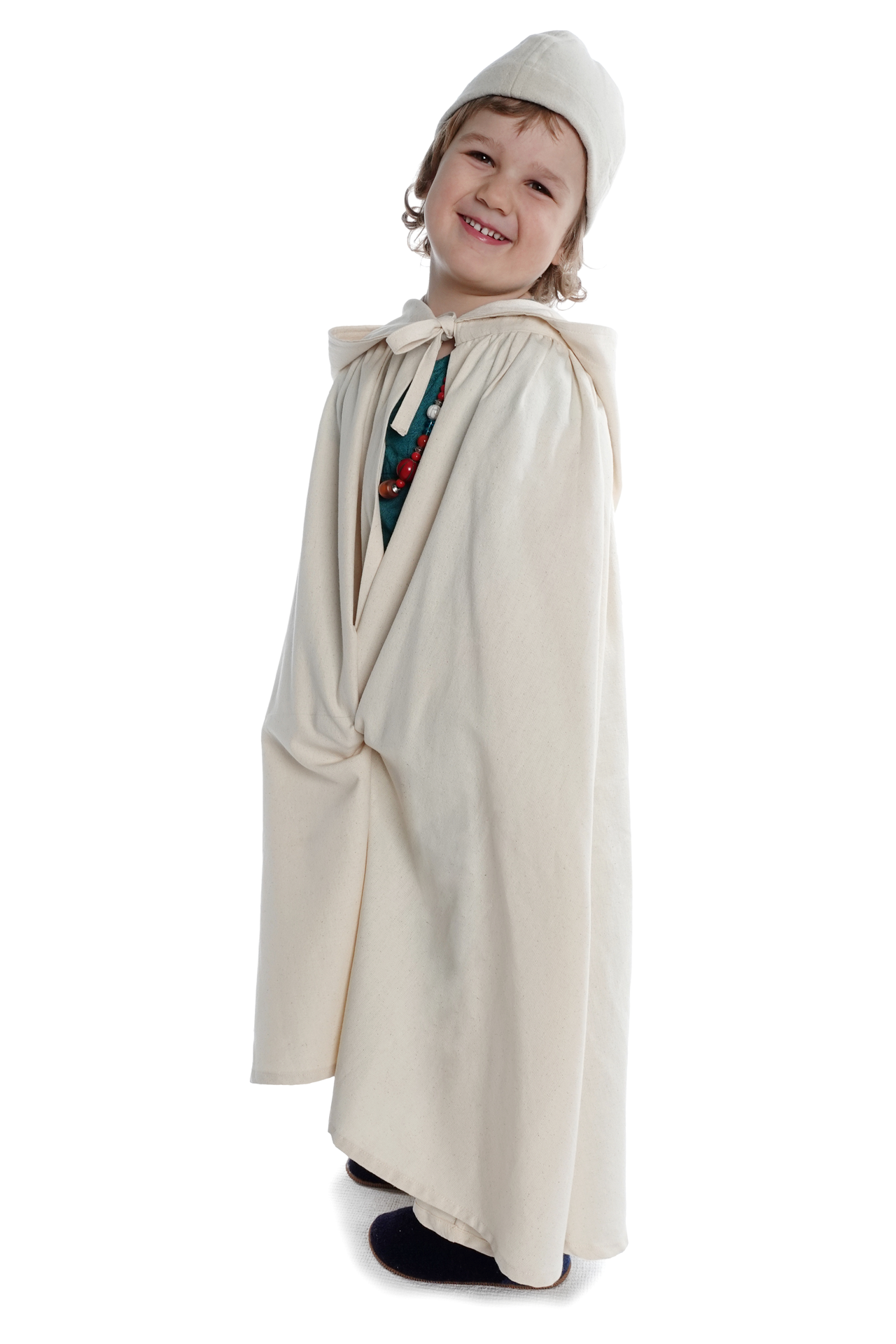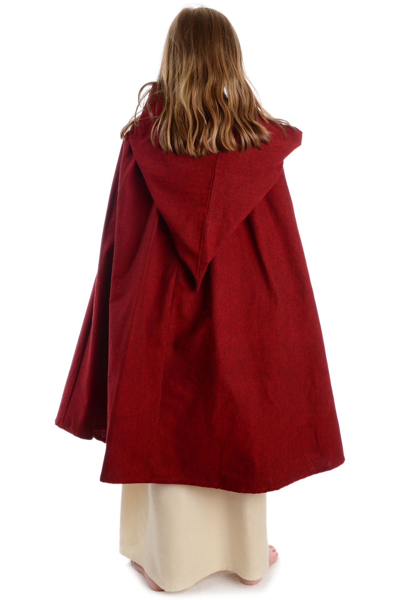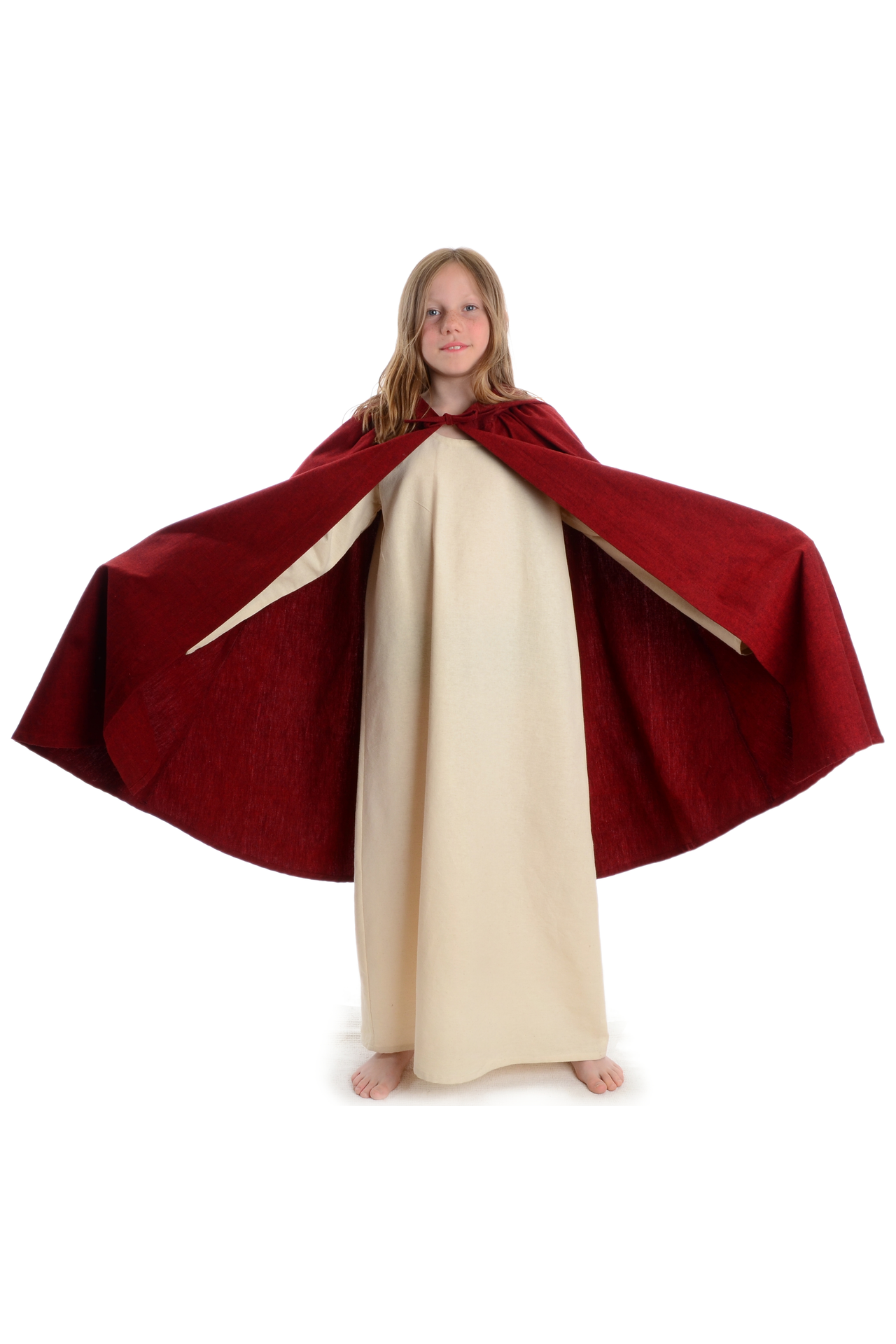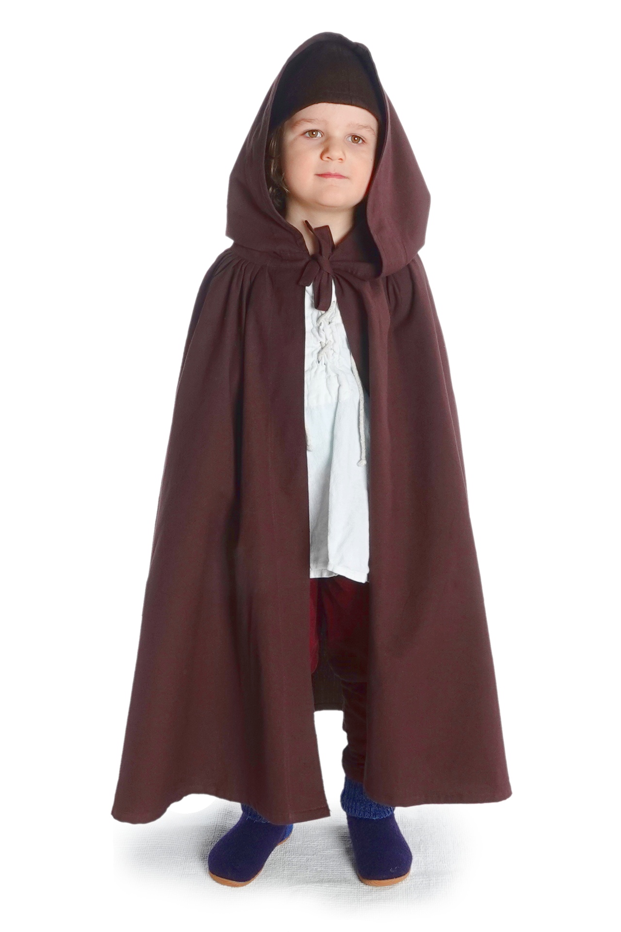Da zur mittelalterlichen Kinder- und Erwachsenentracht gleichermaßen ein Umhang gehörte, können Sie mit dem Umhang „Gandiluz“ mittelalterliche Gewandungen verschiedenster Art abrunden und vervollständigen. Mit „Gandiluz“ ist Ihr Kind anlässlich Mittelalter-Veranstaltungen jeglicher Art, aber auch bei LARP, Rollenspiel oder Reenactment komfortabel und angemessen gekleidet. Aber natürlich auch für eine Kostümierung an Fasching und Karneval bietet sich dieser mittelalterliche Kinderumhang hervorragend an.
