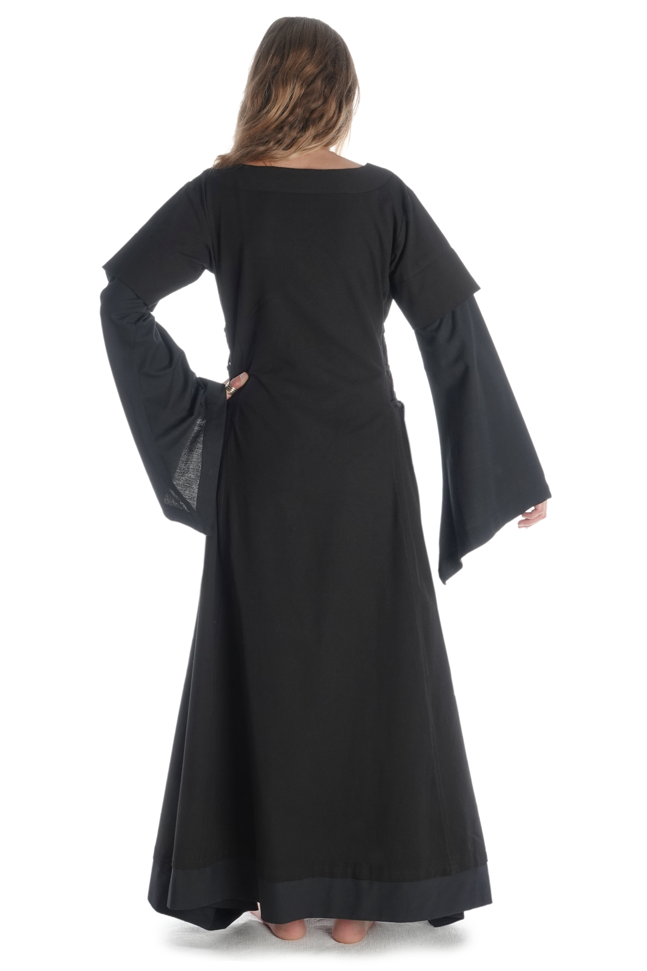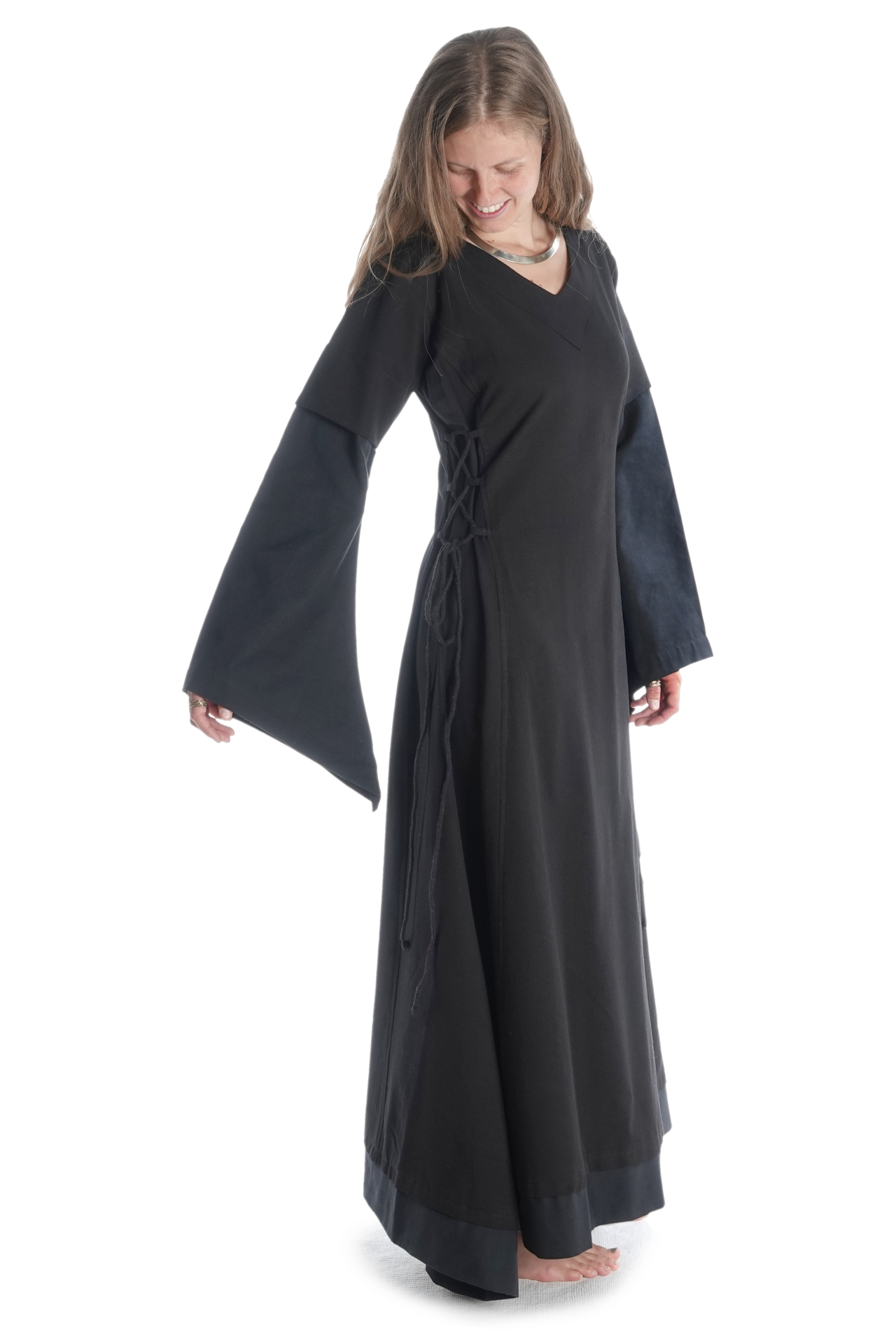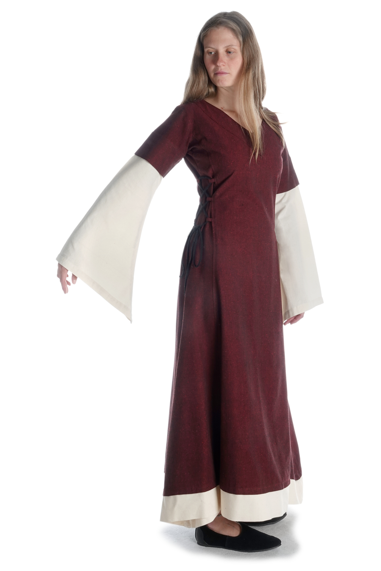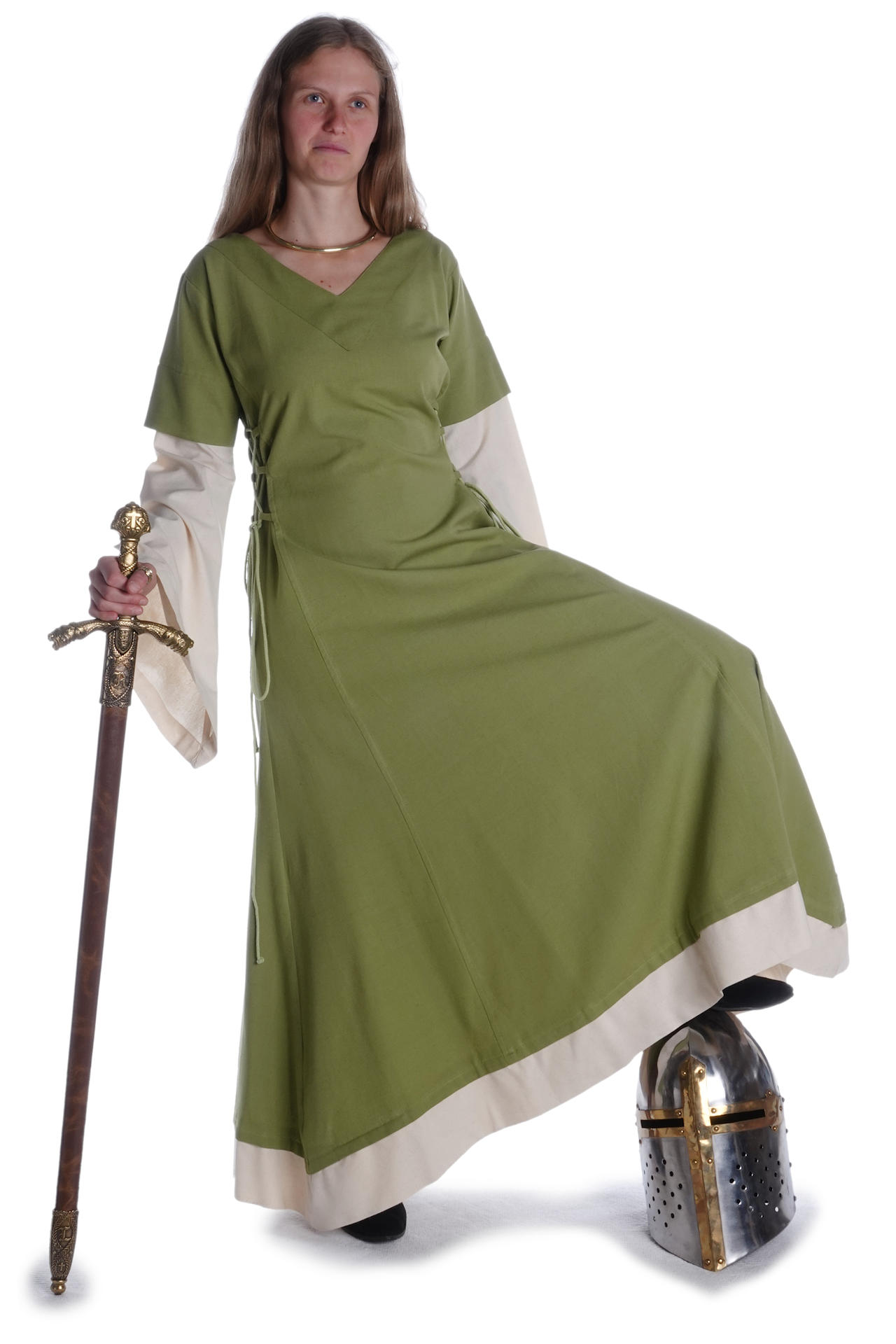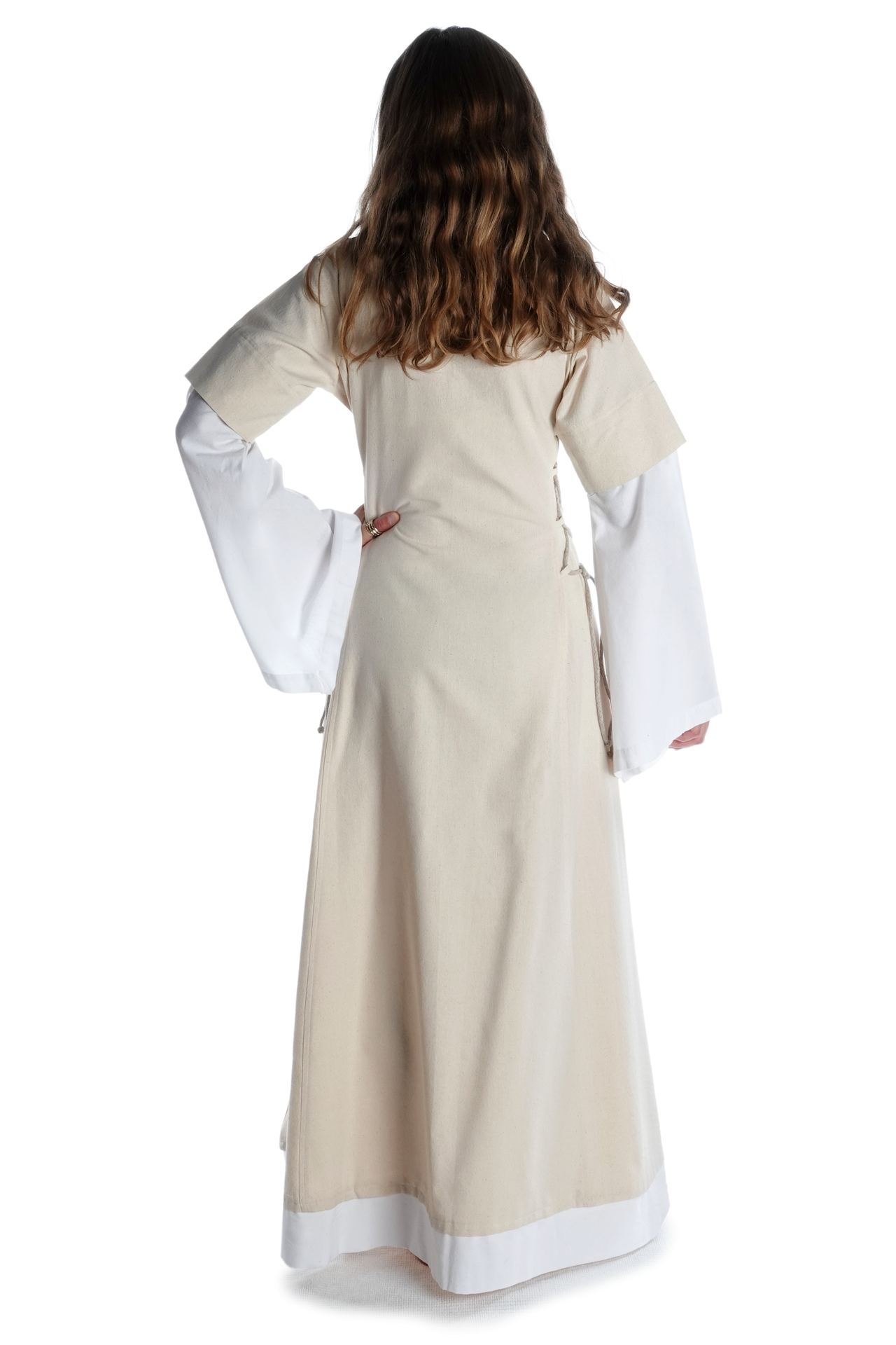 Der historische und bequeme Schnitt von Kleid „Saelde“ ohne störende Taschen, Knöpfe oder Reißverschlüsse machen diese historische Gewandung zum zur perfekten Begleiter für Mittelaltermärkte und andere Veranstaltungen wie LARP-Events, Rollenspiel, Reenactment oder Karnevalsfeierlichkeiten.