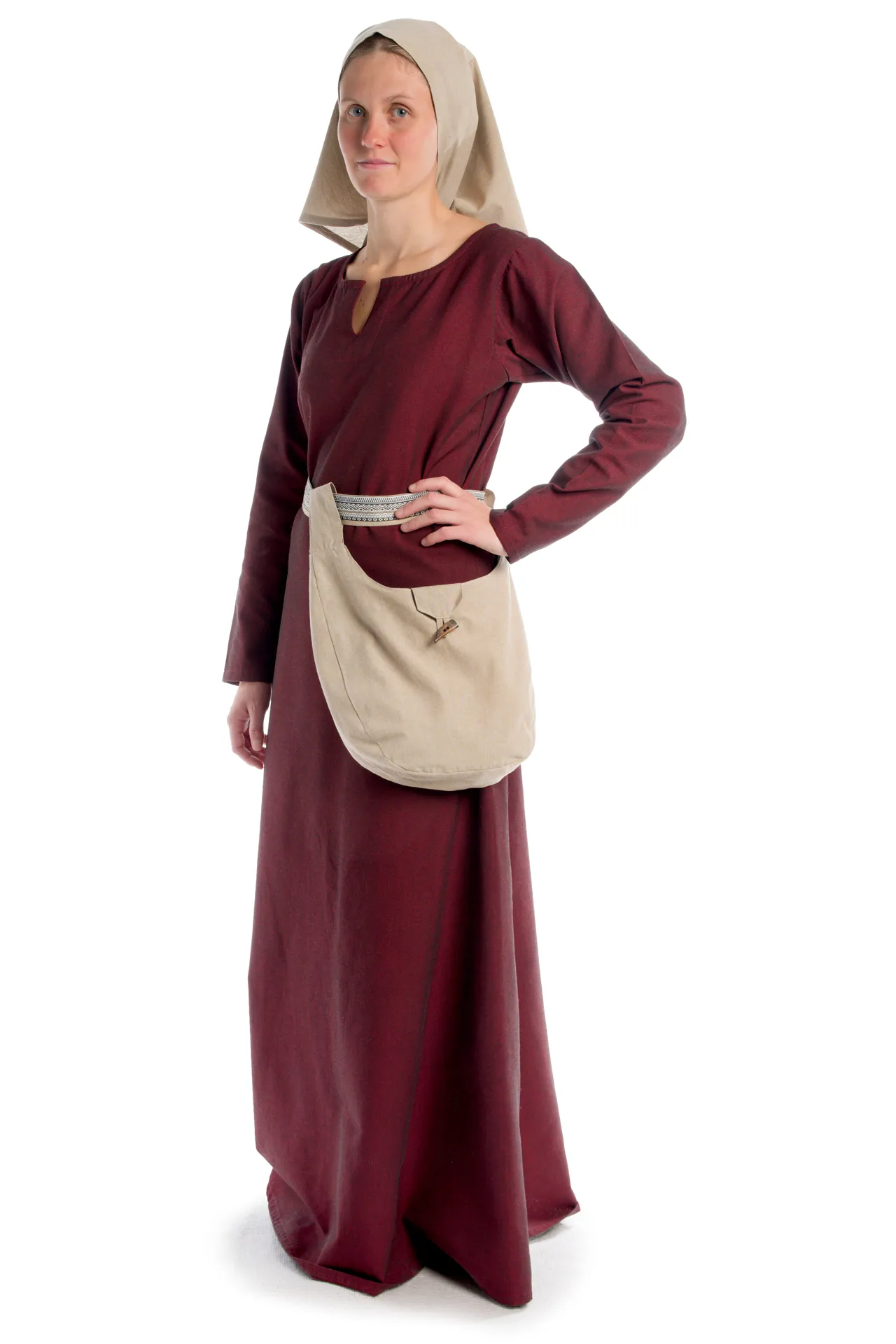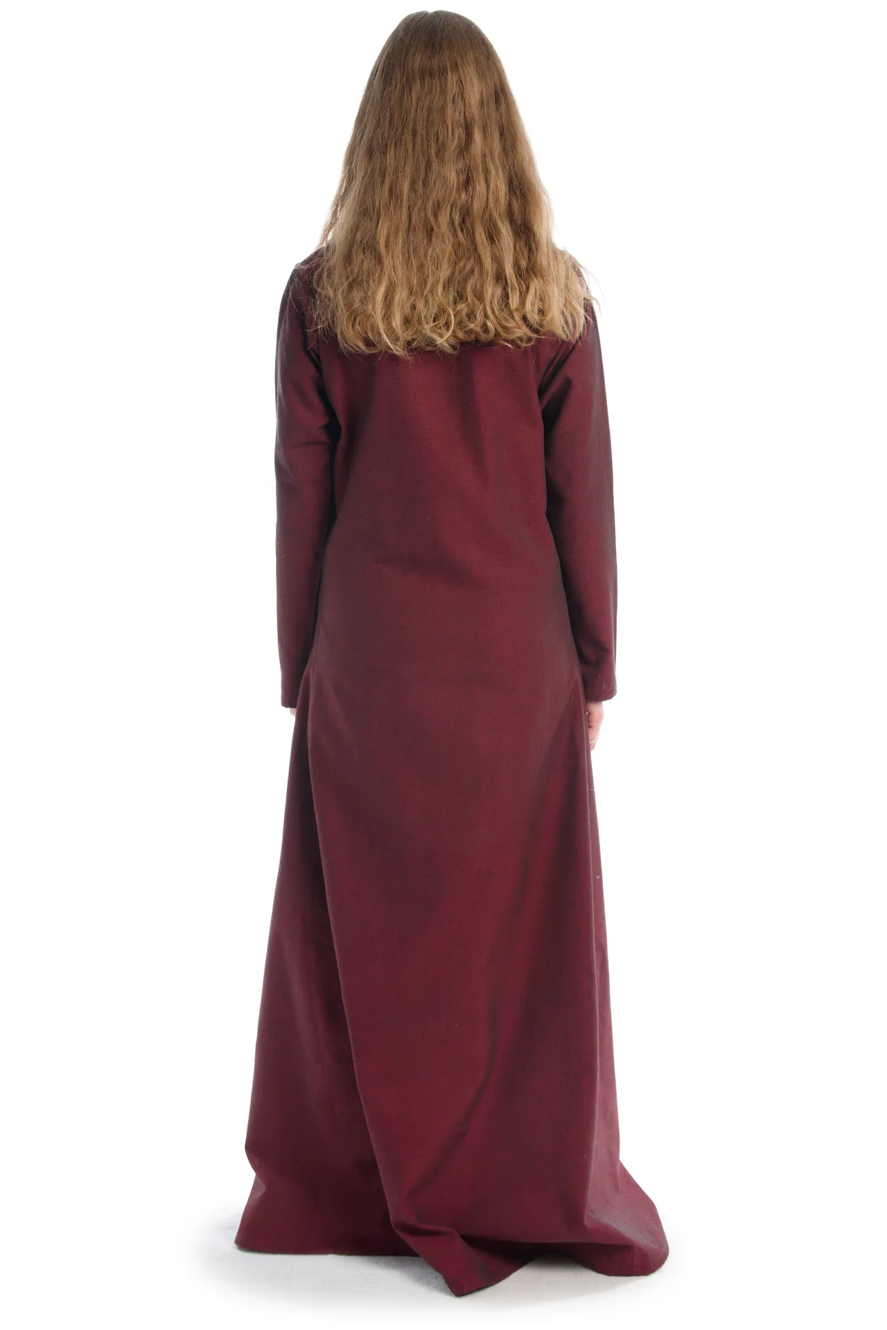 Dieses mittelalterliche Kleid „Svava“ ist aus authentischem Naturstoff gefertigt. Die reine Baumwolle trägt sich äußerst angenehm, zudem ist die Verwendung von natürlichem Material kennzeichnend für die Ära des Mittelalters. Außerdem ist die robuste Baumwolle, die mit Leinenstruktur gewebt wurde, Garant für die Langlebigkeit und Nachhaltigkeit der Kleidungsstücke.