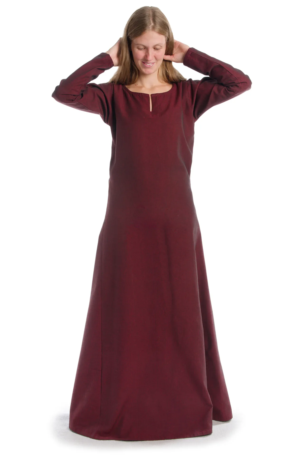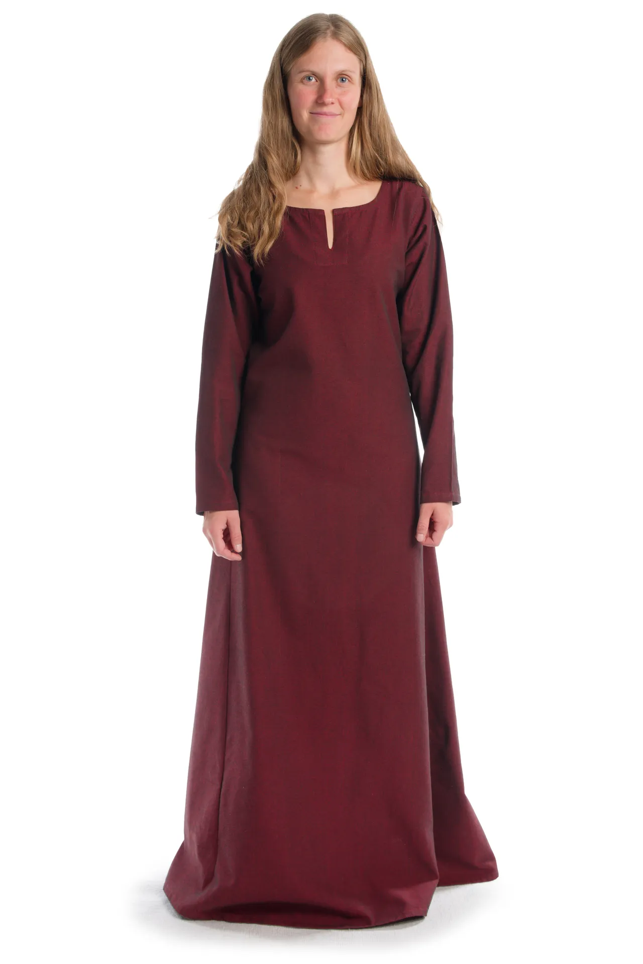 Unser Wikinger Kleid „Svava“ ist ein schlichtes Kleid, das sich ideal als Unterkleid eignet. Durch den ausgestellten Rock bittet es größstmögliche Bewegungsfreiheit.