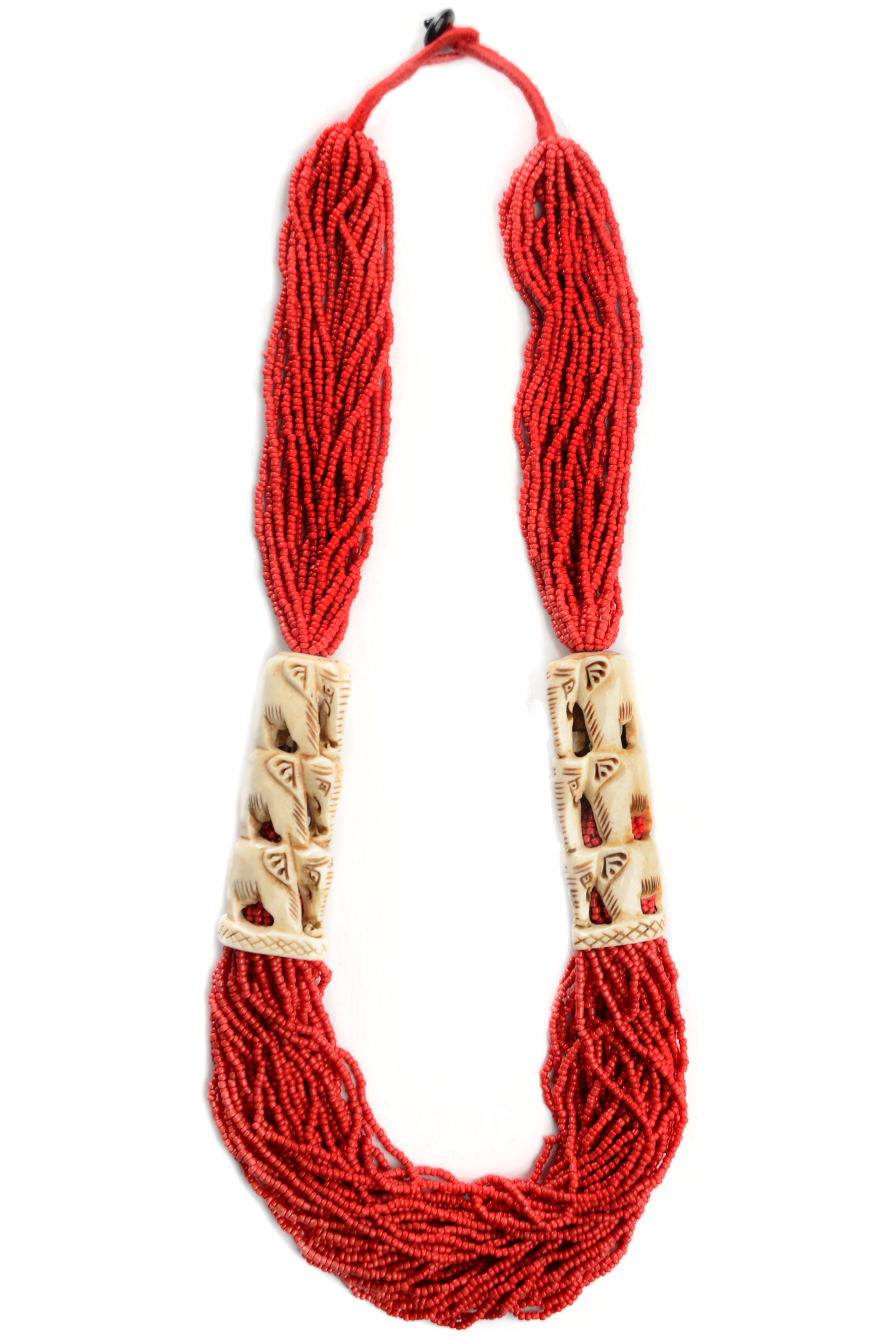 Mittelalterlicher Schmuck Halskette rote Perlen mit Elefanten
