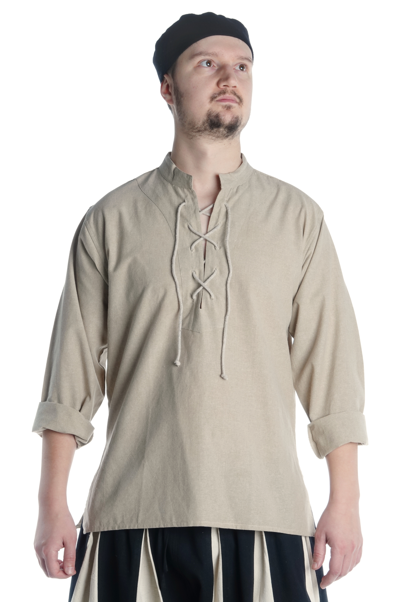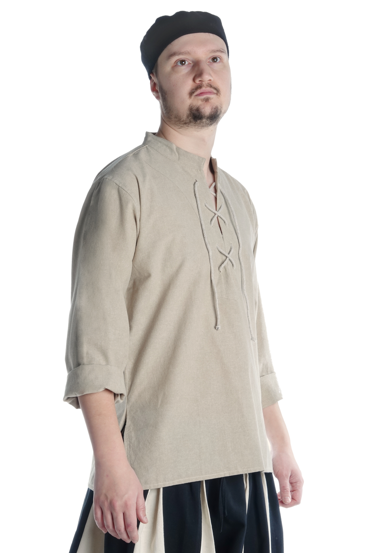 Mit „Edward“ sind Sie anlässlich Mittelalter-Veranstaltungen jeglicher Art, aber auch beim LARP, Rollenspiel oder Reenactment komfortabel und angemessen gekleidet. Aber natürlich auch für eine Kostümierung an Fasching bietet sich dieses mittelalterliche Hemd hervorragend an. Darüber hinaus eignet es sich bestens als Freizeitkleidung.