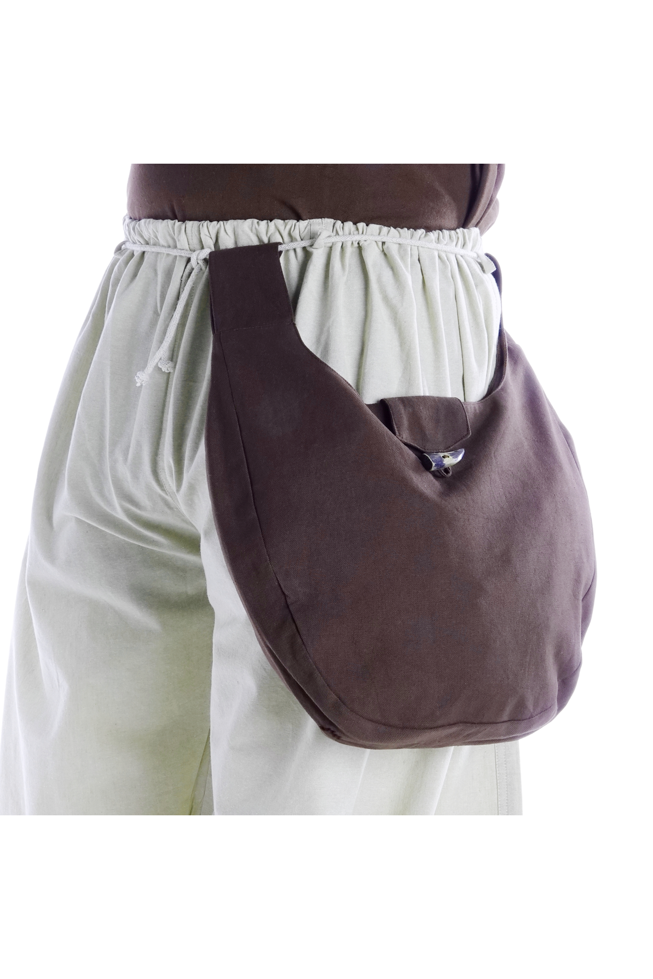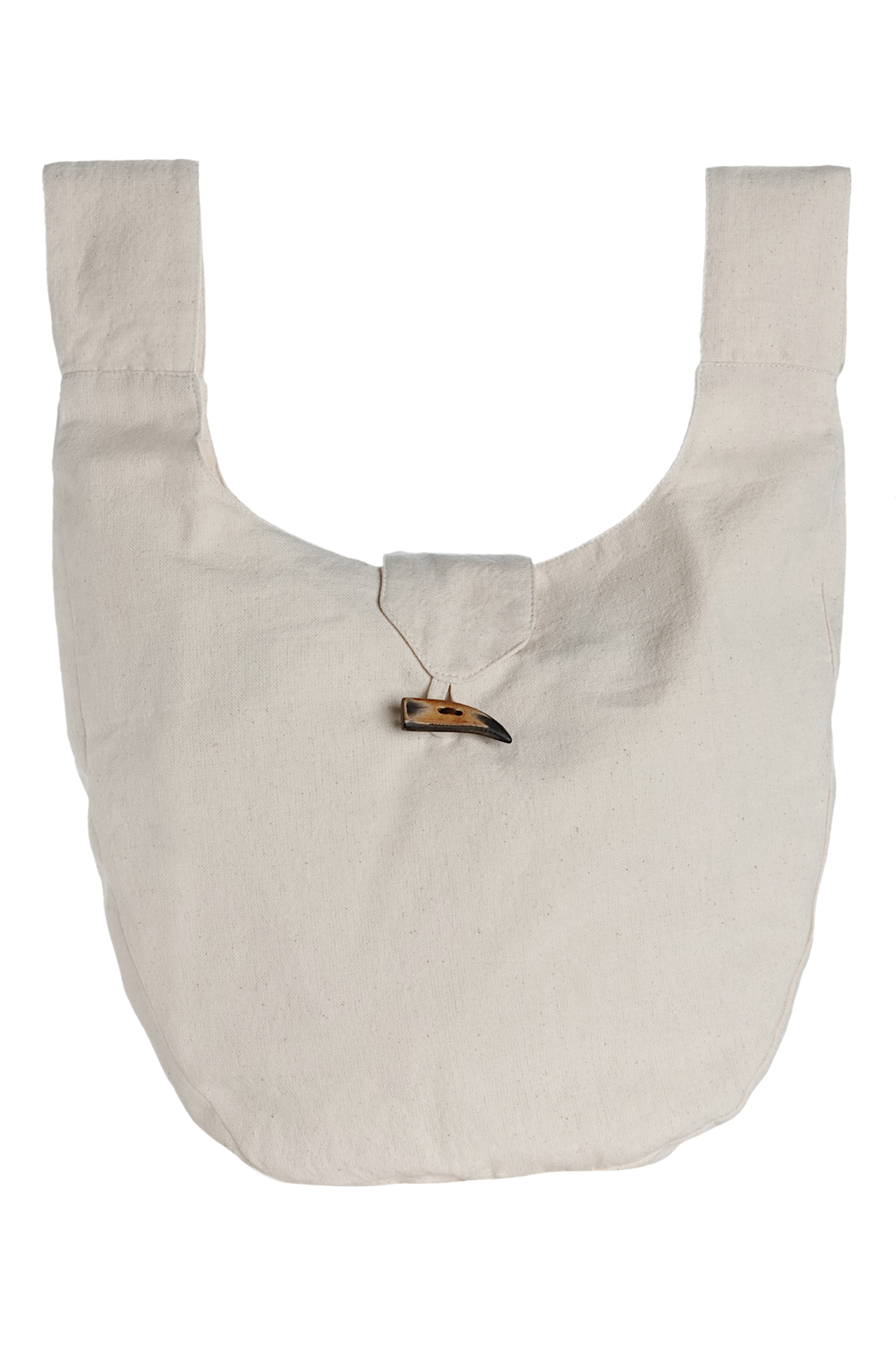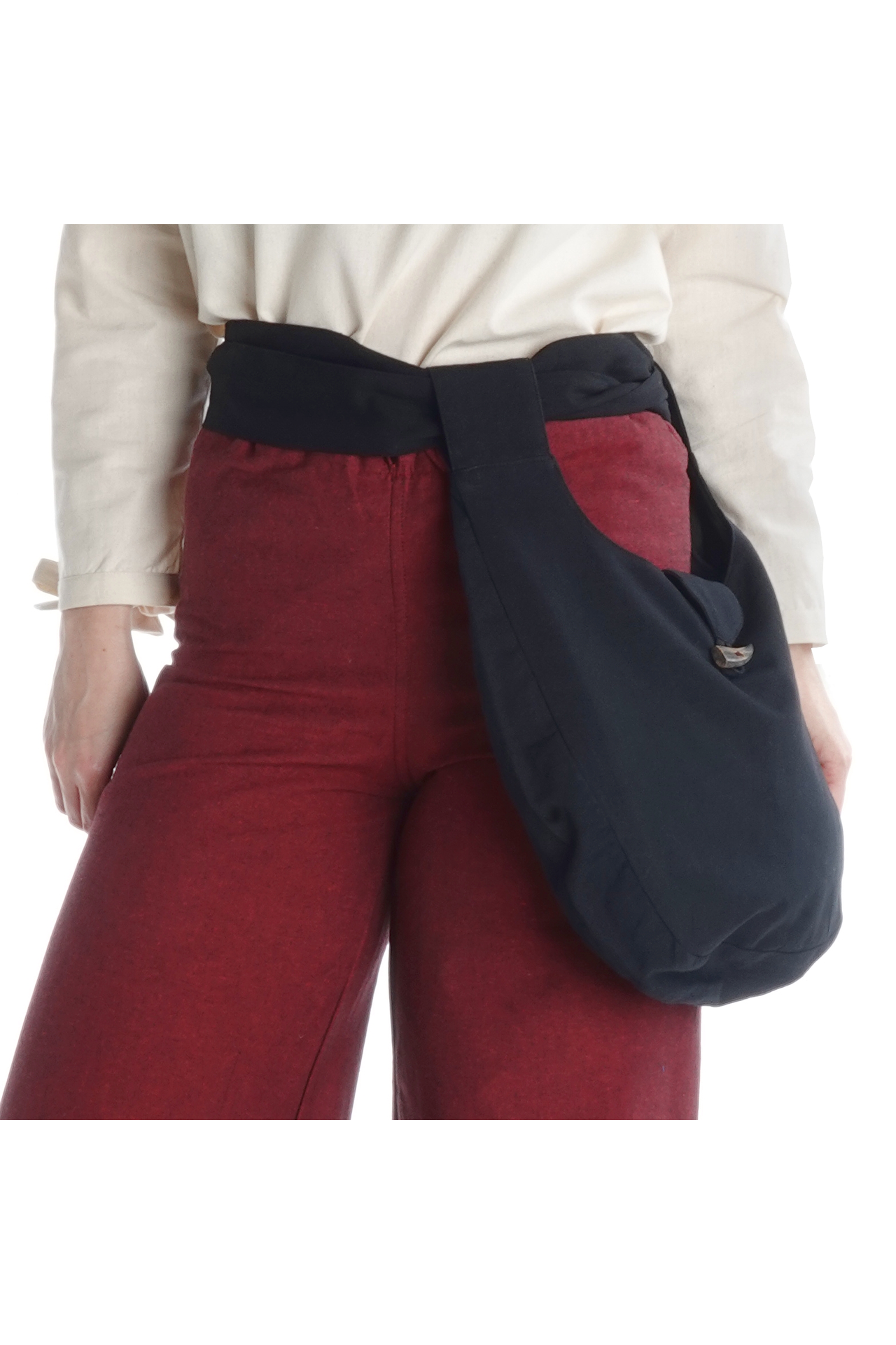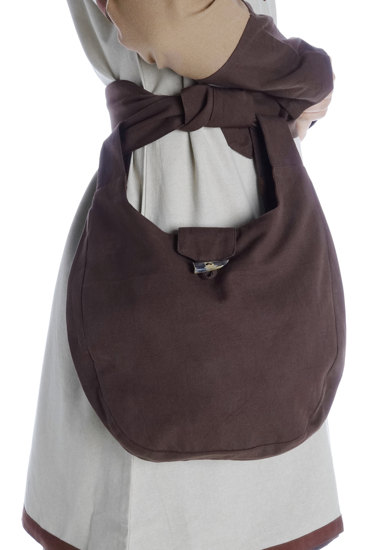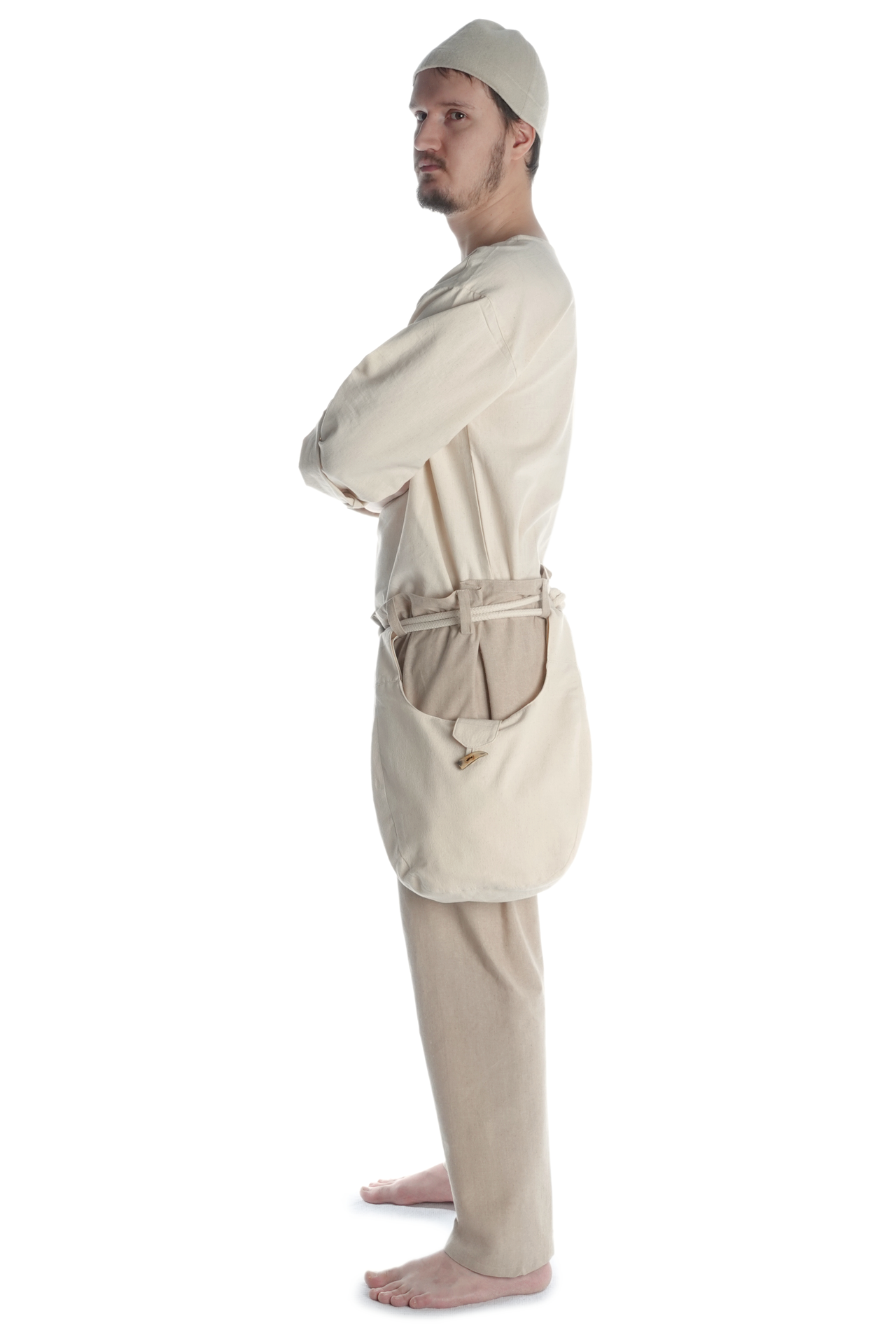 Diese große mittelalterliche Gürteltasche besteht aus reiner Baumwolle. Der naturbelassene Stoff wurde mit Leinenstruktur handgewebt, woraus ein robustes und langlebiges Textil mit hoher Gewebequalität resultierte.