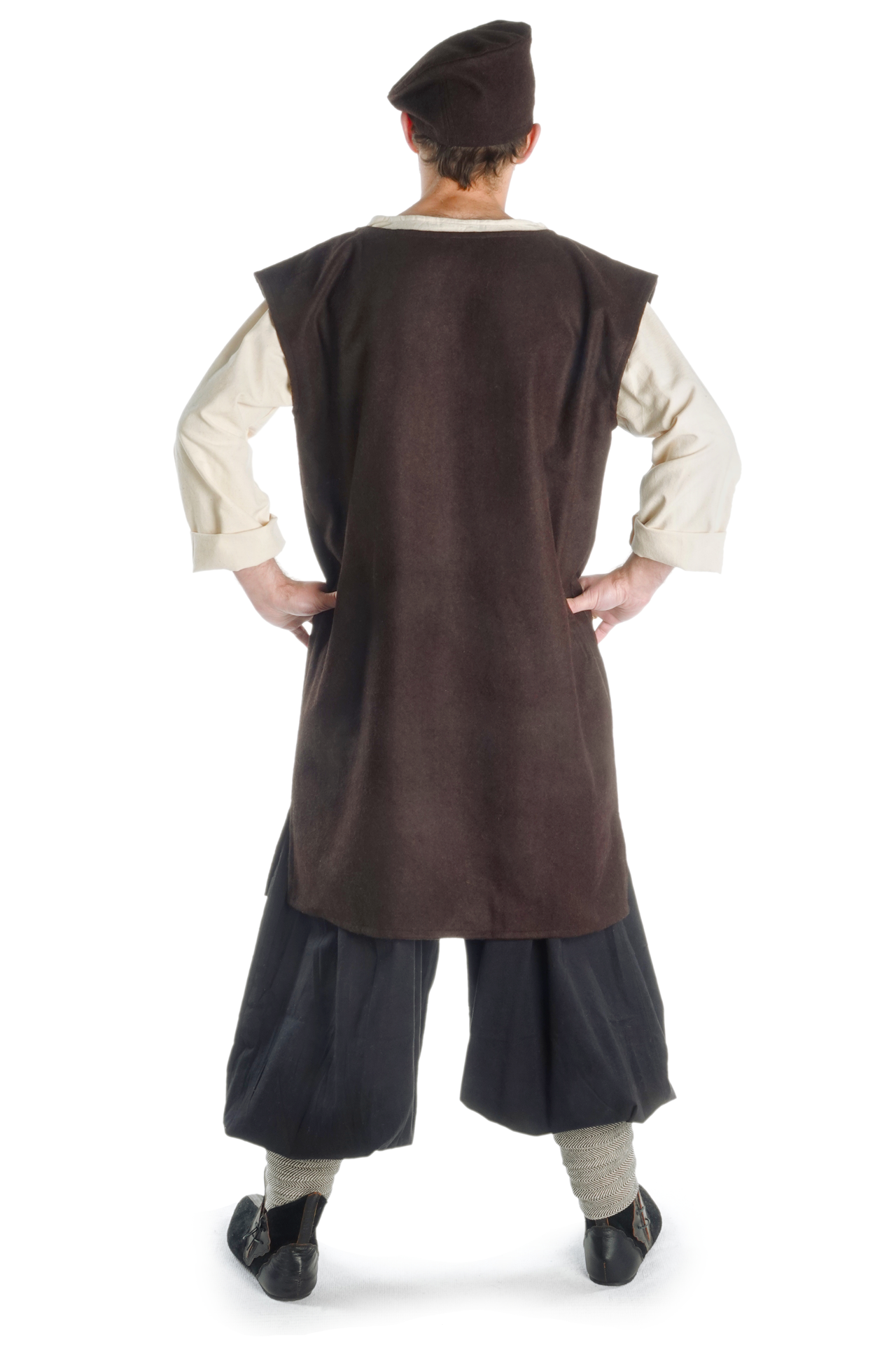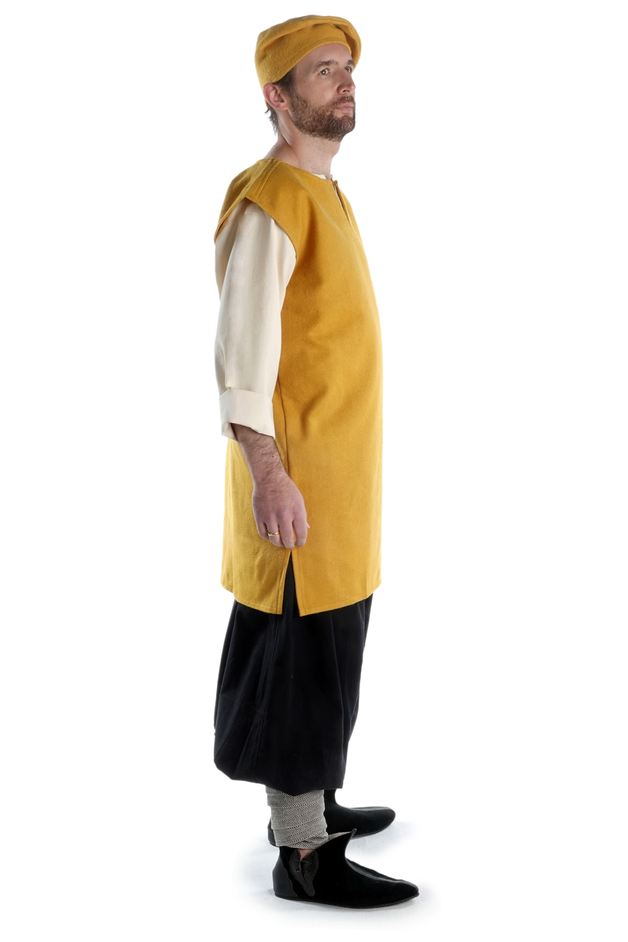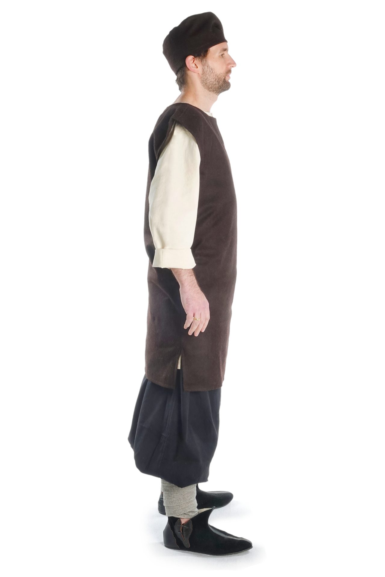 Die mittelalterliche Tunika "Anshelm" wurde aus festem Schafwollfilz angefertigt. Dieser bietet nicht nur einen tadellosen Schutz gegen Kälte und Witterung, sondern die Verarbeitung von natürlichen Stoffmaterialien ist zudem kennzeichnend für frühere Epochen. Außerdem garantiert die robuste Stoffqualität mit die Langlebigkeit dieses für die kälteren Jahreszeiten geeigneten Kleidungsstückes.