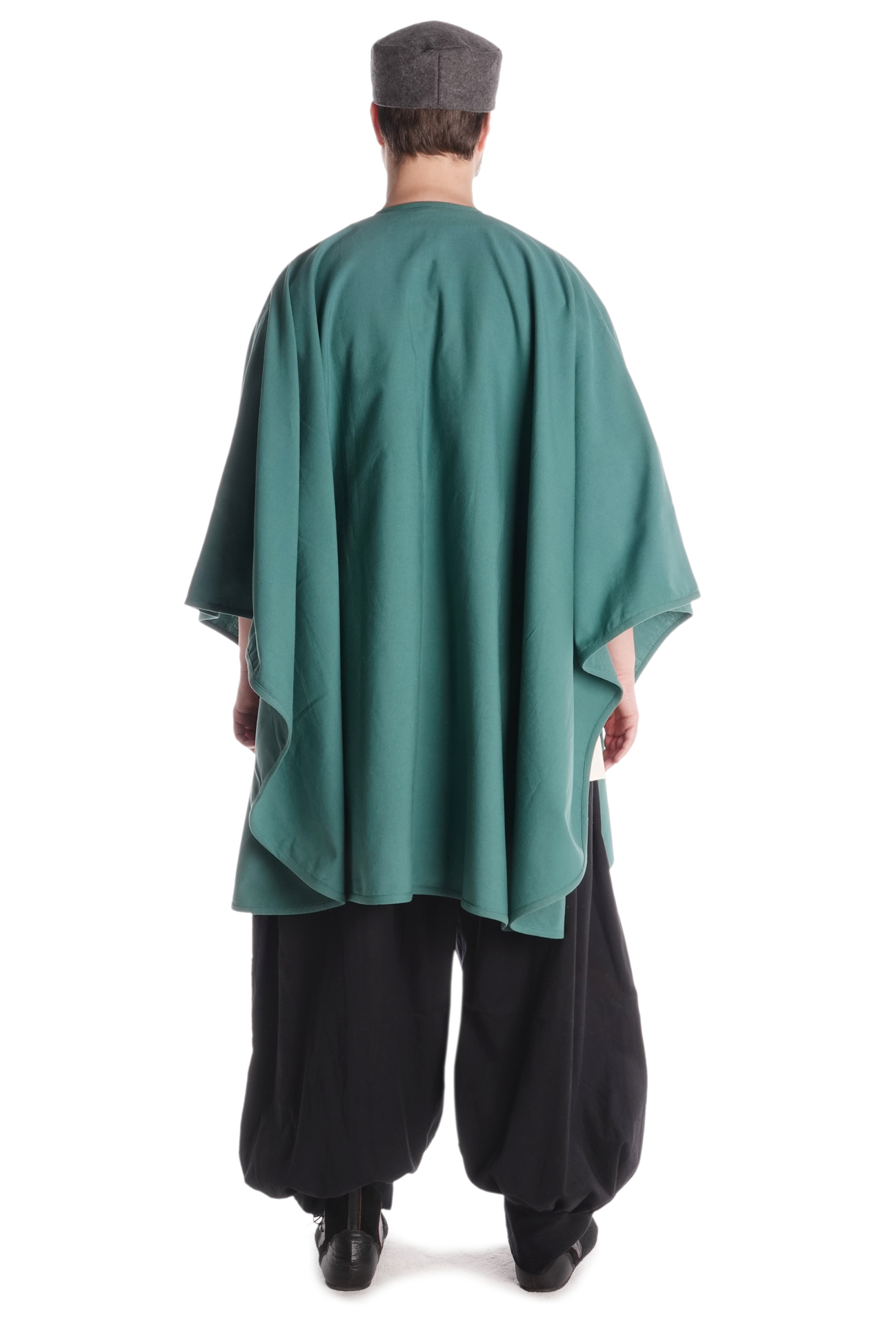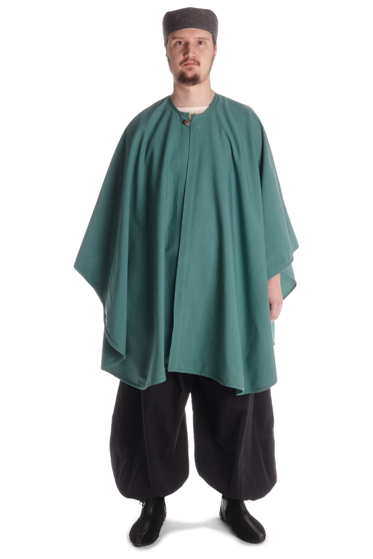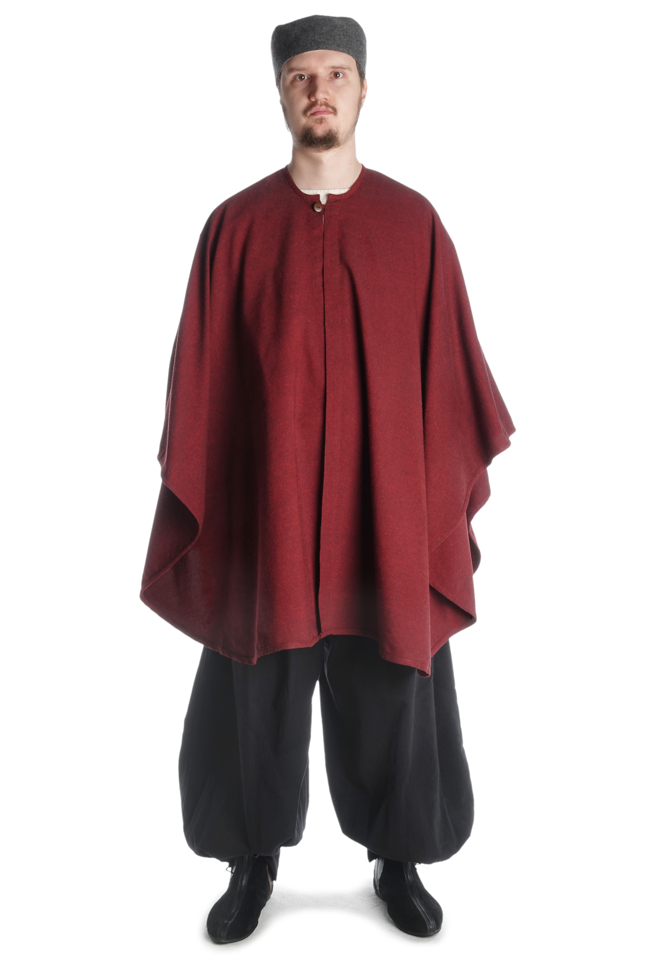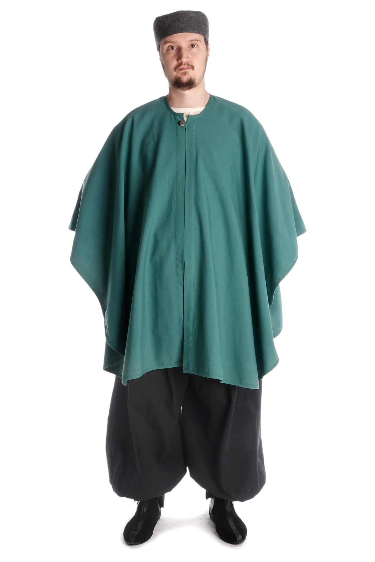 Das mittelalterliche Cape „Amire“ verfügt über einen Knopf zum schließen.