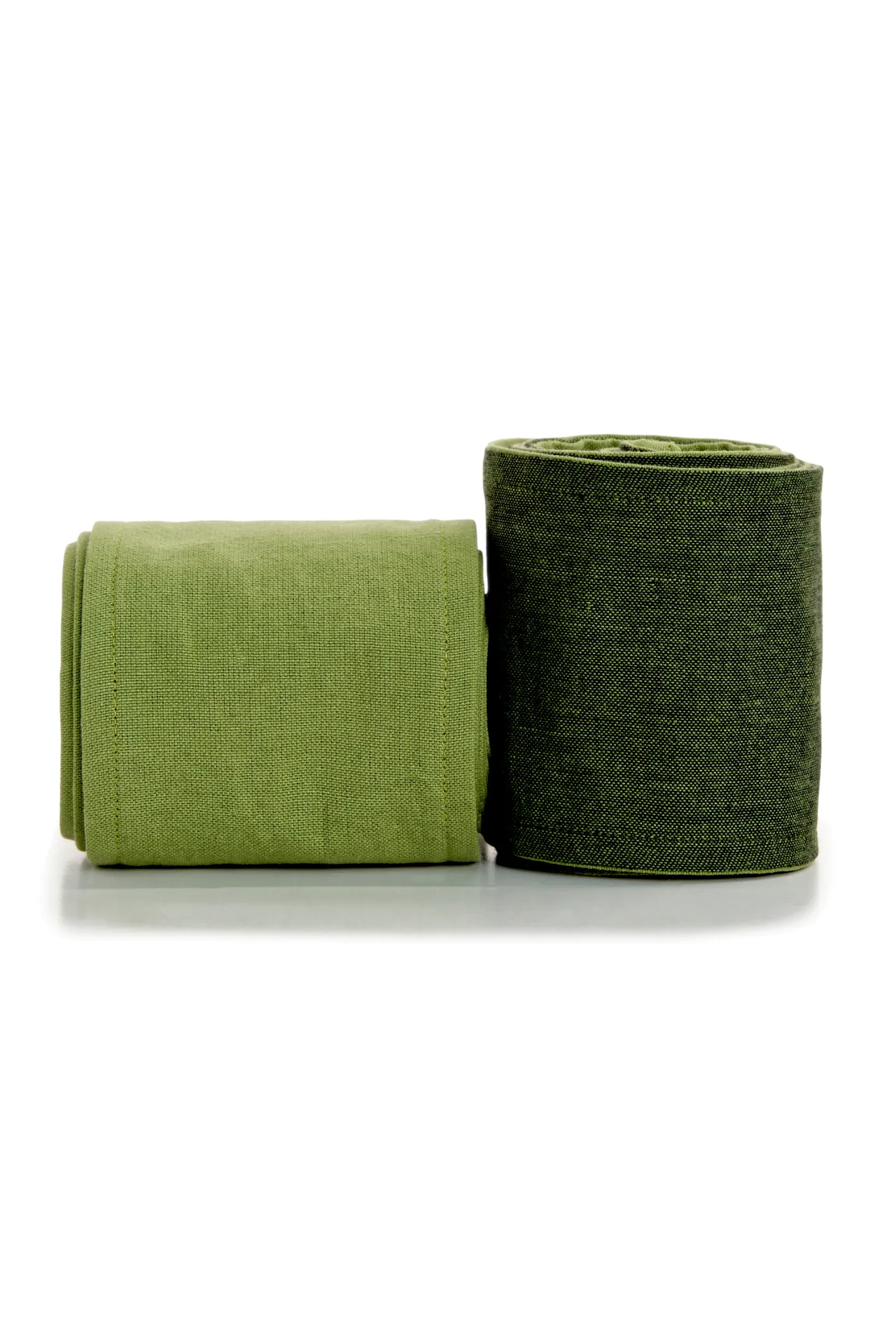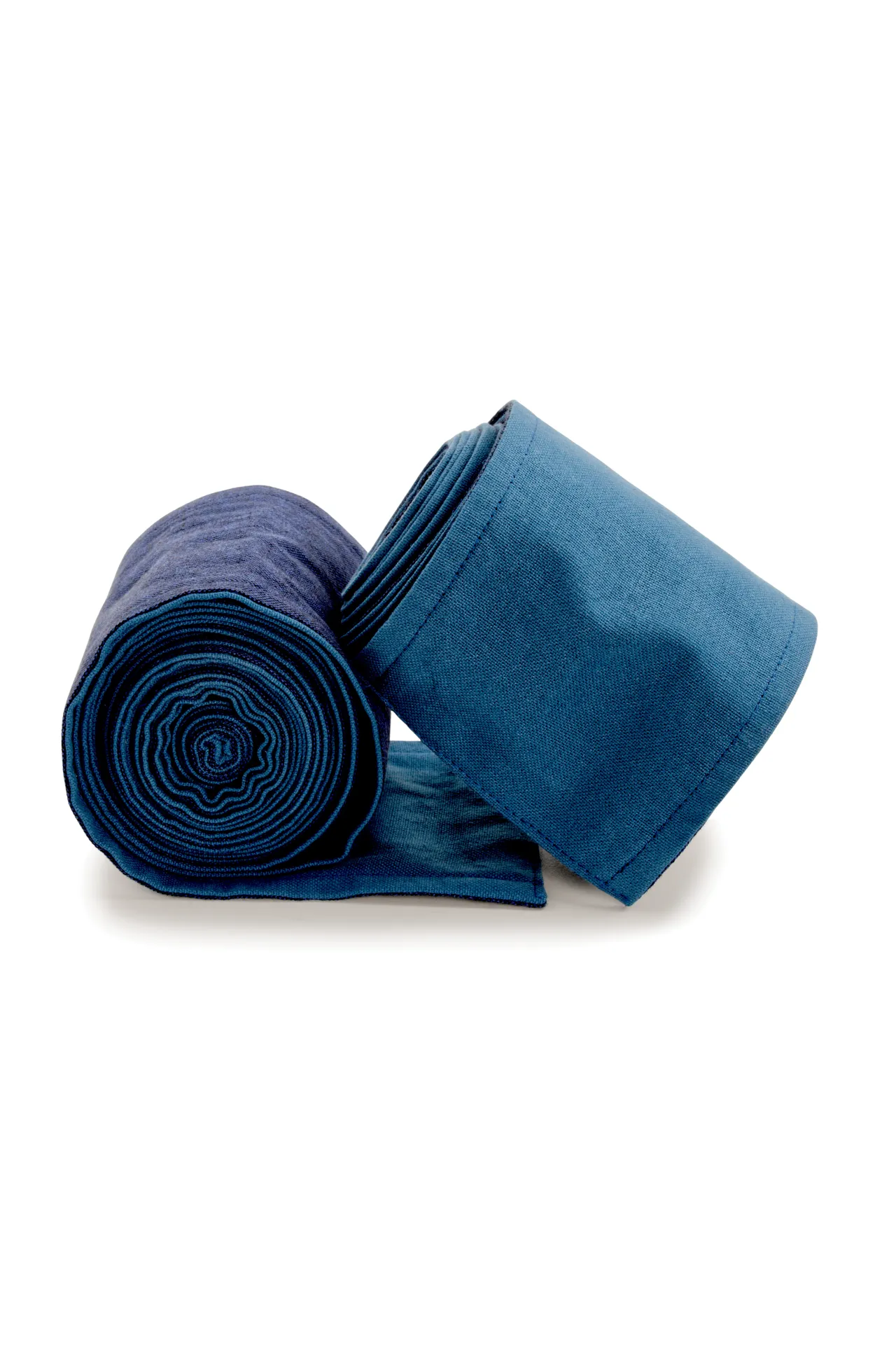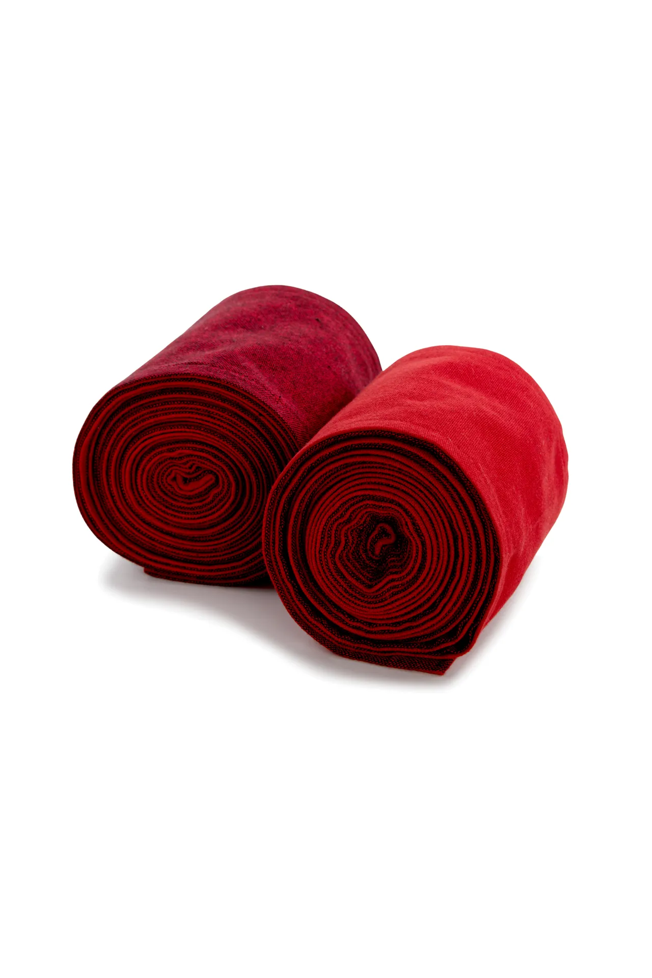 - zwei Stoffstreifen, die um die Unterschenkel gewickelt werden