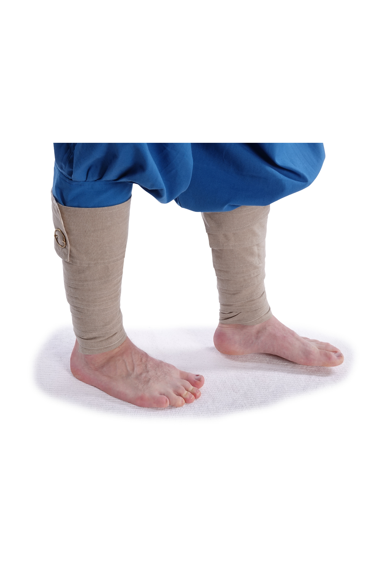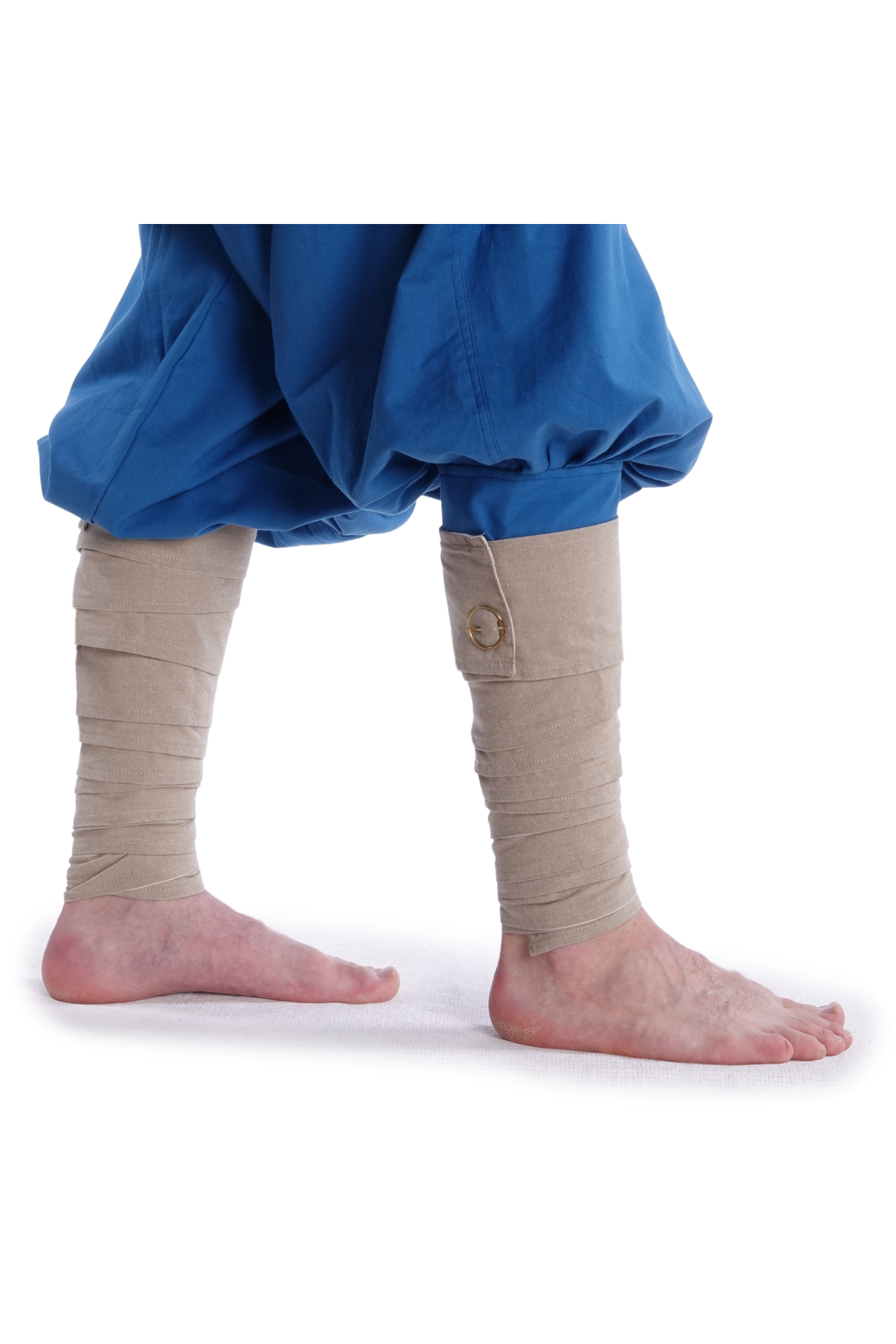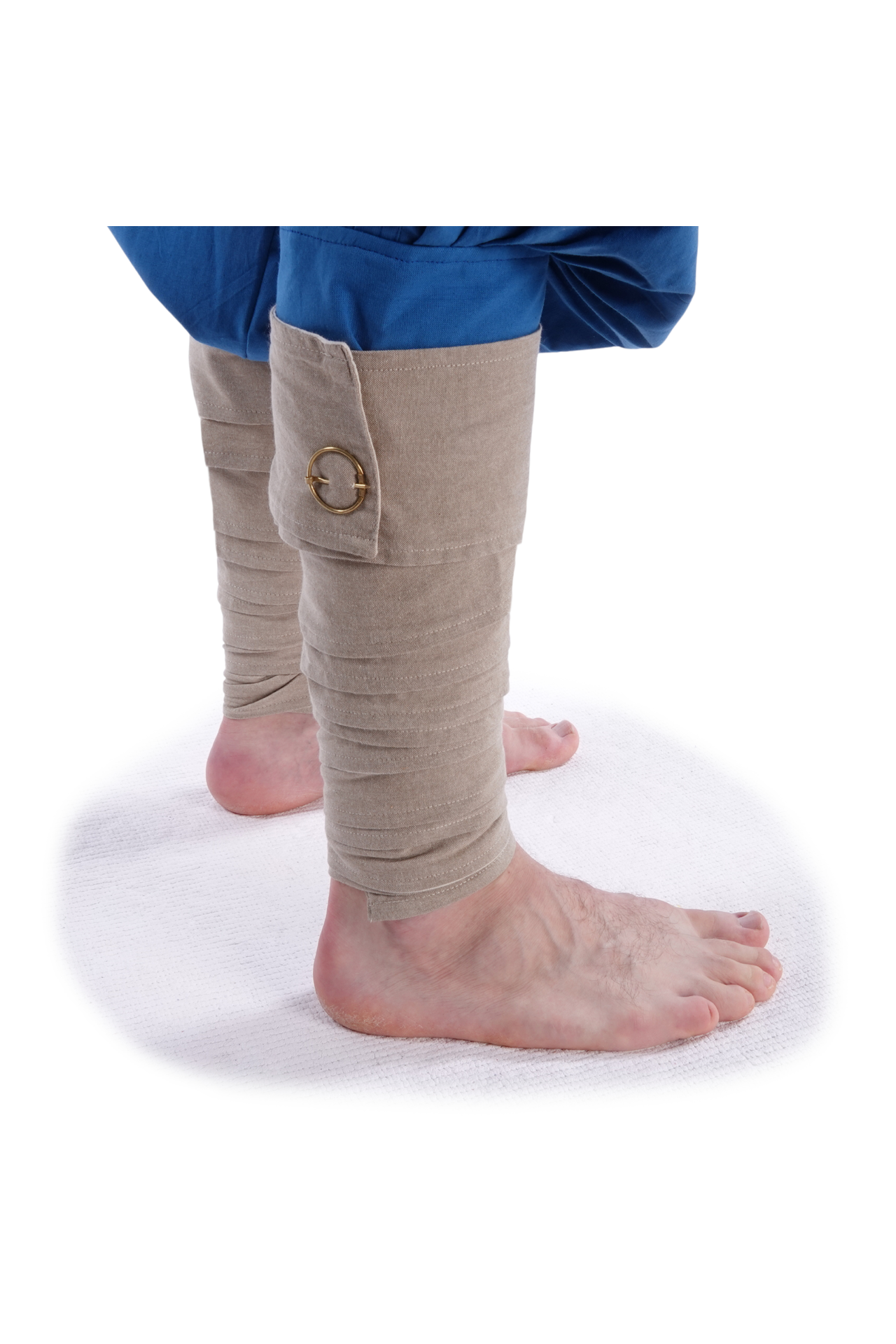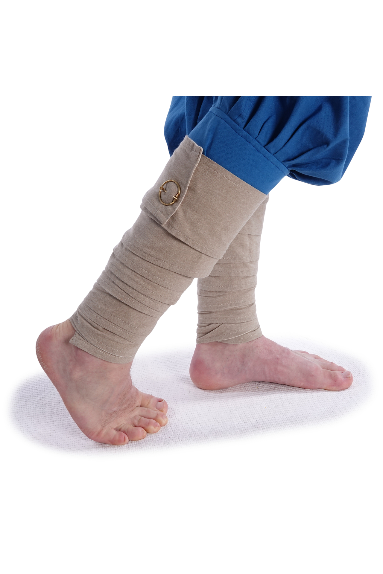 Dieser mittelalterliche Wadenwickel ist aus historisch anmutendem, natürlichem Gewebe hergestellt. Der naturbelassene Baumwollstoff überzeugt durch seine robuste, langlebige Stoffqualität.