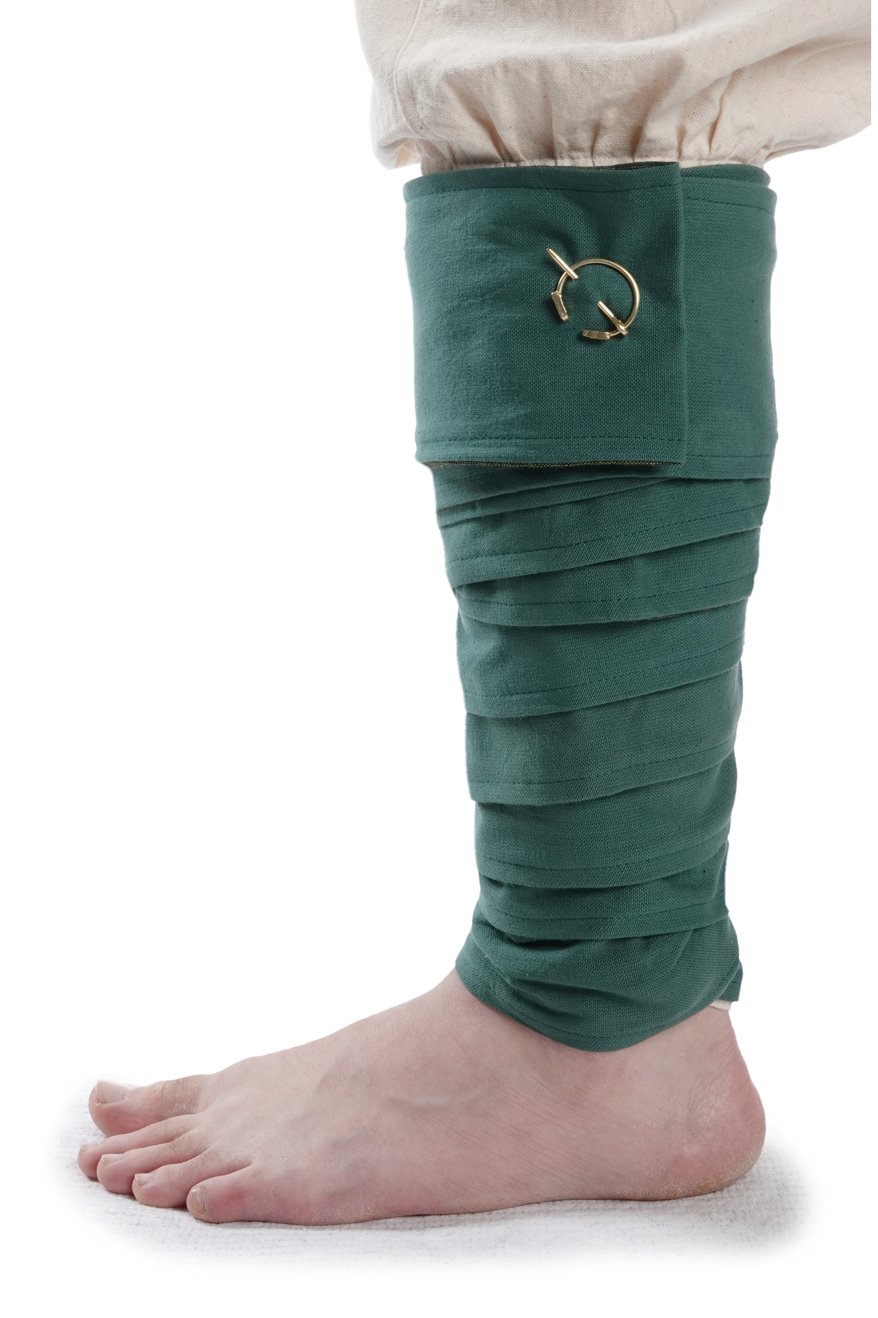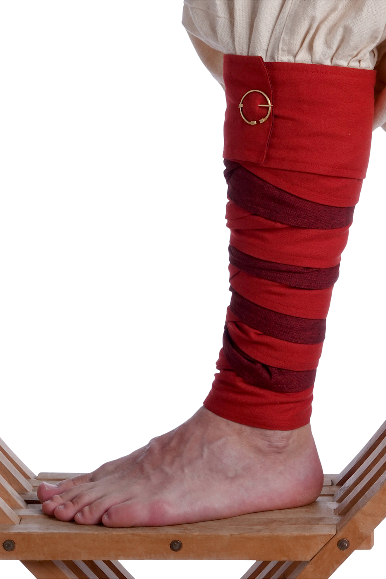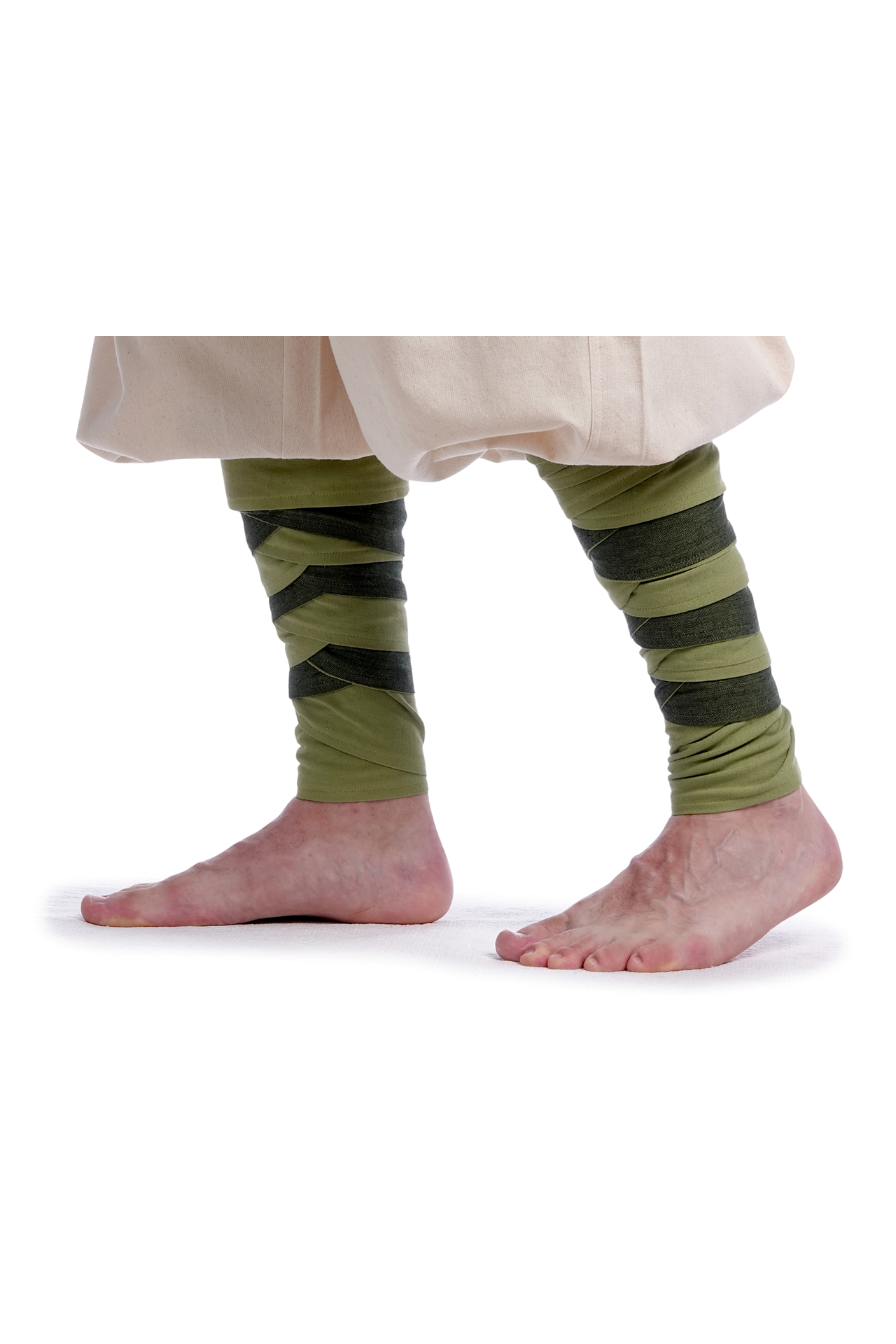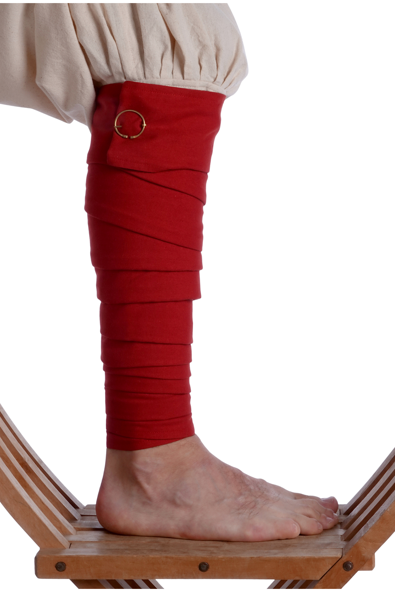 Dieser mittelalterliche Wadenwickel ist aus historisch anmutendem, natürlichem Gewebe hergestellt. Der naturbelassene Baumwollstoff überzeugt durch seine robuste, langlebige Stoffqualität.