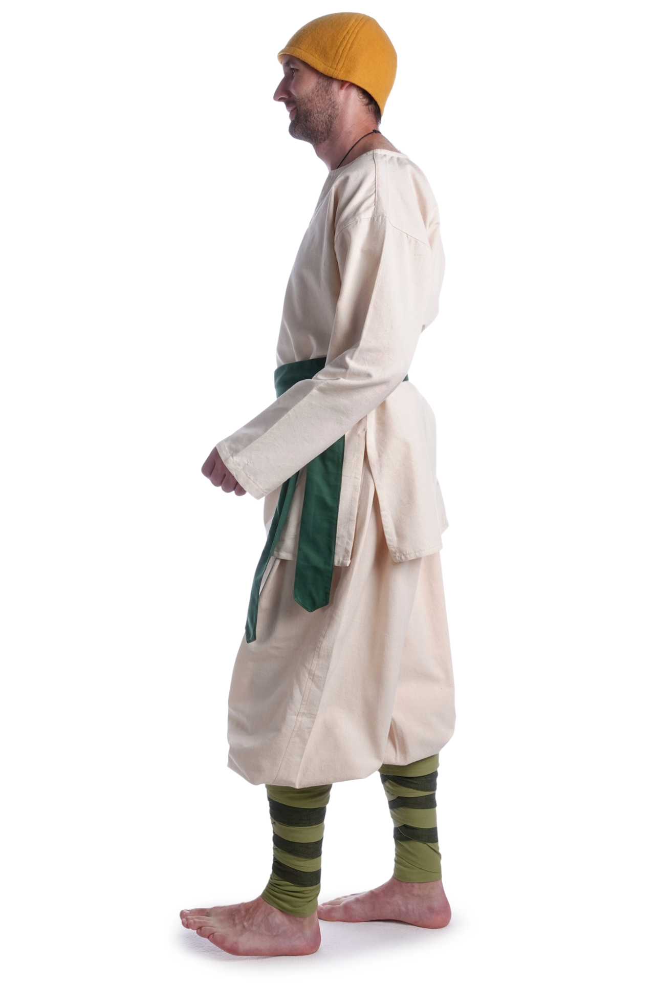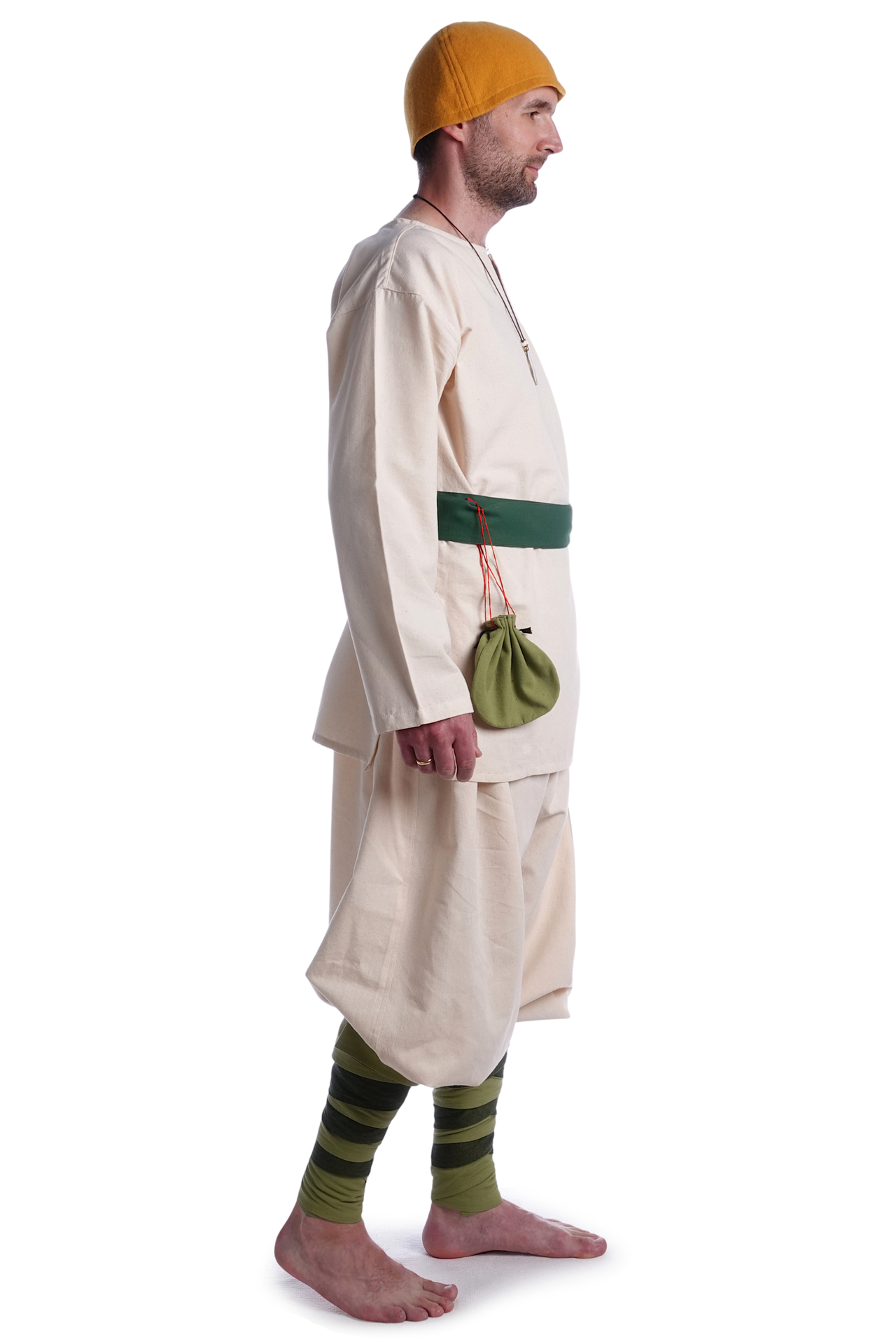 Mit diesem Wadenwickel als Bestandteil eines historischen Beinkleids sind Sie zu diversen Anlässen wie Mittelaltermärkten und -festivitäten, LARP-Events, Rollenspielen, Reenactment aber auch auf Konzerten, im Bereich Theater und an Karneval angemessen und bequem zugleich gekleidet. „Balder" ist die ideale Grundlage für mittelalterliche Gewandungen aller Art, da der Wadenwickel vielseitig kombinierbar ist. Die typische Hosenform der Wikinger und auch des sonstigen Mittelalters bis ungefähr ins 10. Jahrhundert hinein kann hervorragend umgesetzt werden, indem beispielsweise unsere „Hose Jovelin“ mit diesem Artikel kombiniert wird (siehe Abbildung). Um den Wadenwickel außerdem originalgetreu und bequem zu tragen, ist die dazugehörige „Fibel Tyr“ wird im Set mitgeliefert (ebenfalls abgebildet).