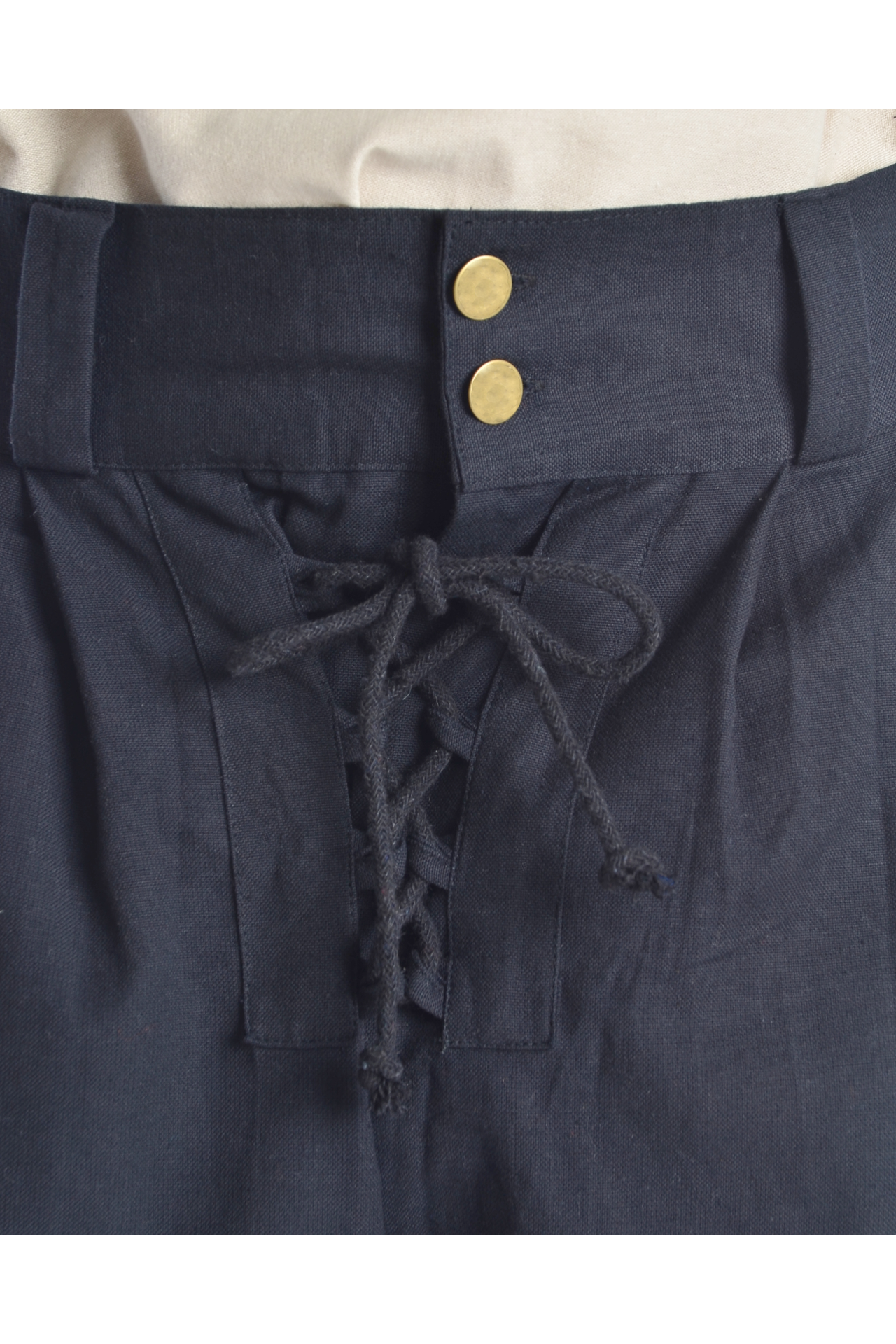- wadenlange mittelalterliche Pluderhose mit dekorativen Schnürdetails