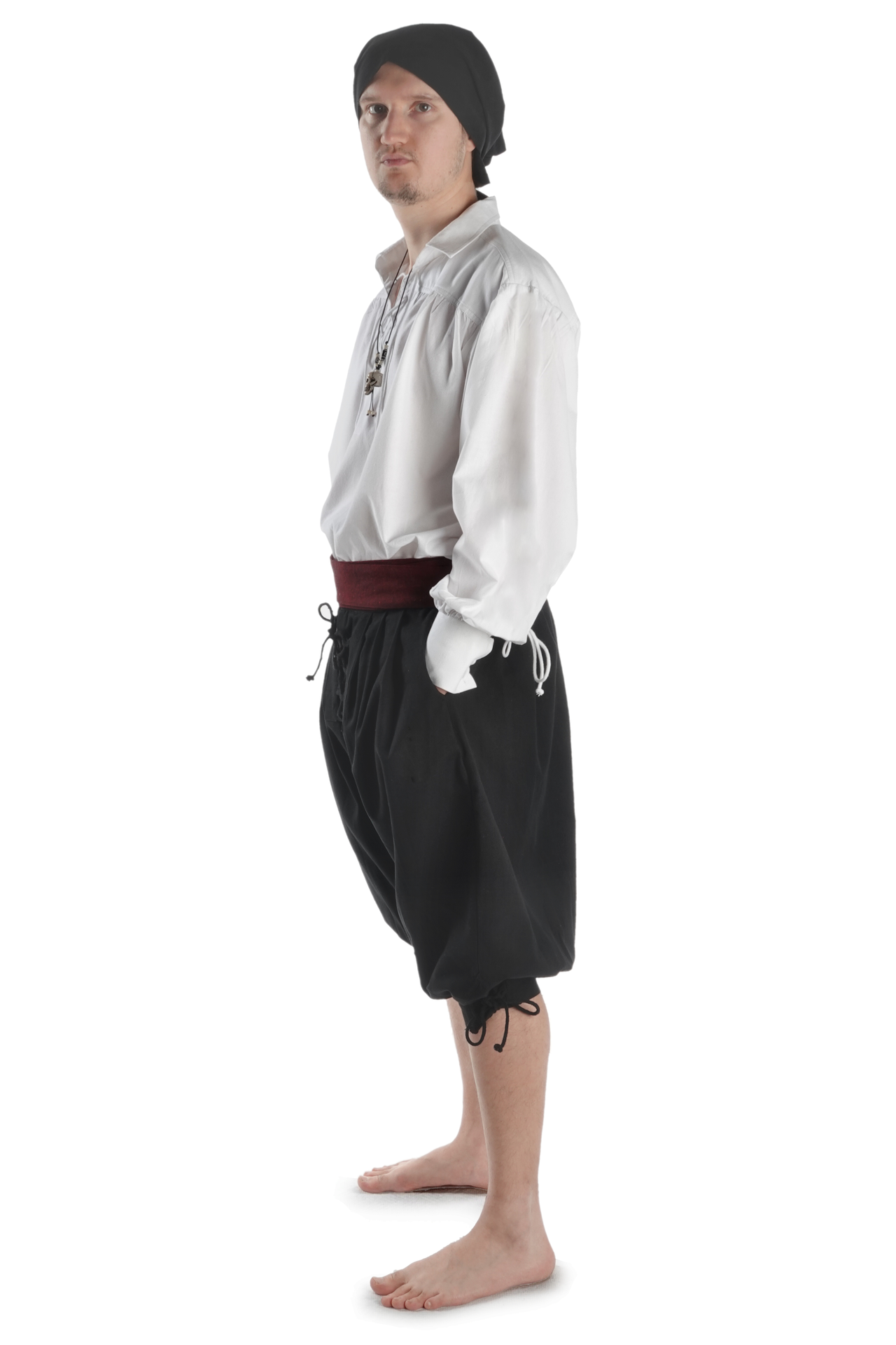 Mit diesem historischen Beinkleid sind Sie zu diversen Anlässen wie Mittelaltermärkten und -festivitäten, LARP-Events, Rollenspielen, Reenactment aber auch auf Konzerten, im Bereich Theater und an Karneval angemessen und bequem zugleich gekleidet. „Urgan" ist die ideale Grundlage für mittelalterliche Gewandungen aller Art, da die Hose vielseitig kombinierbar ist. Zum Beispiel die Landsknechte trugen oft halblange, voluminöse Pluderhosen. Vor allem aber als Piratenkostüm, zur Darstellung mittelalterlicher Freibeuter und als Seefahrer-Gewandung eignet sich „Urgan“ hervorragend. Denn die typische Kleidung eines historischen Korsars bestand in seiner Grundform aus der hier nachempfundenen Hose und einem weiten Hemd. Sie können hierzu zahlreiche Hemdenmodelle in unserem Sortiment finden (z.B. „Hemd Klingsor“, „Hemd Lohengrin“ oder „Hemd Parzival“).