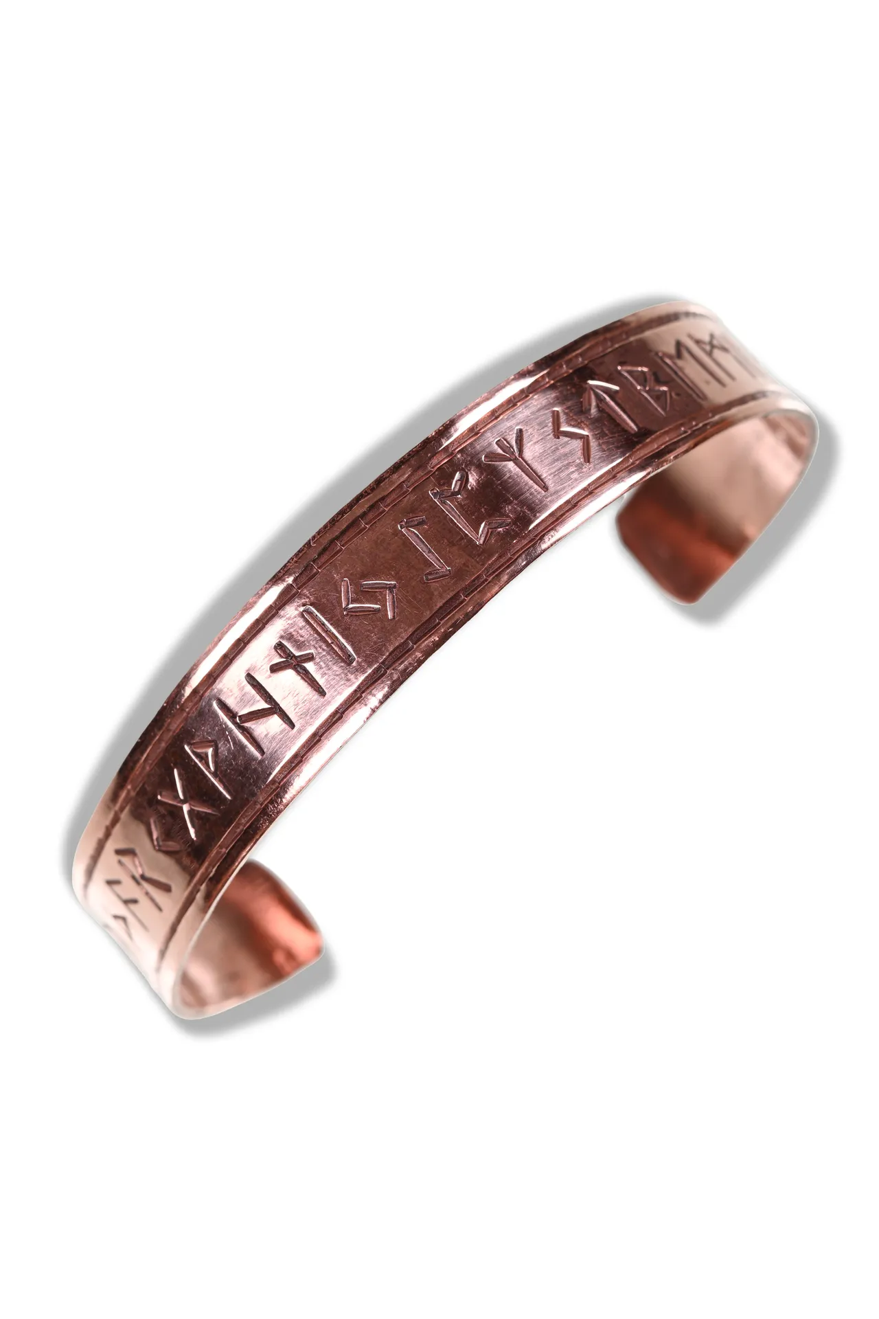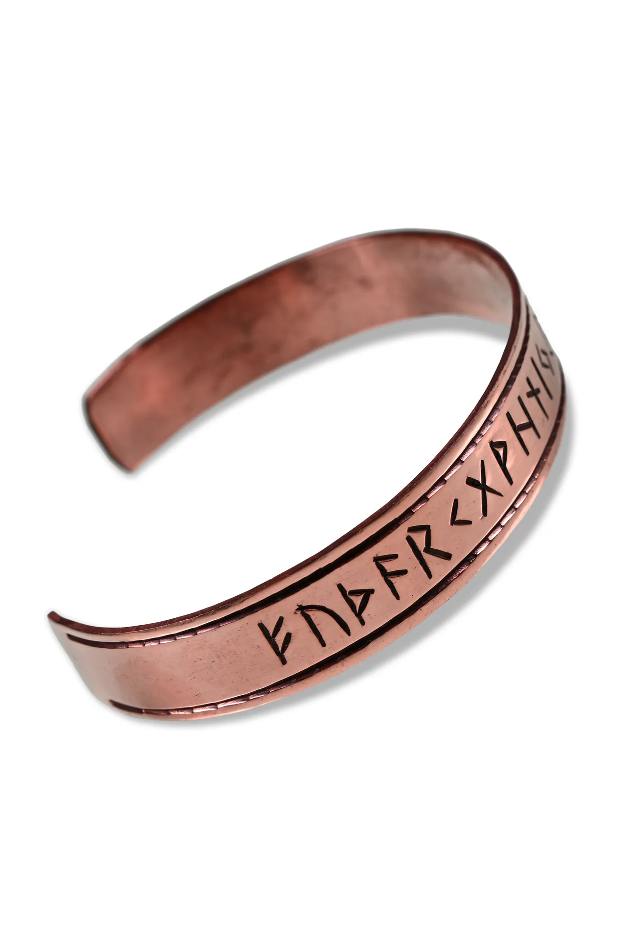 „Runar“ in Kupfer ist kernig und ehrlich. Das Runenband im älteren Futhark bleibt klar erkennbar, während das Material einen sehr authentischen Charakter mitbringt. Ideal, wenn dein Outfit nach Handwerk, Reise oder Lagerleben aussehen soll.