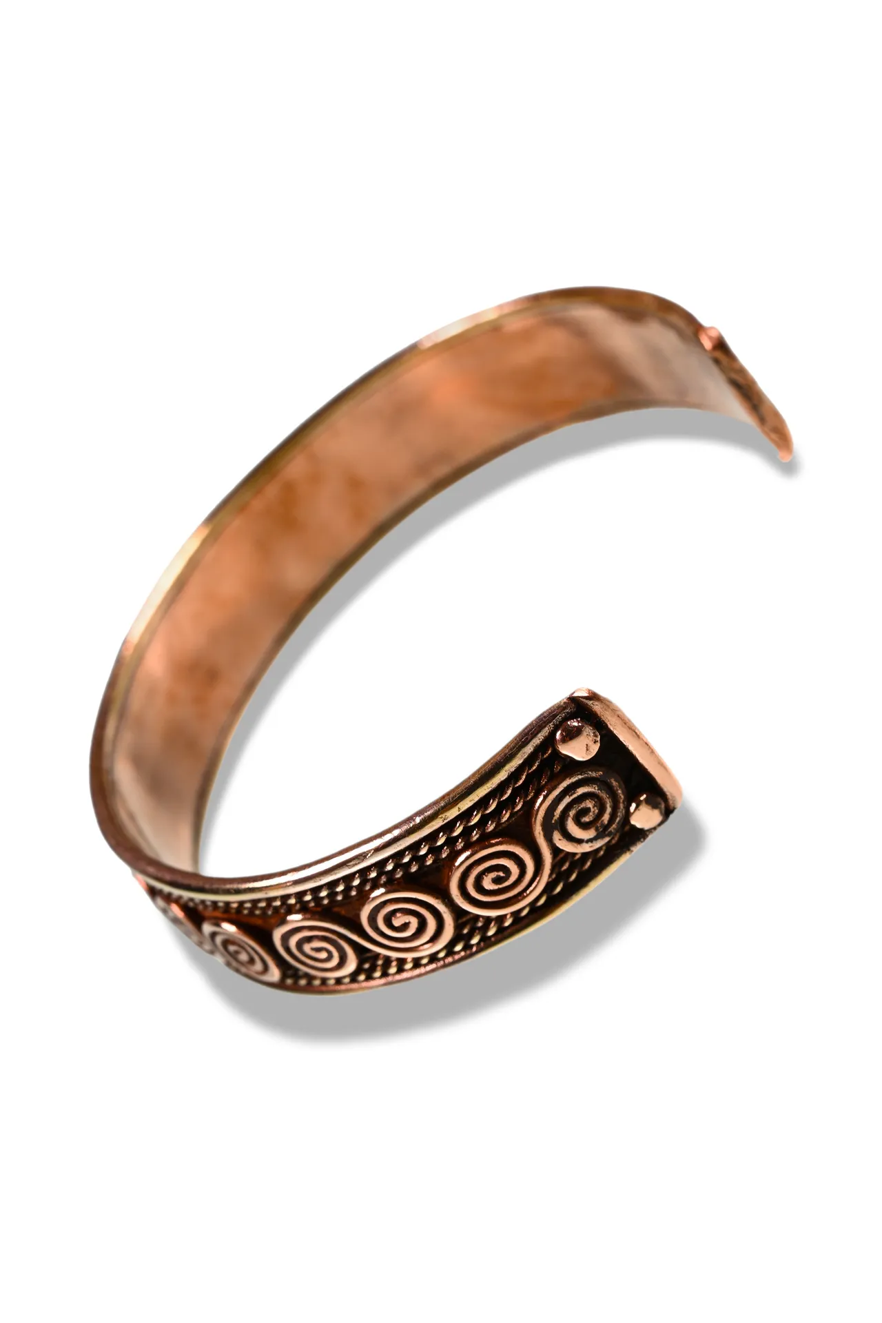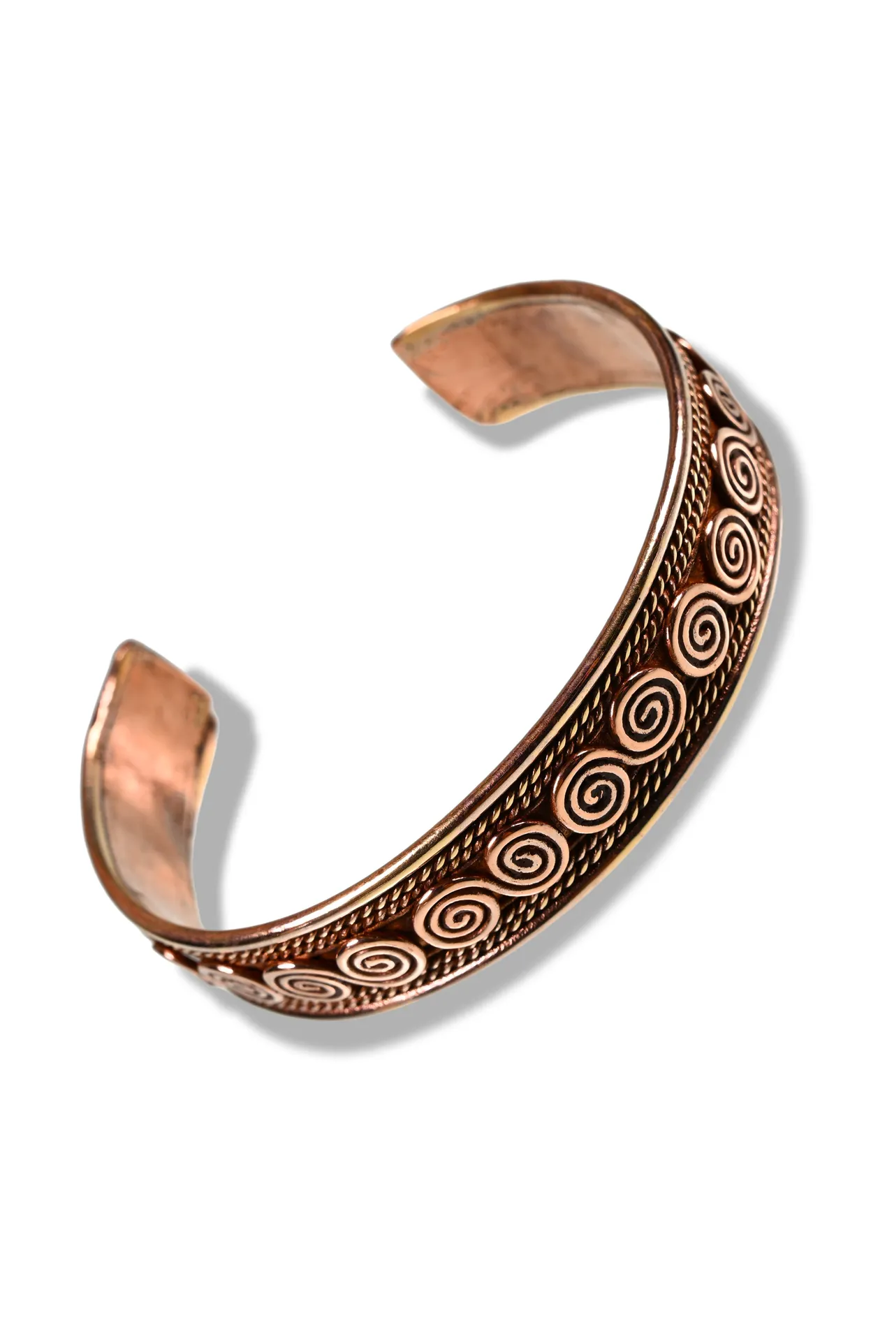 Kupfer ist robust und entwickelt mit der Zeit Charakter. Bei einem schweren Armreif wirkt das besonders authentisch: Er sieht nicht nach „neu gekauft“ aus, sondern wie ein Teil, das zum Leben deines Charakters gehört.
