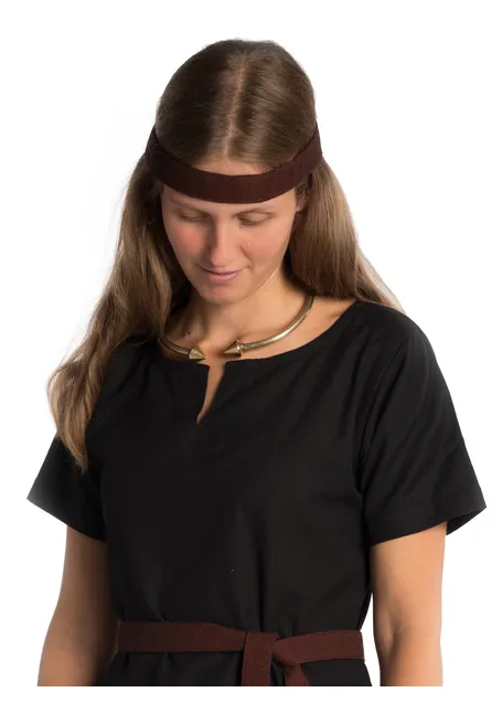 Da Kopfbedeckungen ein wichtiger Bestandteil der historischen Tracht der Wikingerzeit und des Mittelalters waren, komplettieren Sie mit diesem Band ihre Gewandung. Unser Haarband „Hilda“ ist pflegeleicht, da es maschienenwaschbar ist.
