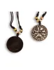 Der runde Anhänger „Vegvísir Futhark“ verbindet ein zentrales Vegvísir-Motiv mit einer umlaufenden Reihe der alten Futhark-Runen. Durch die runde Form und den klaren Kontrast zwischen dunklem Horn und hellen Verzierungen entsteht ein Schmuckstück mit starker Präsenz und symbolischer Ausstrahlung. Mit 3,5 cm Durchmesser ist der Anhänger gut sichtbar, ohne zu massiv zu wirken, und eignet sich hervorragend als markantes Detail für Gewandung und Alltag.