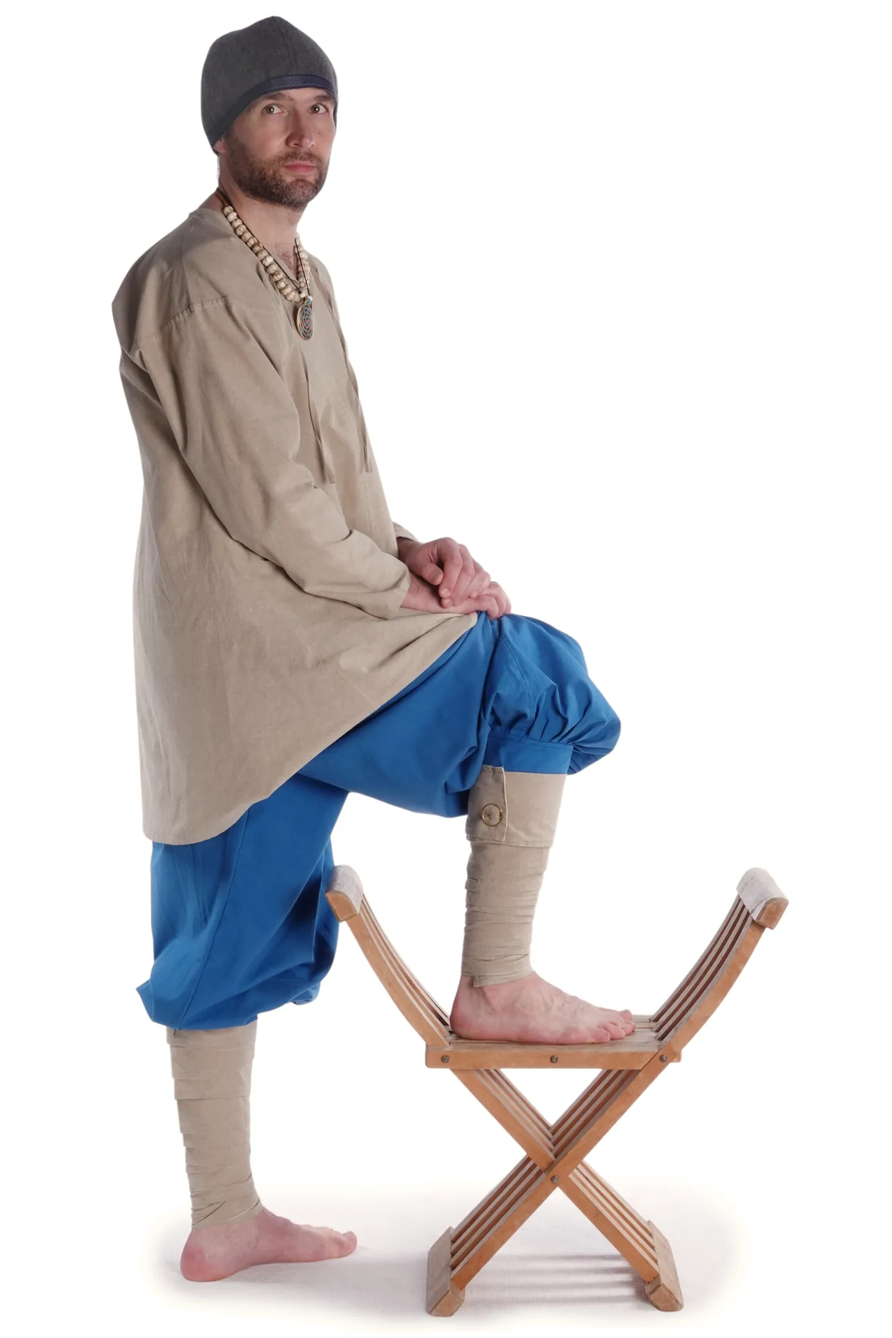 Mit diesem historischen Beinkleid sind Sie zu diversen Anlässen wie Mittelaltermärkten und -festivitäten, LARP-Events, Rollenspielen, Reenactment aber auch auf Konzerten, im Bereich Theater und an Karneval angemessen und bequem zugleich gekleidet. „Odin" ist die ideale Grundlage für mittelalterliche Gewandungen aller Art, da die Hose vielseitig kombinierbar ist. Die typische Kleidung des historischen Wikingers bestand in seiner Grundform aus der hier nachempfundenen Hose und einer Tunika, welche Sie auch in unserem Sortiment finden können.