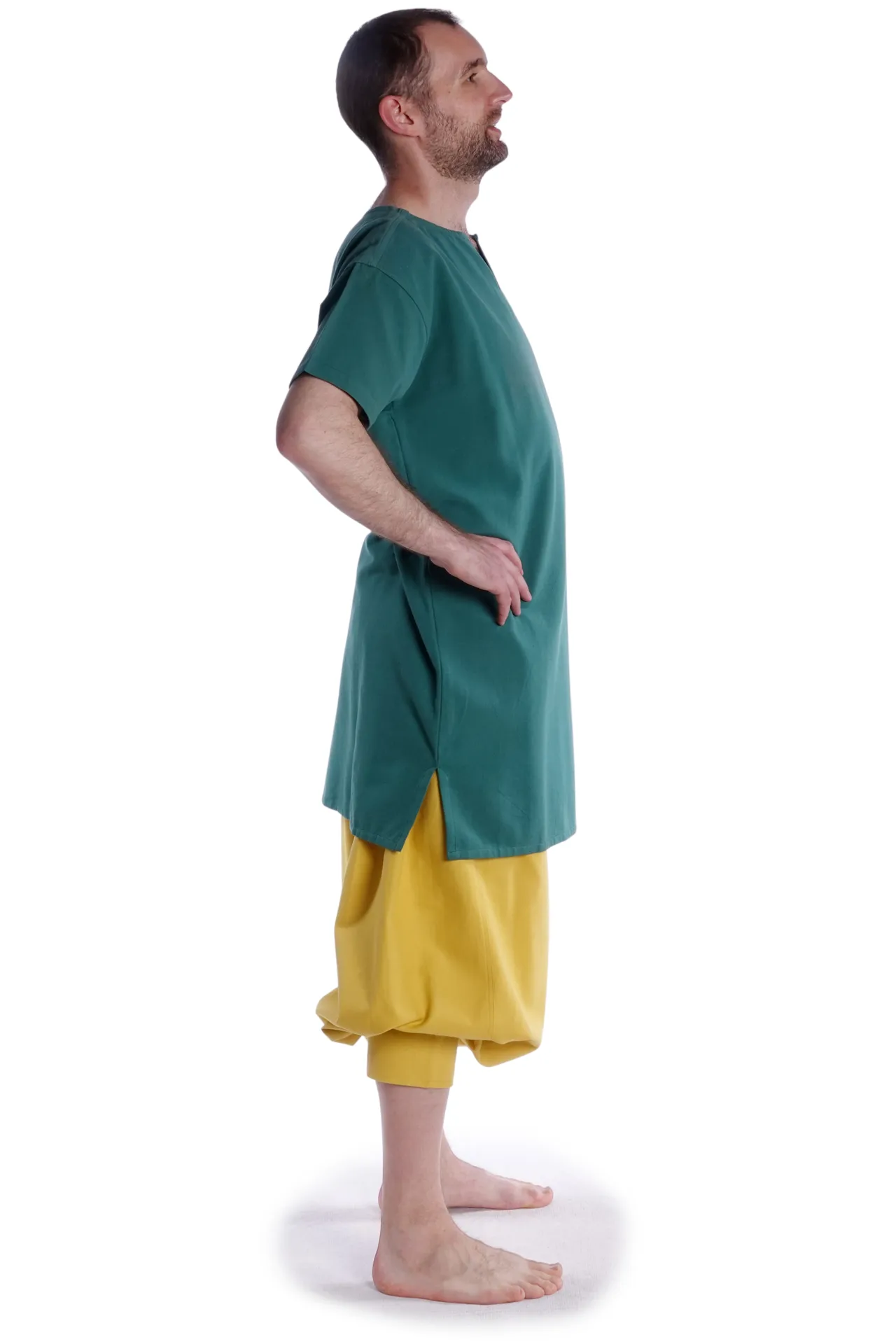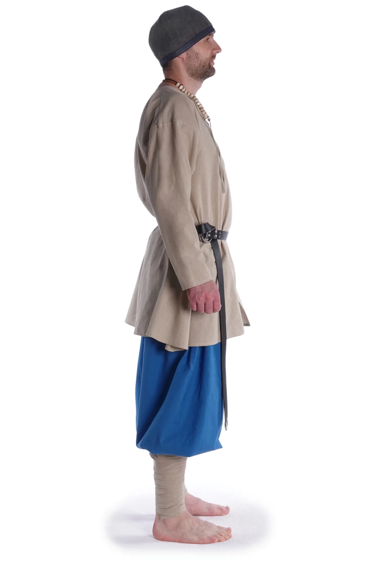 Unsere Hose „Odin“ ist maßgeblich für die Kleidung der Wikinger, den nordischen und baltischen Volksstämme des Nord- und Ostseeraums im frühen Mittelalter (zwischen 800-1050). Die historisch authentische Wikingerhose verfügt über die für die Wikingerzeit typische engen Bund oberhalb der Knöchel, die Beine sind in ein weitem, verfüllenden und wärmenend Stoff gekleidet.Die Hose Modell "Odin" ist pludernd und weit geschnitten, was ebenfalls kennzeichnend für die Wikinger-Hosenmode ist. An der Taille befinden sich Gummizug und Schnürung. Darüber hinaus ermöglicht der großzügige Schritt völlige Bewegungsfreiheit. Durch den weiten Schnitt, den Gummizug ist die Hose für jeden Figurentyp geeignet.