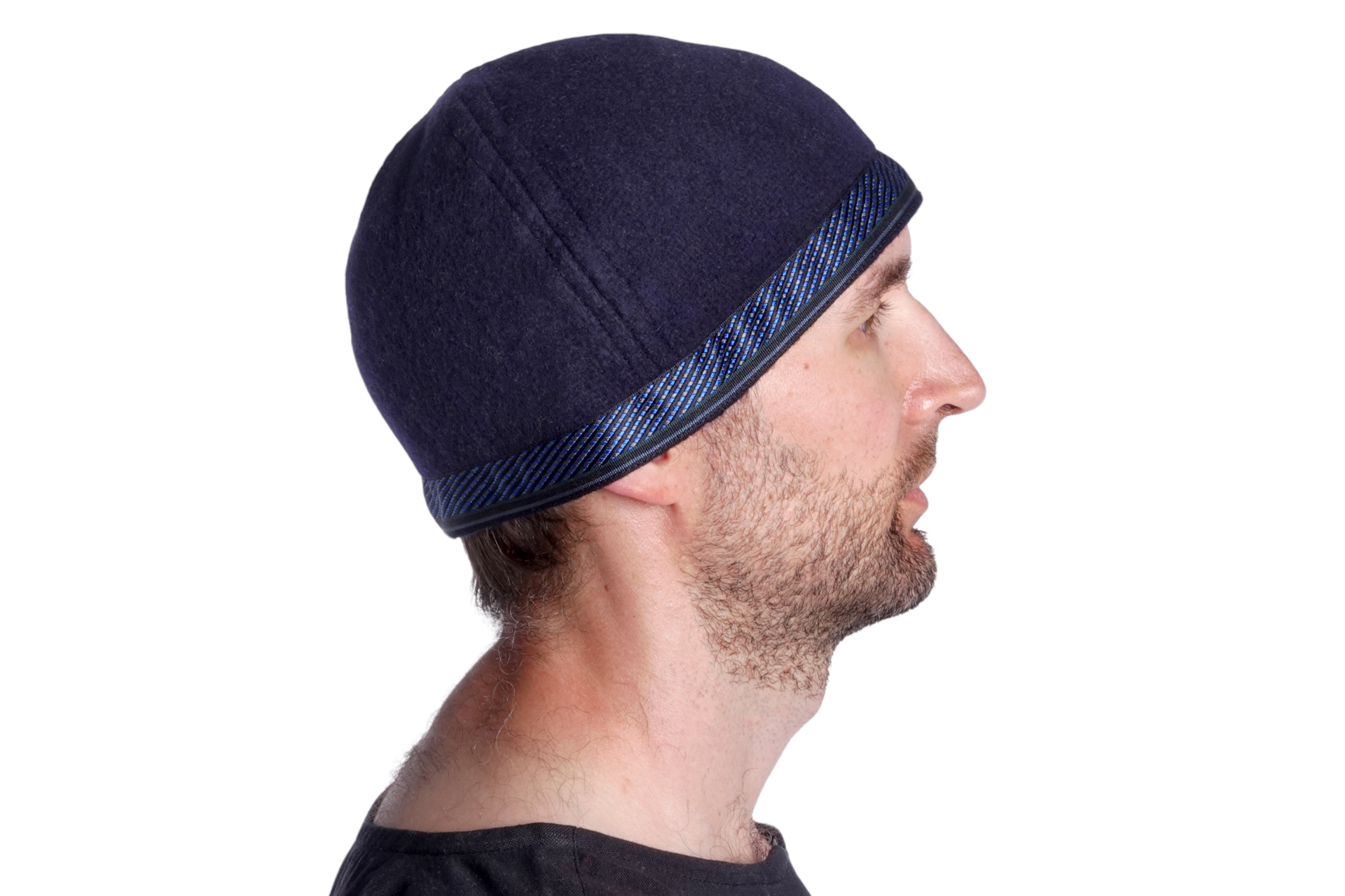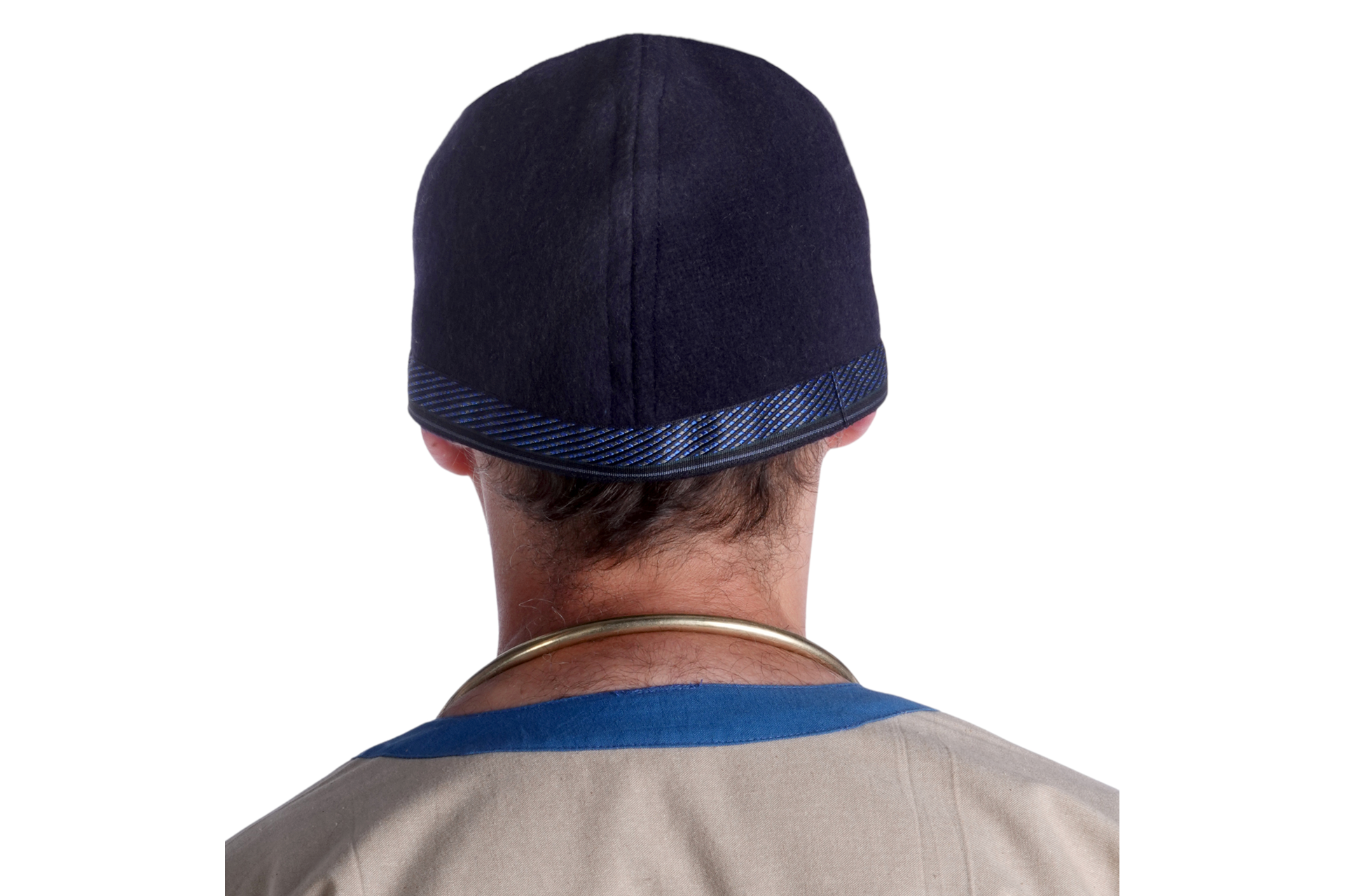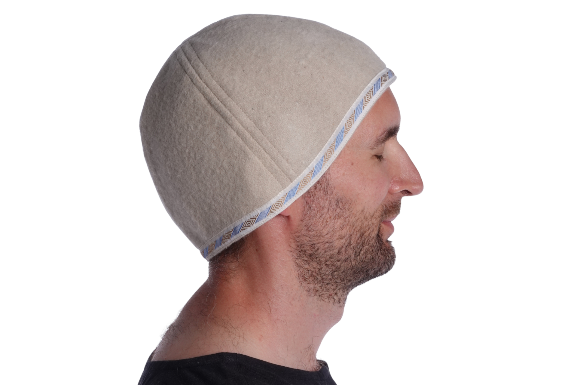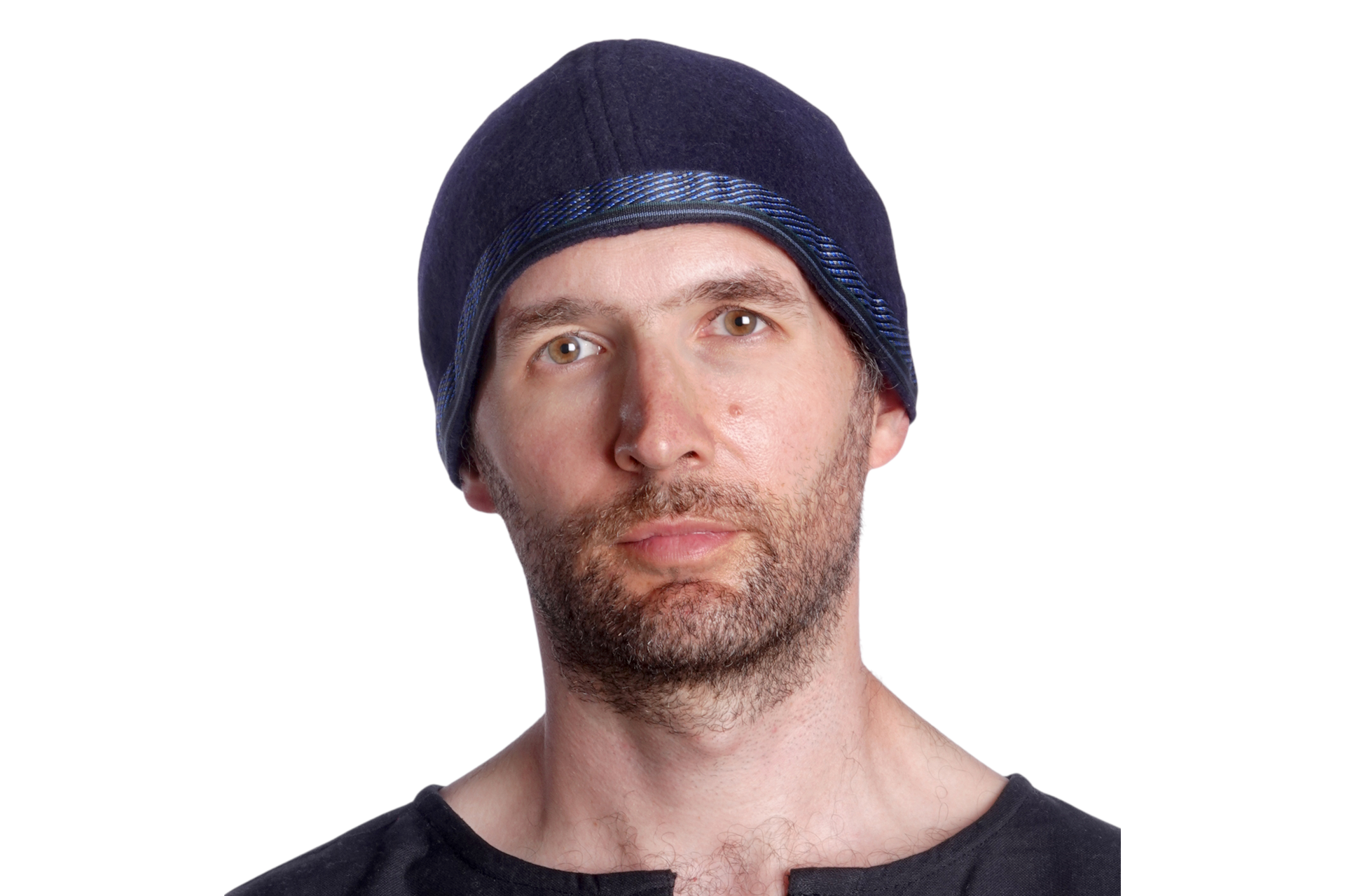 In der Fundstätte Birka lassen sich mehrere verschiedene Kopfbedeckungen der Männertracht der Wikinger nachweisen. Mützen, Hüte und Kappen waren fest verankert in der Herrenbekleidung der Wikinger. Eng anliegende Kappen wie die hier realisierte Kopfbedeckung findet man des Weiteren auf zahlreichen überlieferten Bildquellen des Wikingerkulturkreises, wie z.B. bei den Schnitzereien des Schiffsbegräbnis von Oseberg aus dem 9. Jahrhundert. Aufgrund der günstigen Konservierungsbedingungen für organische Materialien in Haithabu, war es möglich, dort auch Filz-Relikte sicherzustellen. Dies belegt, dass die Wikinger Wollfilz verwendeten, sogar gefärbter Filz wurde nachgewiesen. Es handelte sich auch um verschiedene Beschaffenheiten, was auf unterschiedliche Verwendungsweisen des Textils schließen lässt. Unter anderen entdeckten die Archäologen viele Zuschneidereste, deswegen wird angenommen, dass in Haithabu selbst Wollfilz produziert und weiterverarbeitet wurde.