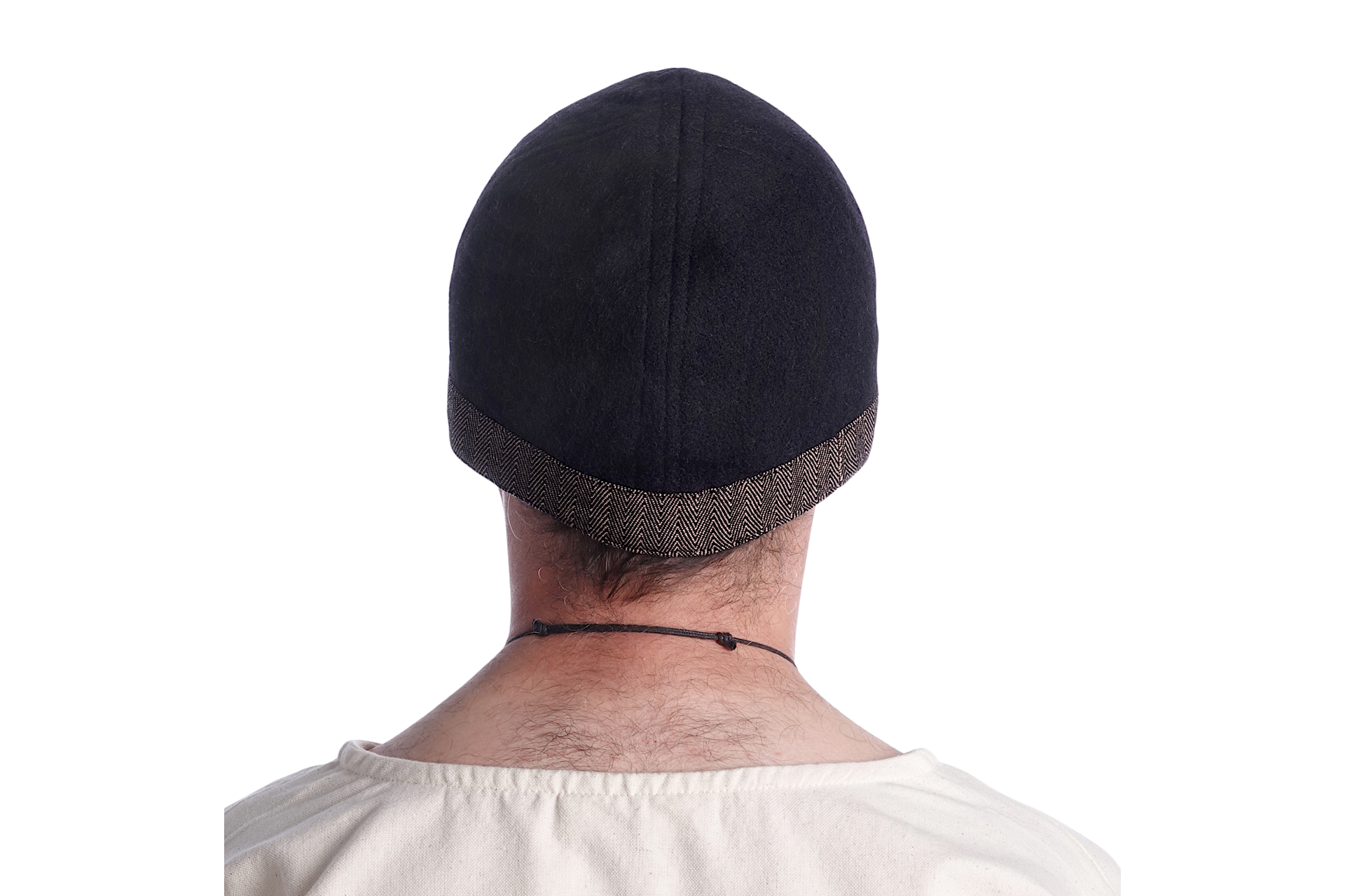 Unsere mittelalterliche Kappe „Hreidmar“ ist eine eng anliegende und schlichte Rundkappe. Sie wurde aus vier Elementen geschneidert, um die perfekte runde Passform am Kopf zu gewährleisten. Durch den wärmenden Wollfilz und den Schnitt der Kappe ergibt sich ein hoher Tragekomfort.