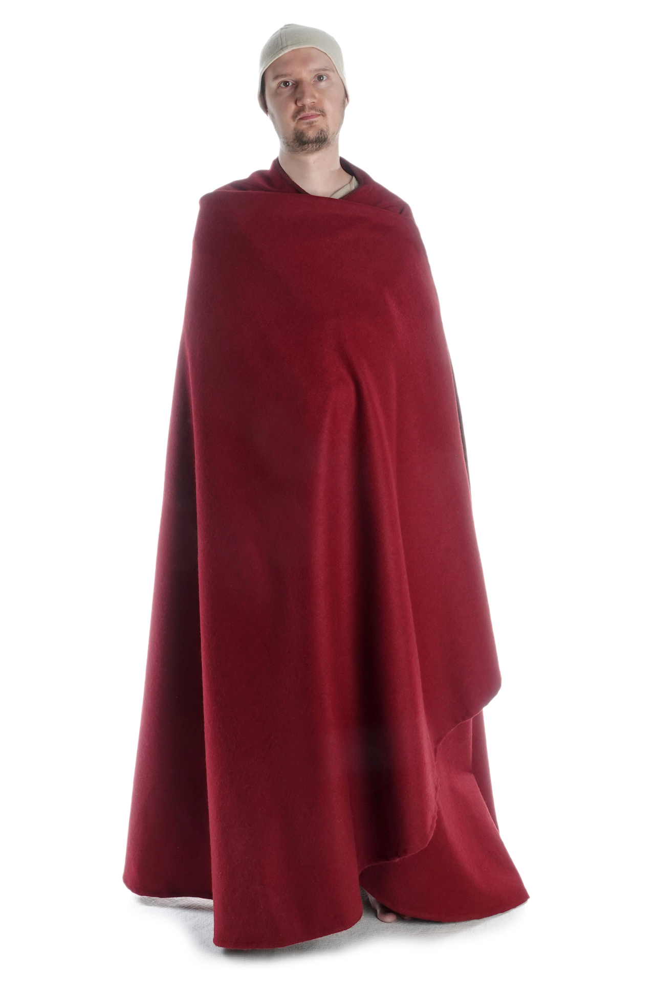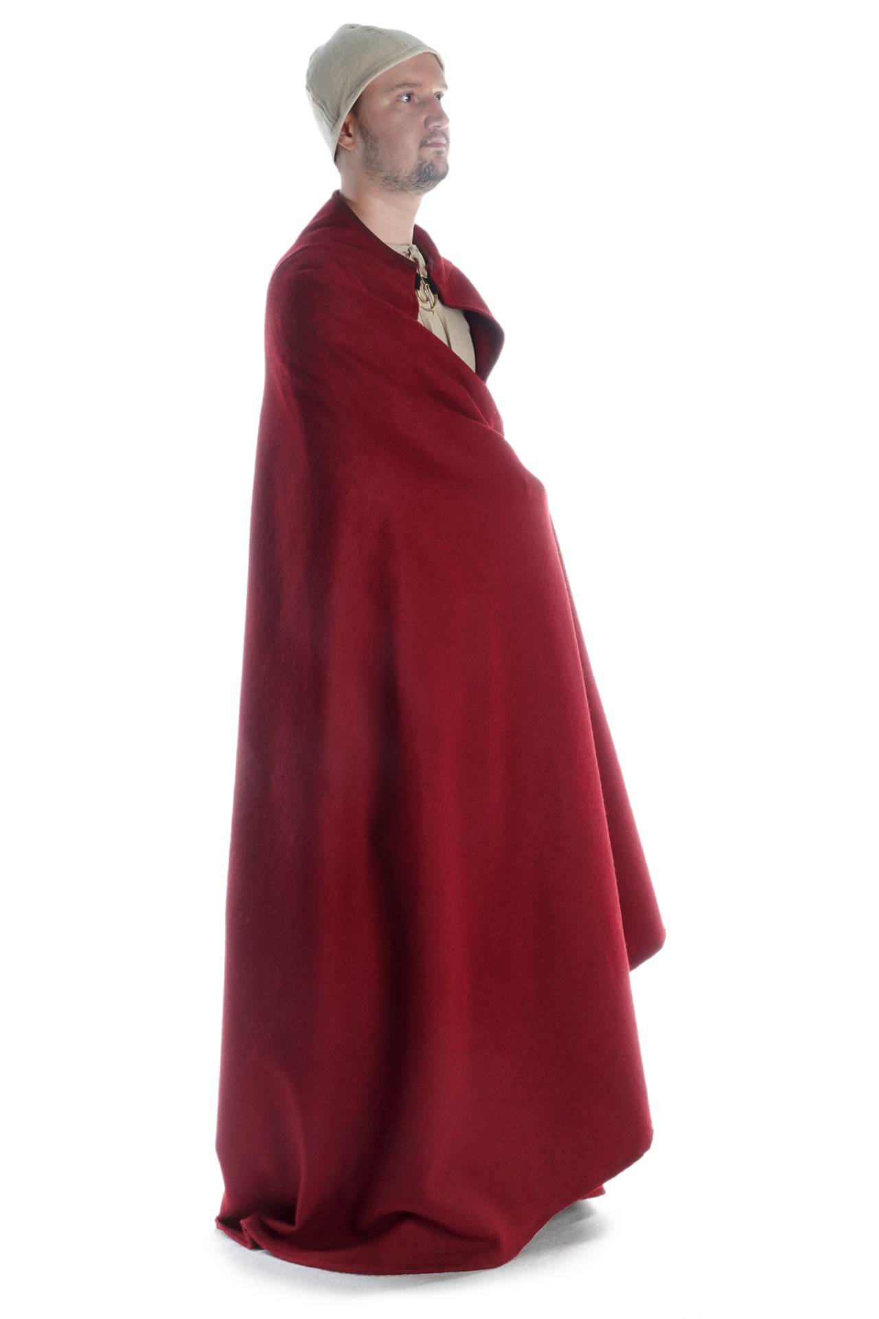 Kennzeichnend für unser Modell "Larus" ist das kreisförmige, bodenlange Design. Der Mantel verfügt über einen Spiral-Verschluss aus Metall, der dem Umhang ein authentisches Aussehen verleiht. Die Farben Rot, Beige, Braun oder Schwarz bieten vielfältige Kombinationsmöglichkeiten mit anderen historischen Kleidungsstücken. Der Umhang ist locker geschnitten, um möglichst große Bewegungsfreiheit zu ermöglichen und bietet hohen Tragekomfort. Diese Umhang bieten wir in Einheitsgröße an, die für eine Vielzahl von Körpergrößen und -formen geeignet ist.