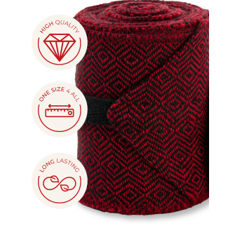 - zwei Stoffstreifen, die um die Unterschenkel gewickelt werden